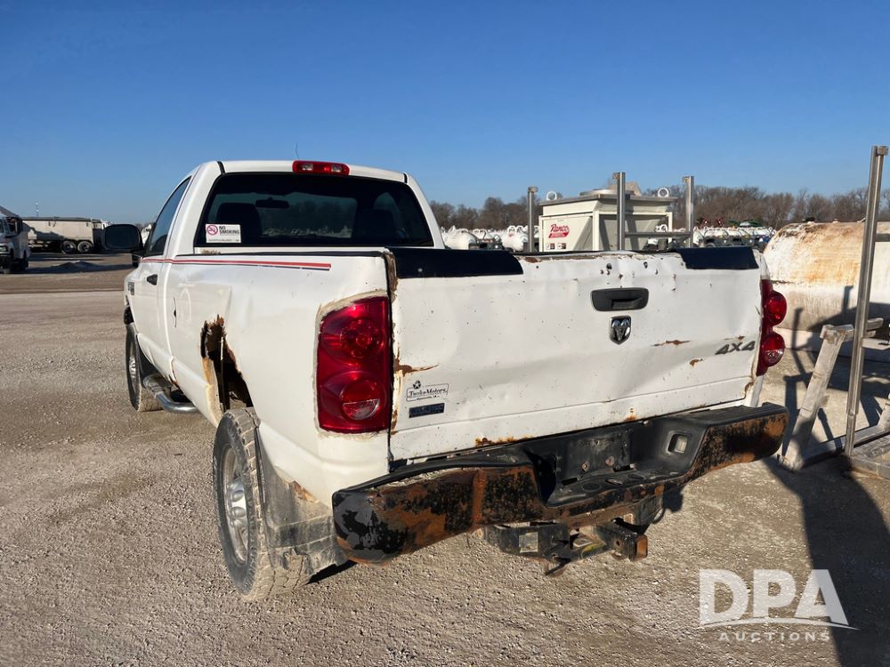 2008 Dodge Ram 2500 Heavy Duty Pickup (JN3998, Unit 82), 4x4, Cummins 6.7L Turbo diesel engine, automatic transmission, air conditioning, heat, Am/Fm CD radio, cruise control, power windows & locks, running boards, rear hitch, LT265/70R17 tires.