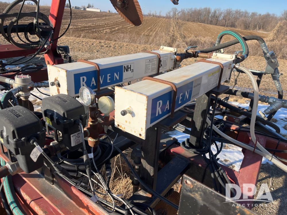 Dalton Ag NH3 Tool Bar (JN4005, Unit N222), Dalton 17 knife pull type tool bar, Yetter coulters, Double Raven Super Coolers, hydraulic wings, walking tandems, walking tandems on wings, rear hitch, flotation tires.