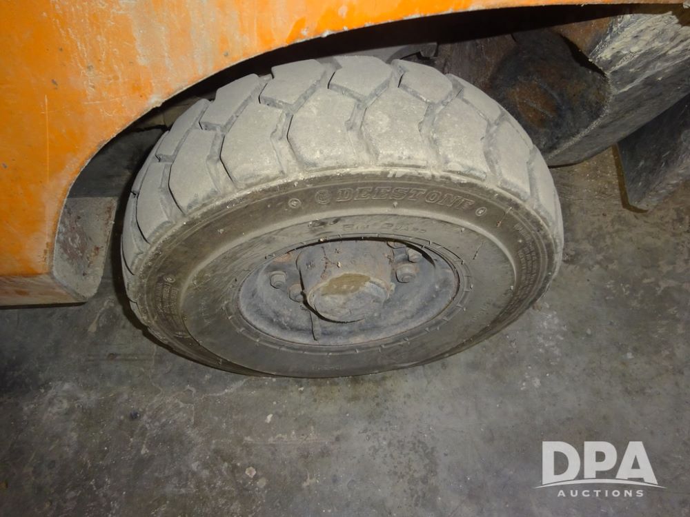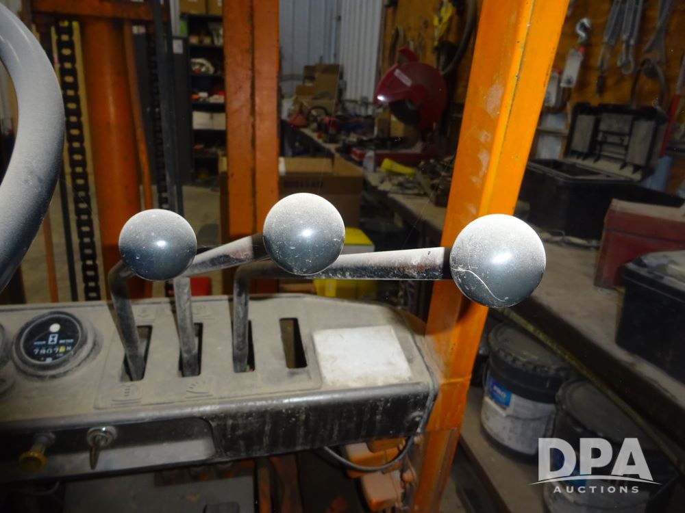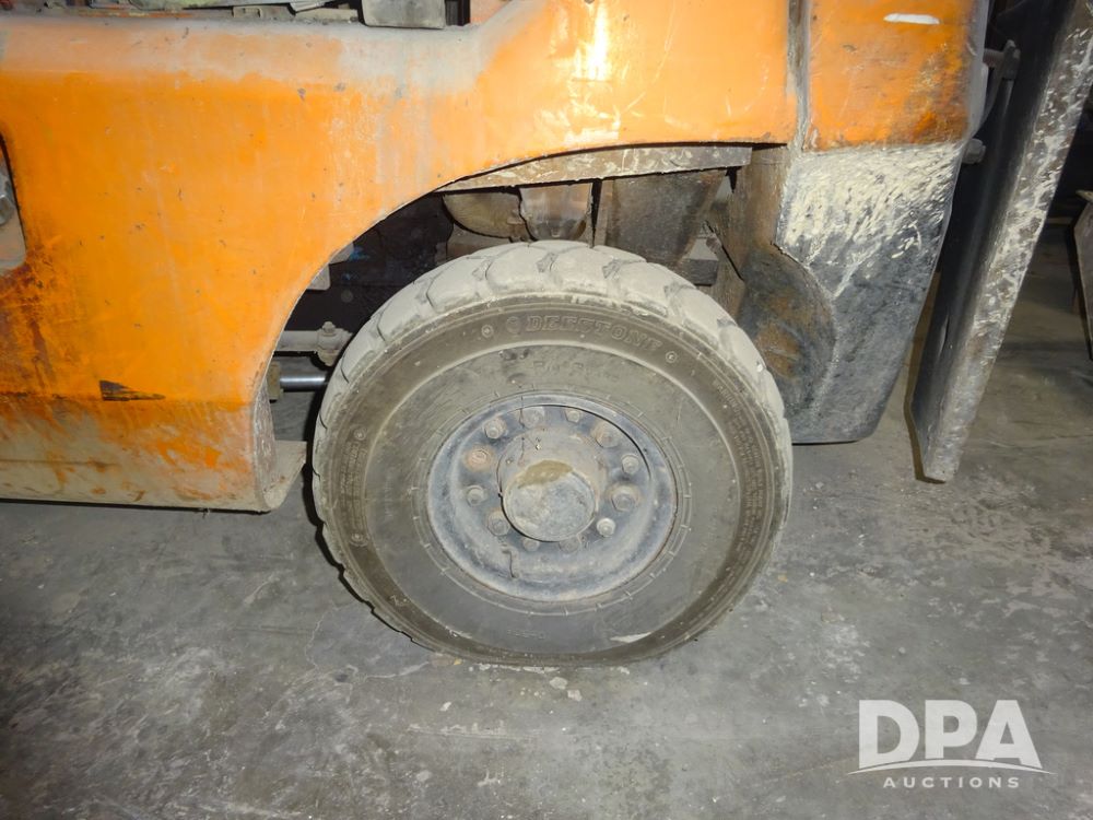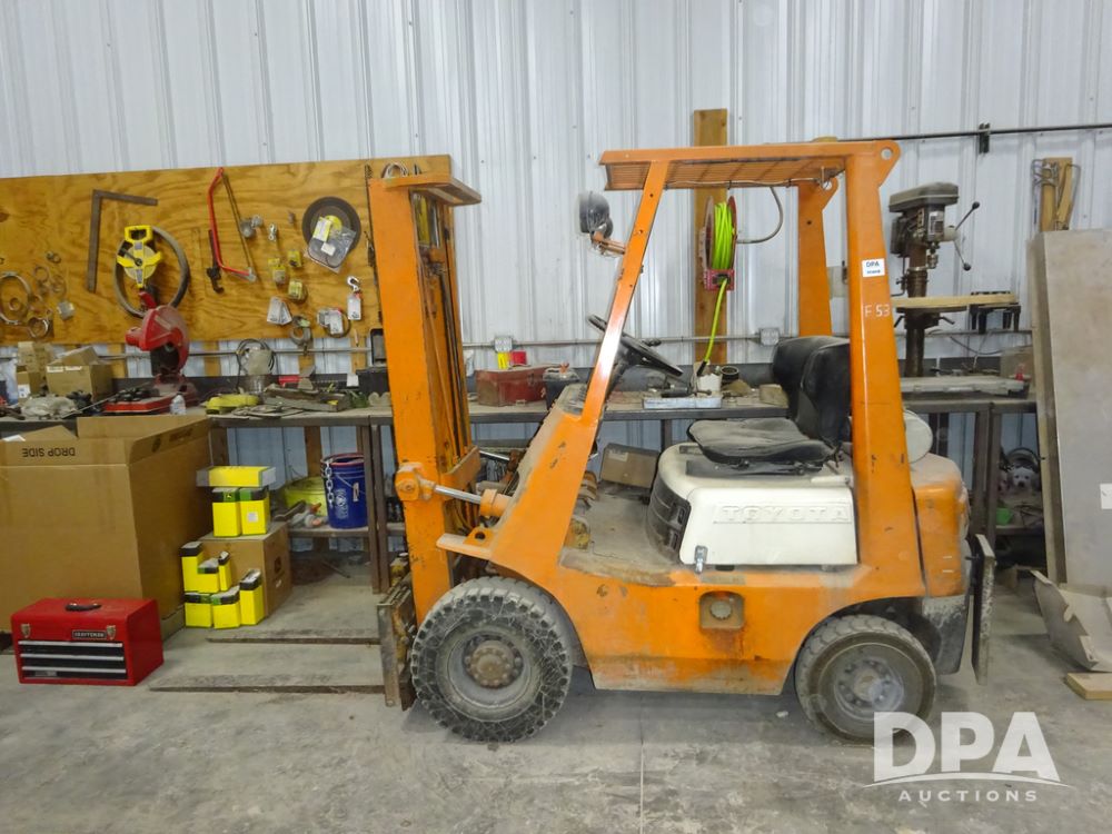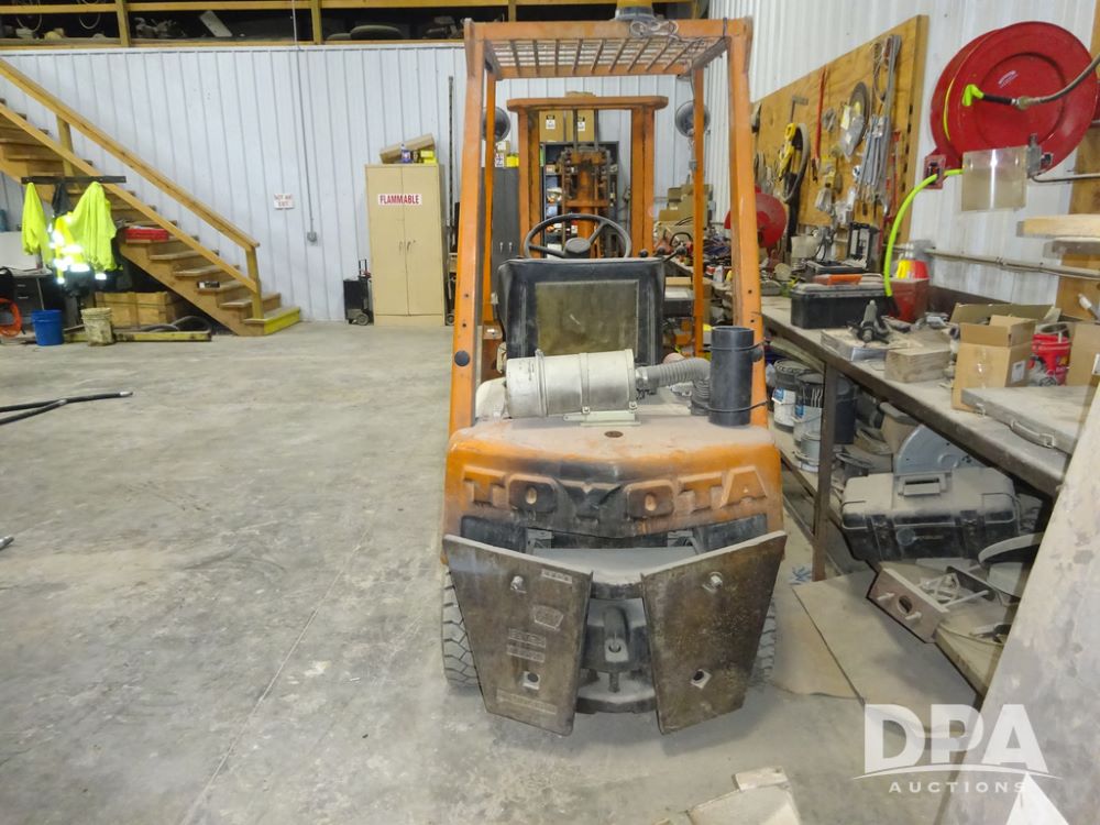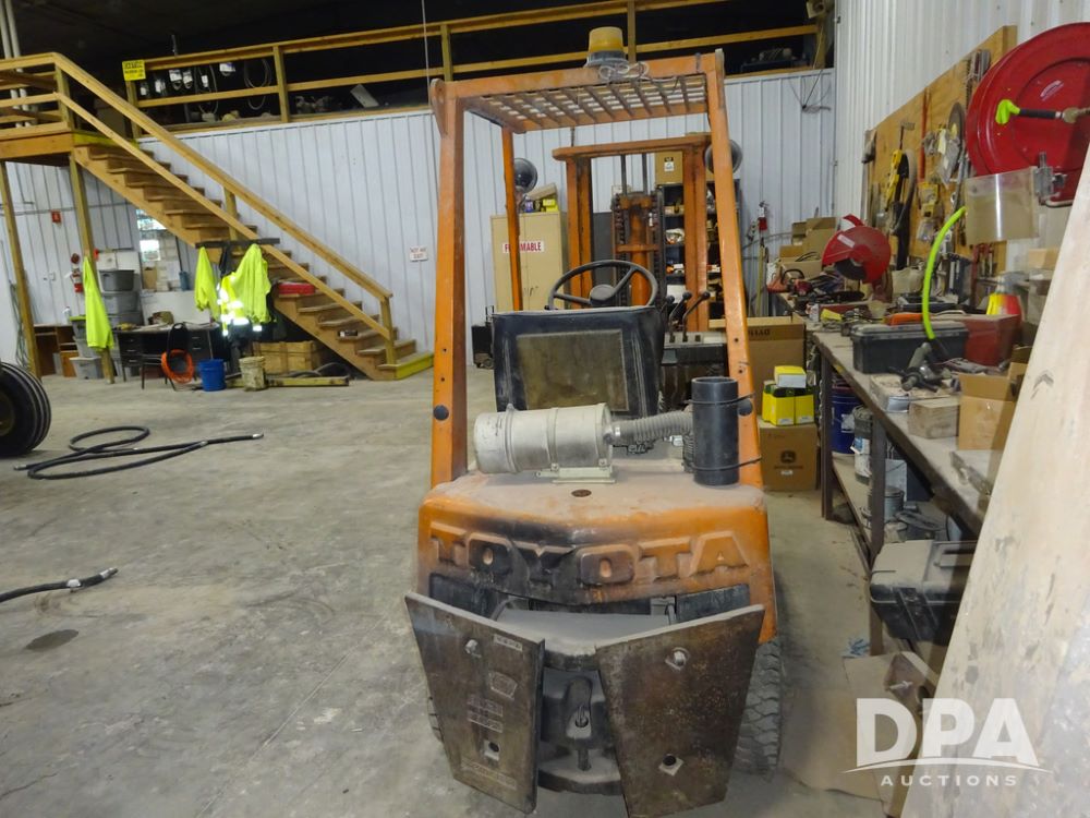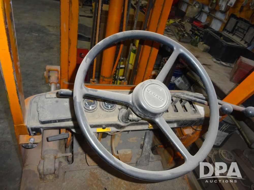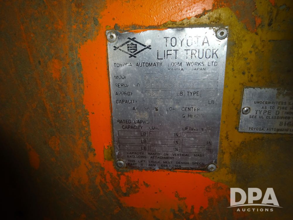 Toyota Forklift (PZ14410, Unit F53), Toyota model 02-2FD15 forklift, diesel engine, shuttle shift transmission, canopy, lights, forks, 6.50-10 front tires, shows 7,907 hours.
