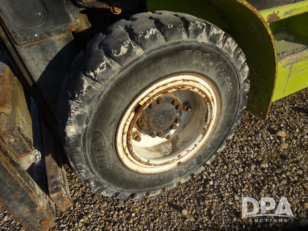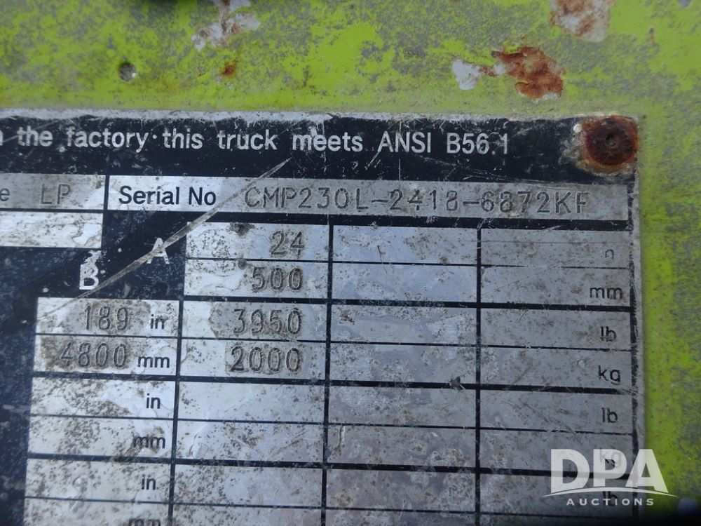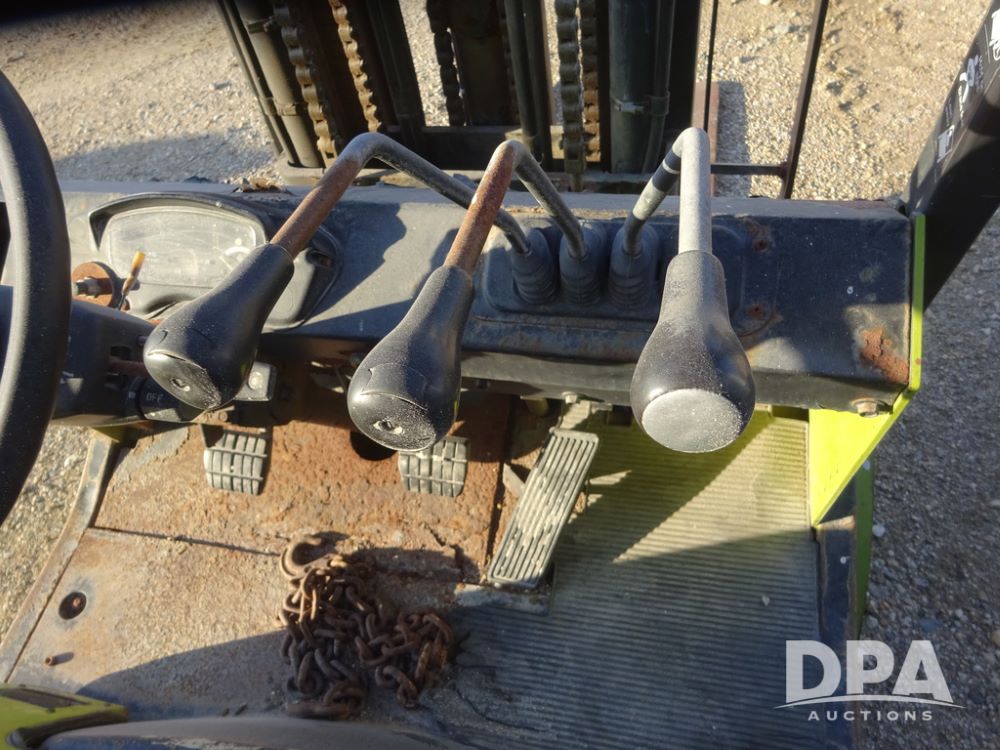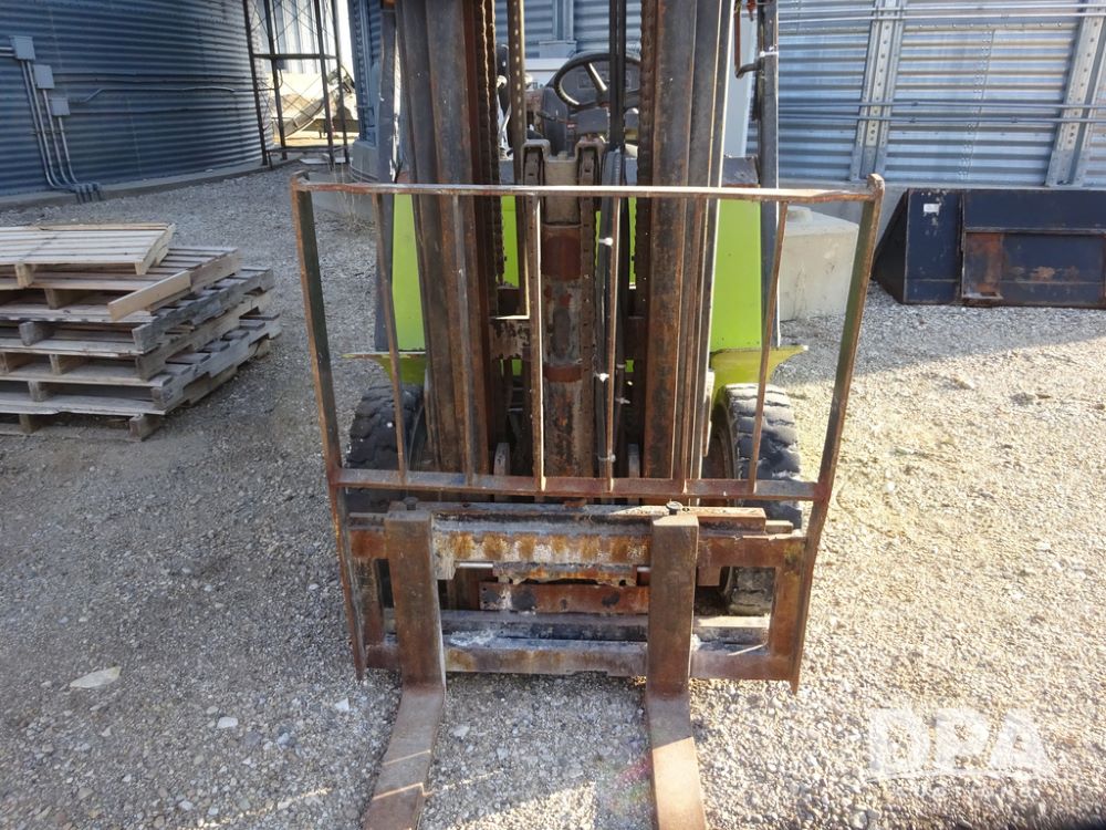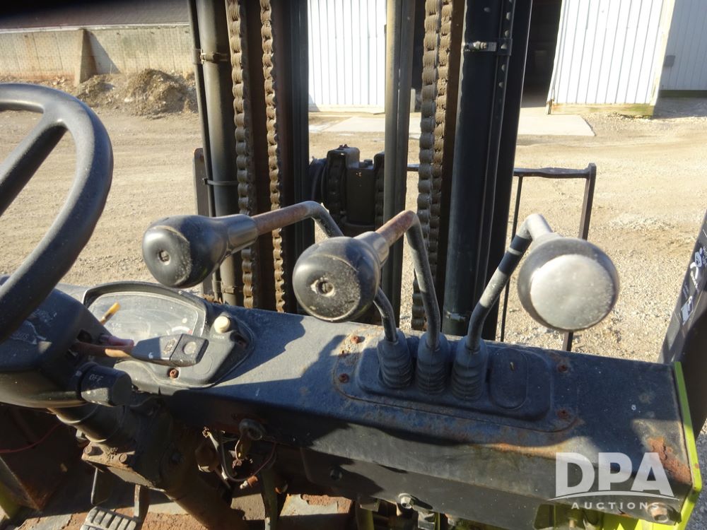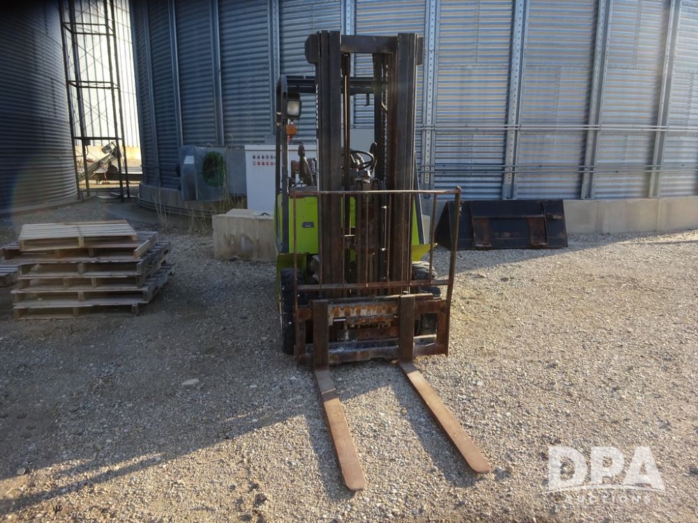 Clark Forklift (PZ14411, Unit F44), Clark model CMP 25L forklift, LP gas engine, shuttle shift transmission, canopy, lights, forks, side shift, 7.00-12 front tires, 650-10 rear tires, shows 5,603 hours.