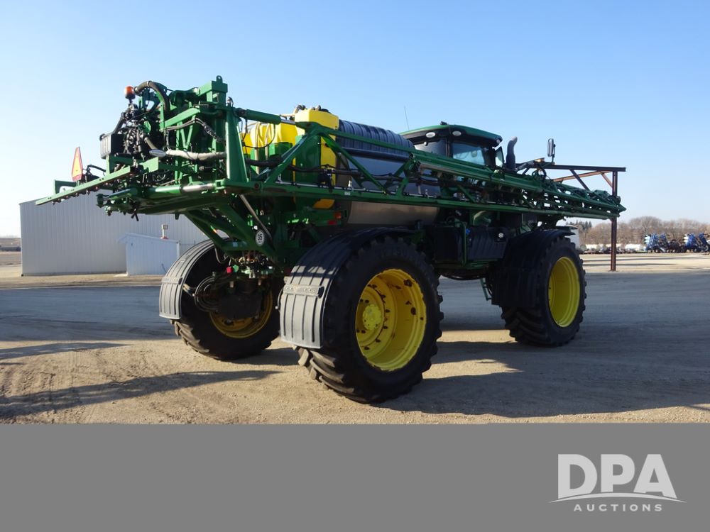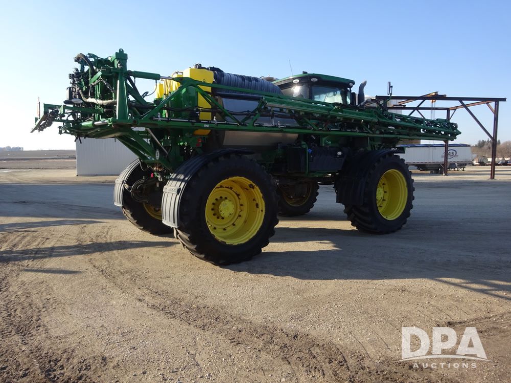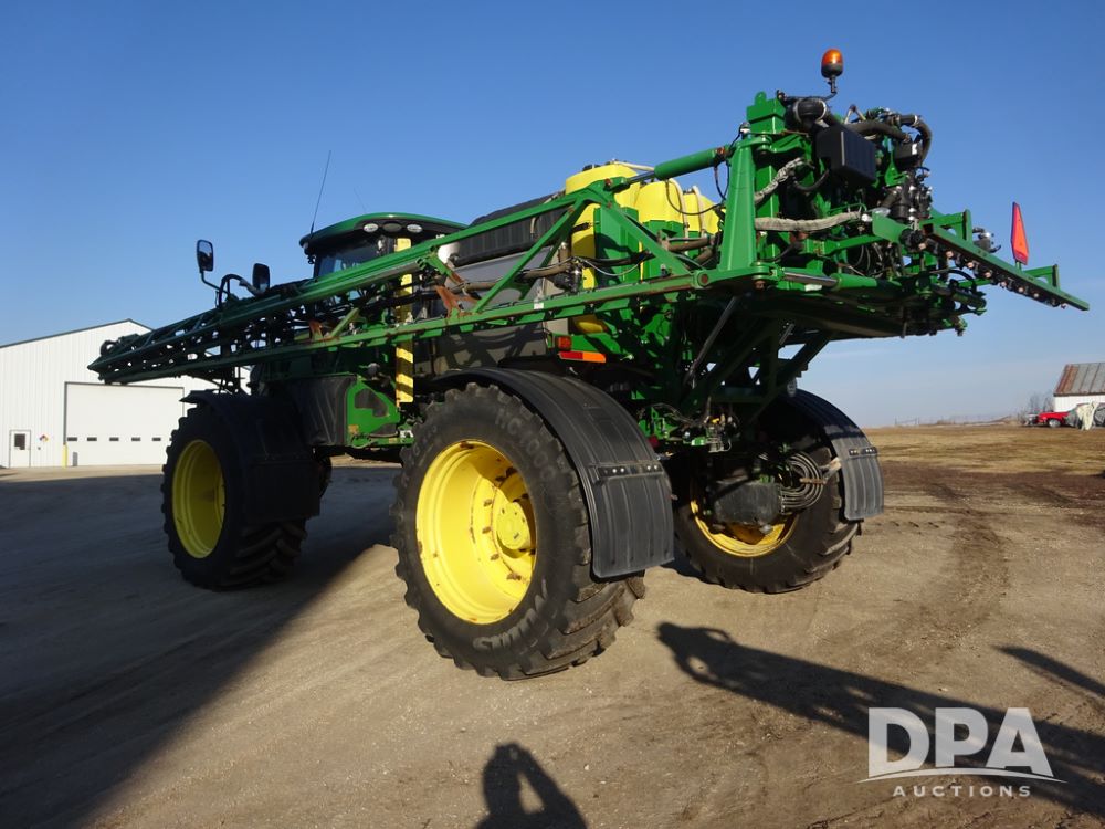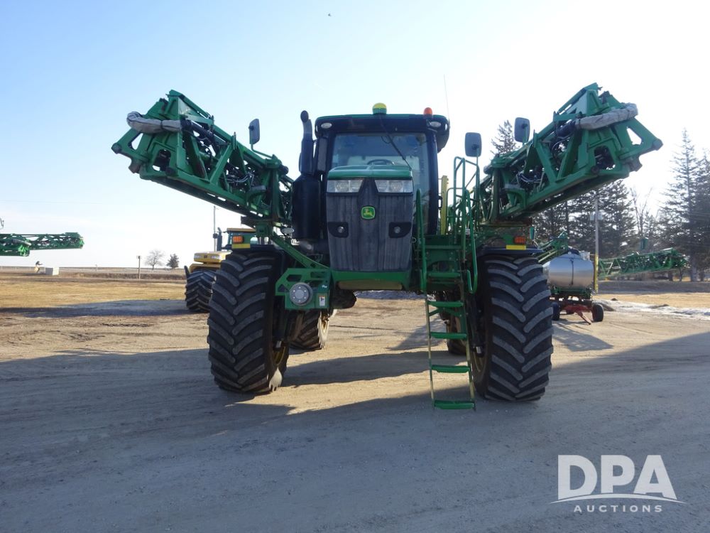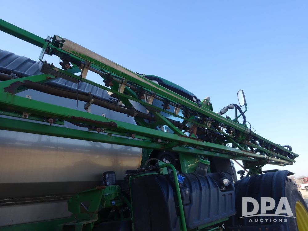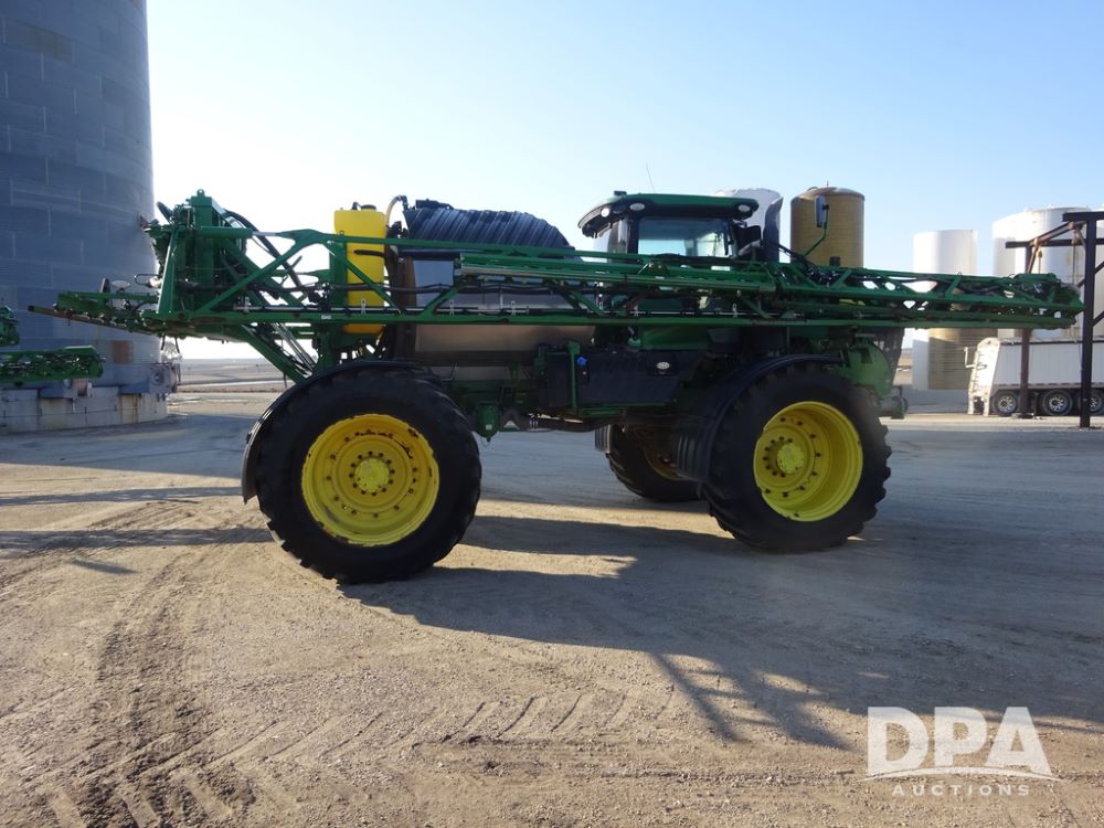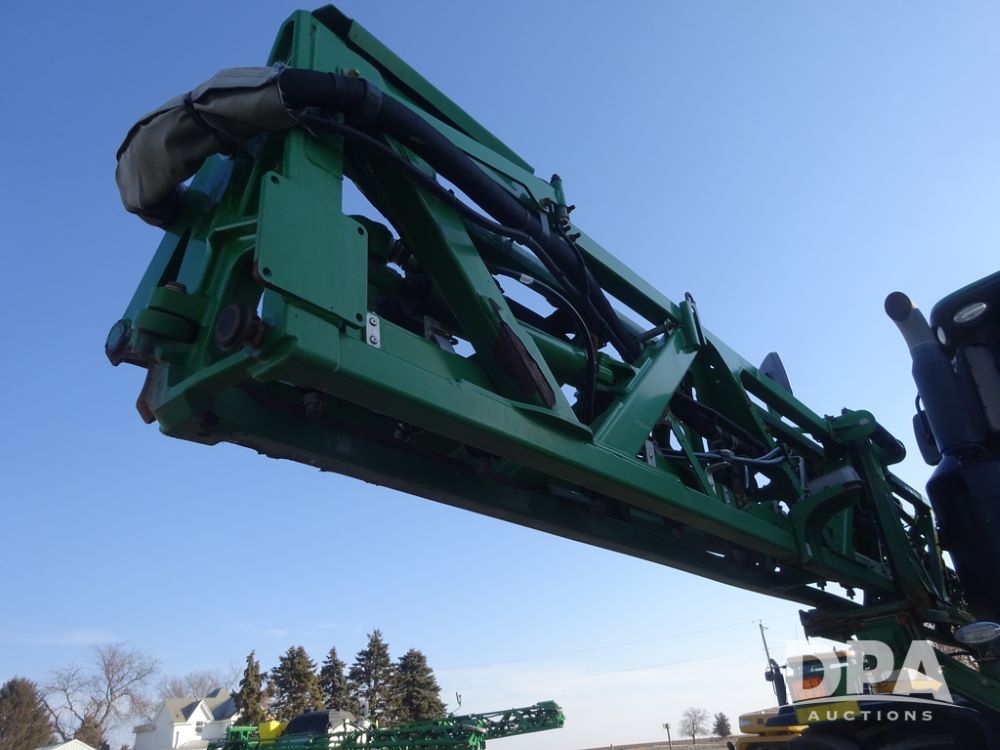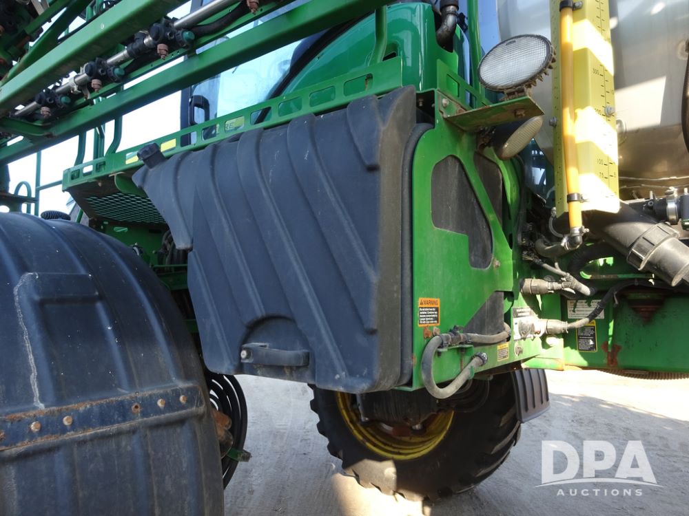 2019 John Deere R4045 Sprayer (PZ14412, Unit 1049), John Deere diesel engine (S/N RG6090U068074), hydrostatic transmission, air conditioning, heat, Am/Fm radio, leather seat, buddy seat, beacon light, 1200 gallon stainless steel liquid system, 120' boom, top poly rinse tank, 4 - 50 gallon poly injection tanks, 2 - Raven Sidekick Pro pumps, automatic solution control, Vogelsang front fill system, Mitas VF750/60R46 flotation tires and fenders, John Deere StarFire 6000 globe, shows 5,436 hours.