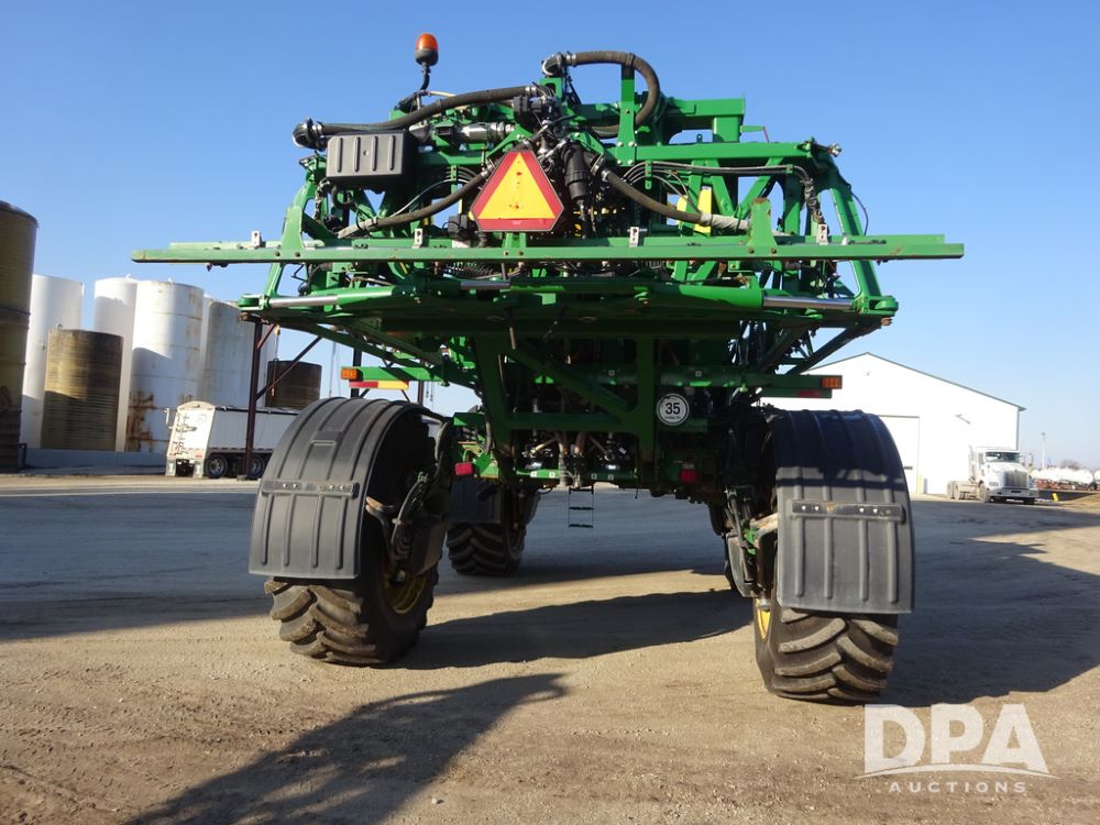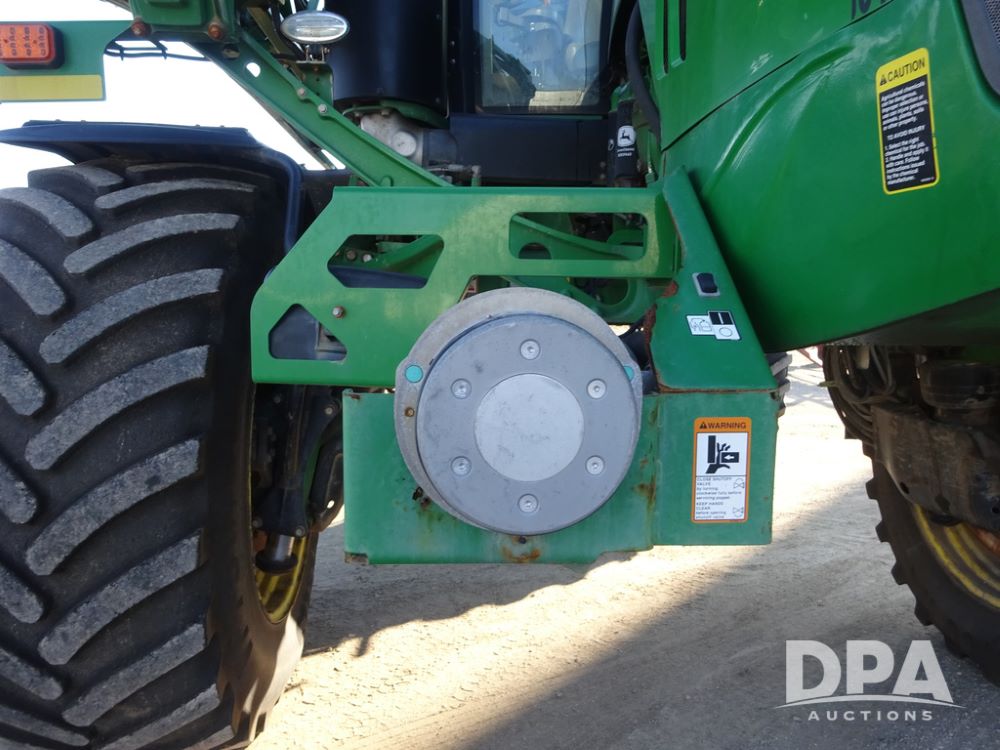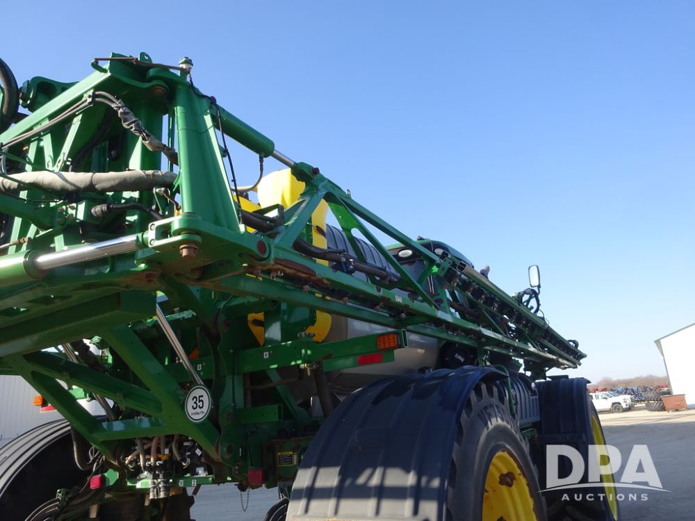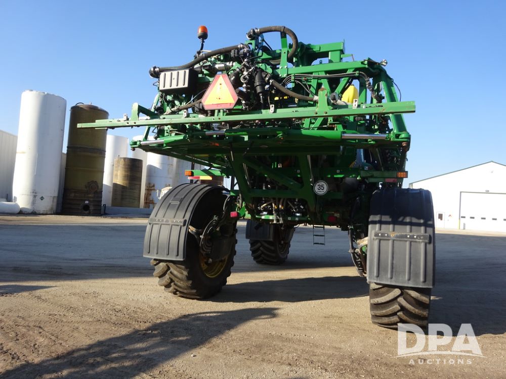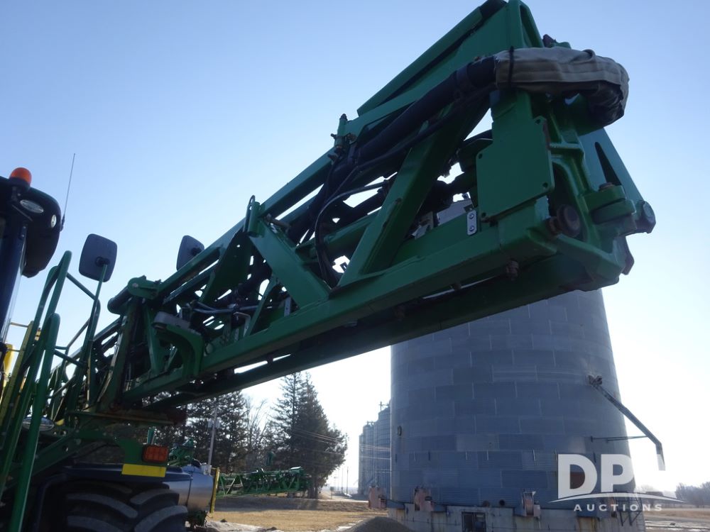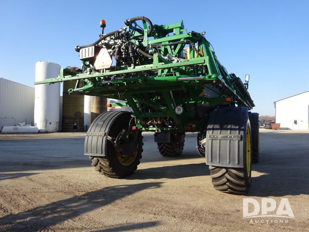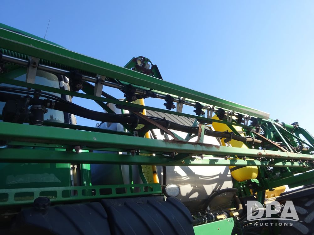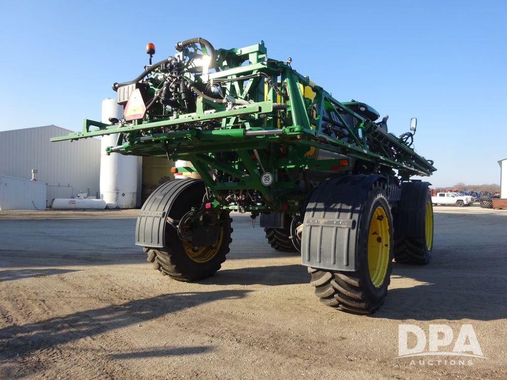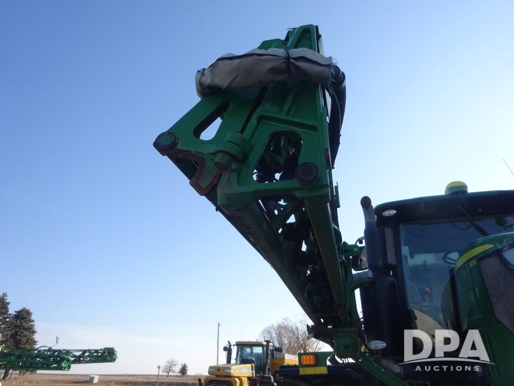 2019 John Deere R4045 Sprayer (PZ14412, Unit 1049), John Deere diesel engine (S/N RG6090U068074), hydrostatic transmission, air conditioning, heat, Am/Fm radio, leather seat, buddy seat, beacon light, 1200 gallon stainless steel liquid system, 120' boom, top poly rinse tank, 4 - 50 gallon poly injection tanks, 2 - Raven Sidekick Pro pumps, automatic solution control, Vogelsang front fill system, Mitas VF750/60R46 flotation tires and fenders, John Deere StarFire 6000 globe, shows 5,436 hours.