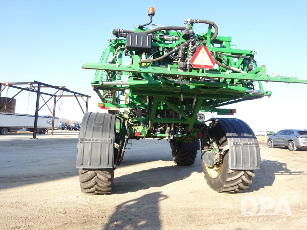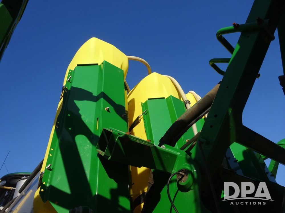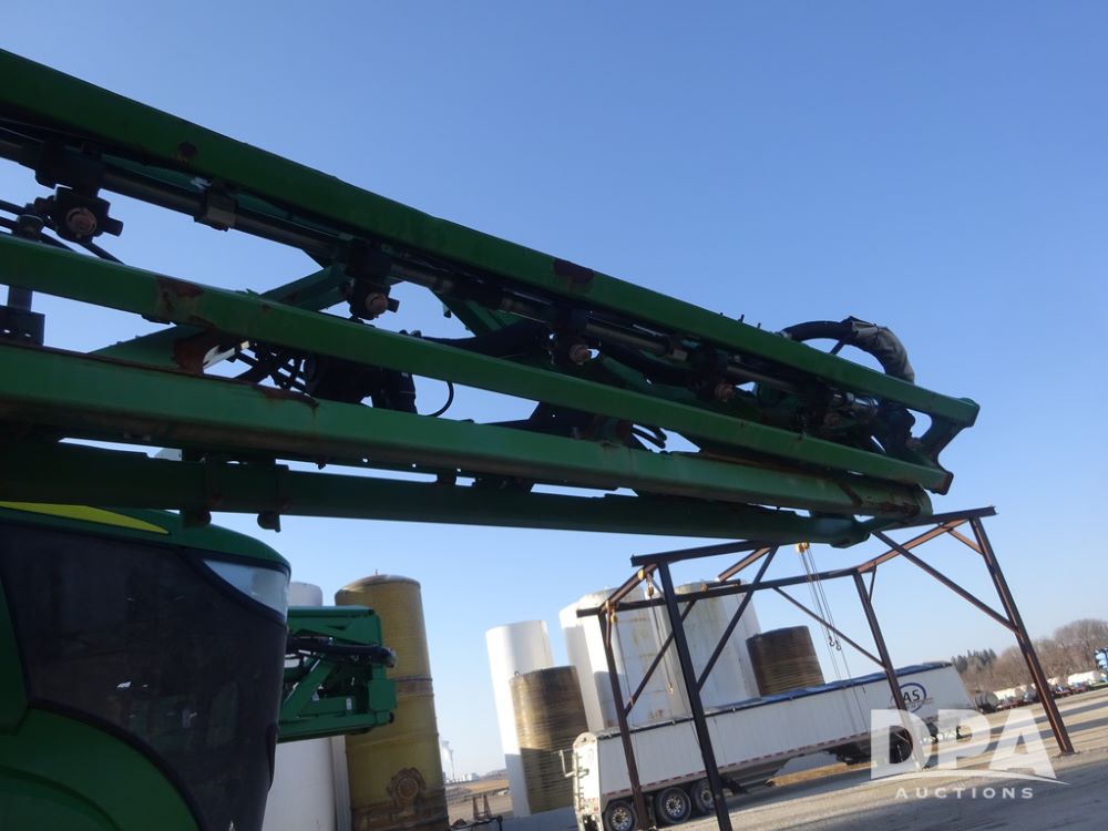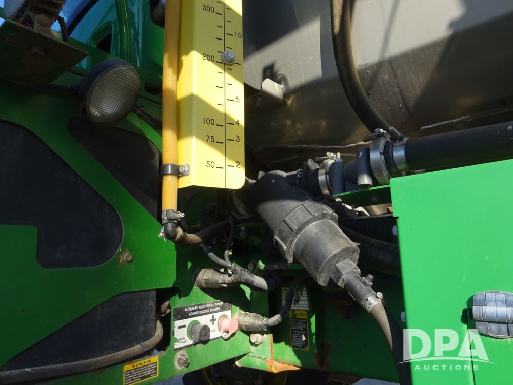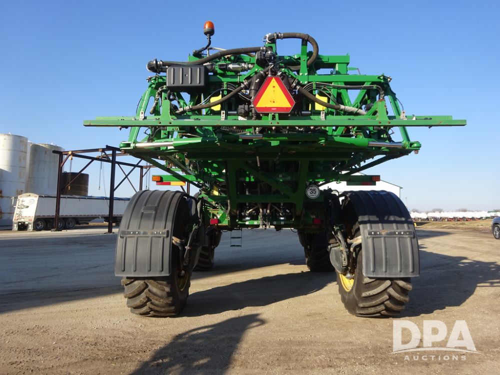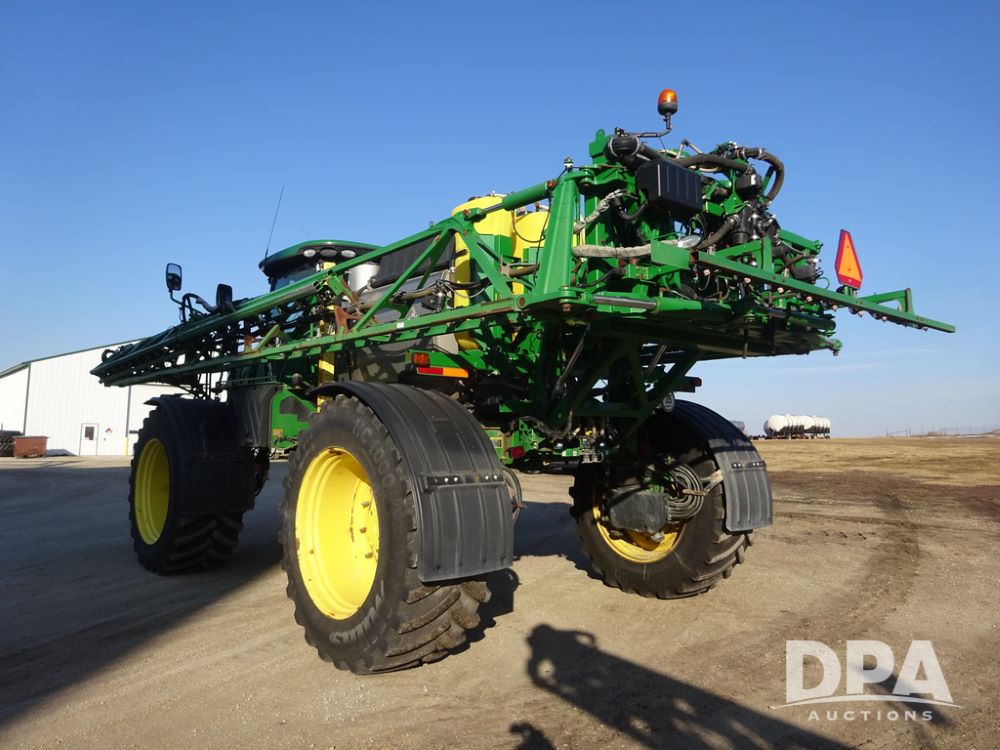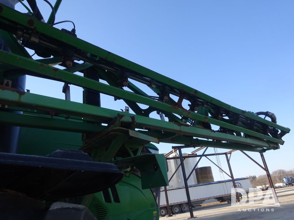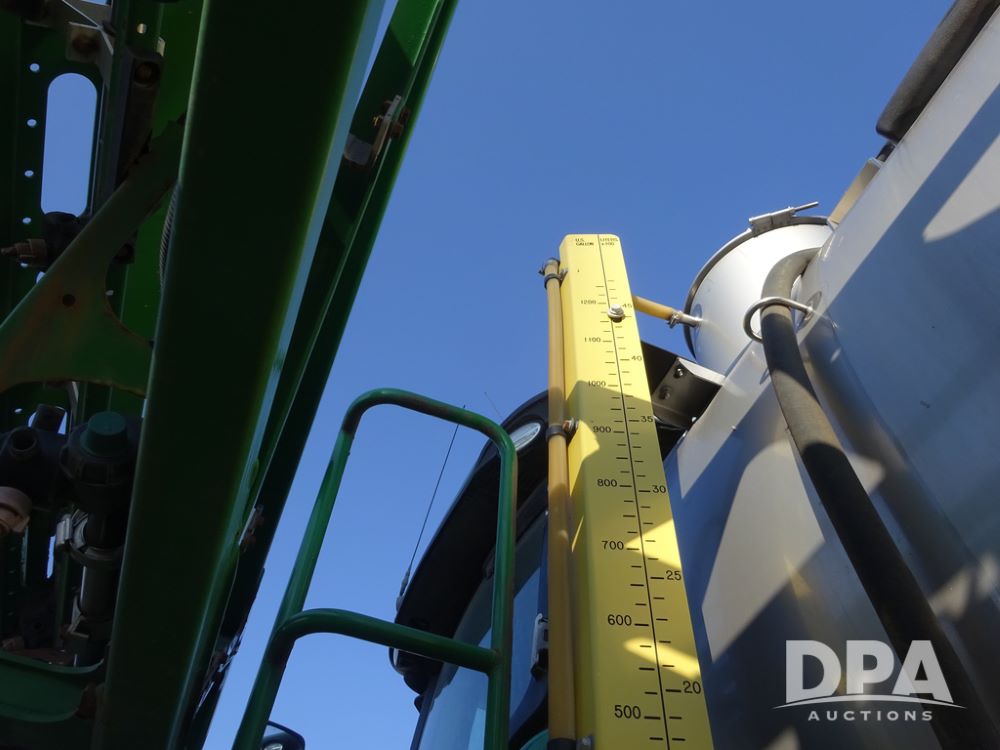 2019 John Deere R4045 Sprayer (PZ14412, Unit 1049), John Deere diesel engine (S/N RG6090U068074), hydrostatic transmission, air conditioning, heat, Am/Fm radio, leather seat, buddy seat, beacon light, 1200 gallon stainless steel liquid system, 120' boom, top poly rinse tank, 4 - 50 gallon poly injection tanks, 2 - Raven Sidekick Pro pumps, automatic solution control, Vogelsang front fill system, Mitas VF750/60R46 flotation tires and fenders, John Deere StarFire 6000 globe, shows 5,436 hours.