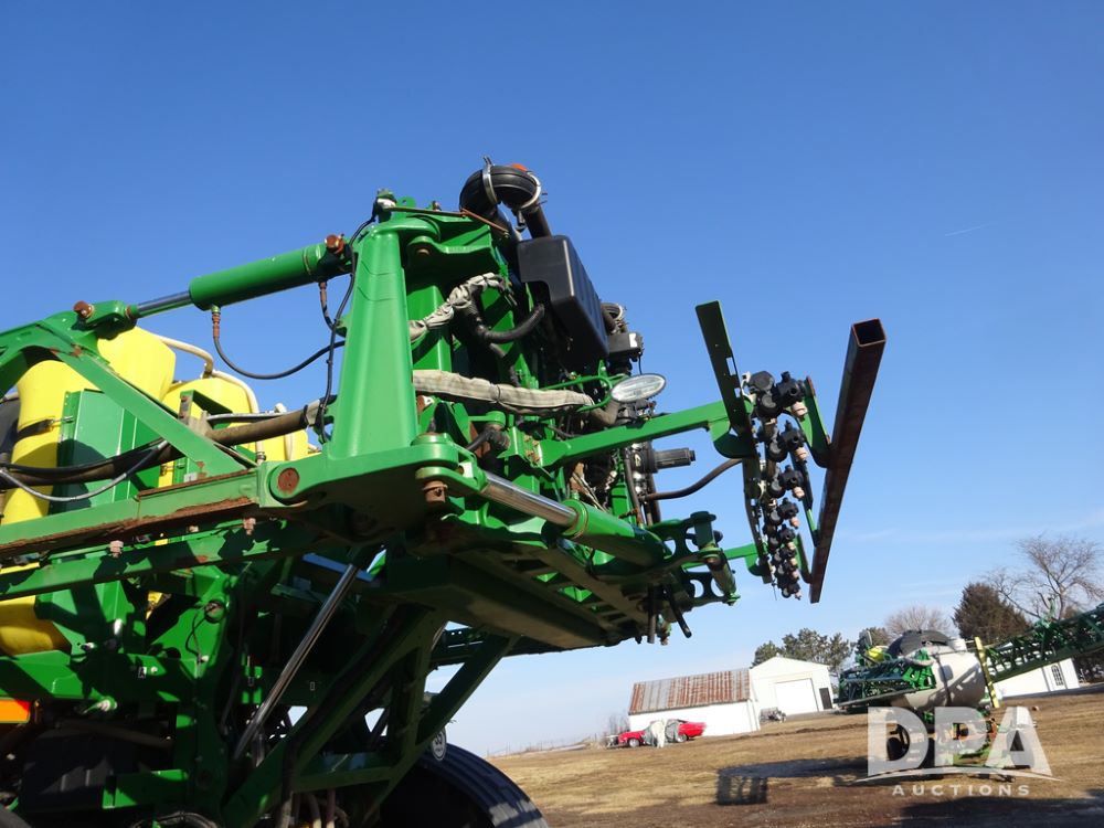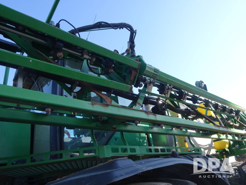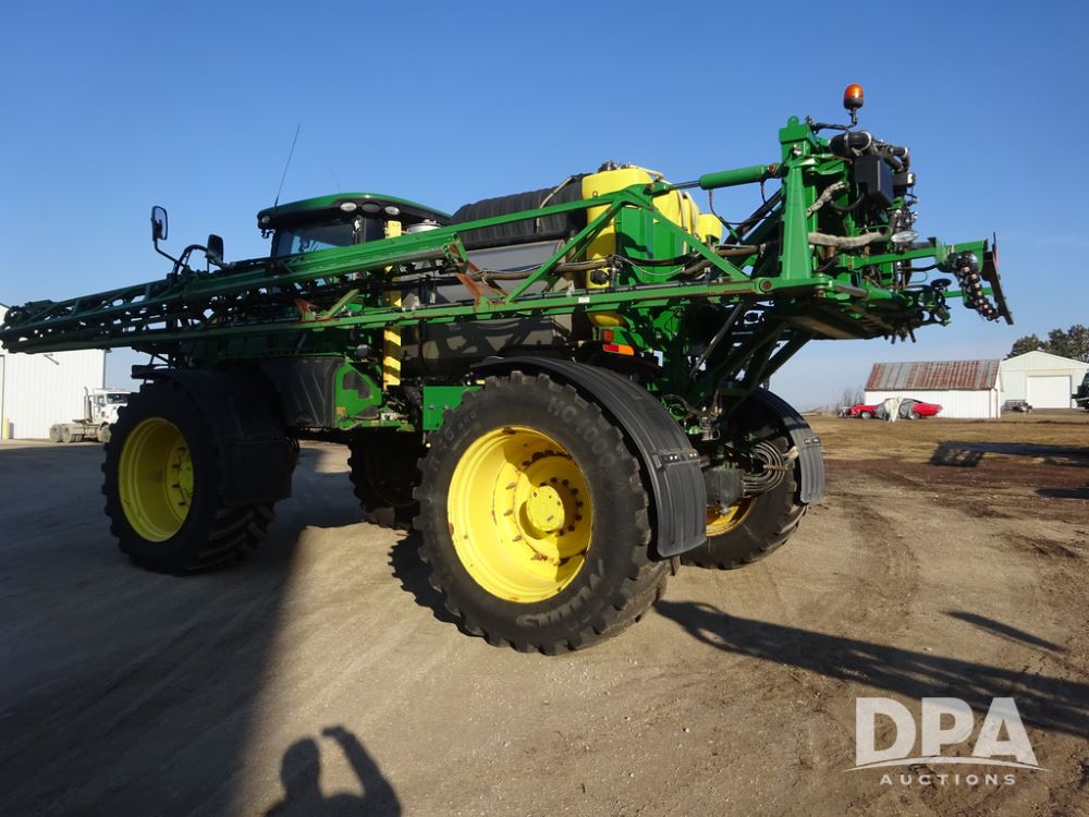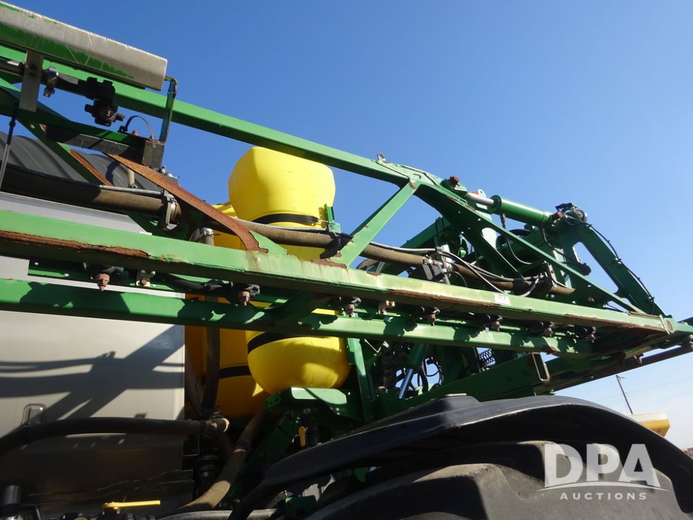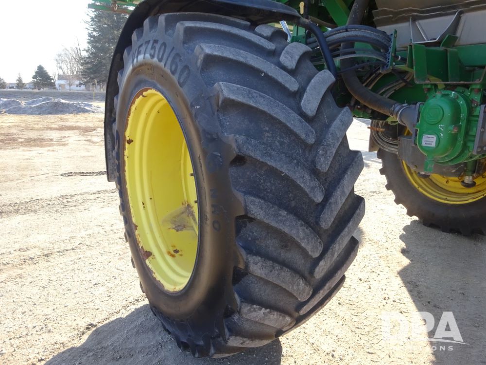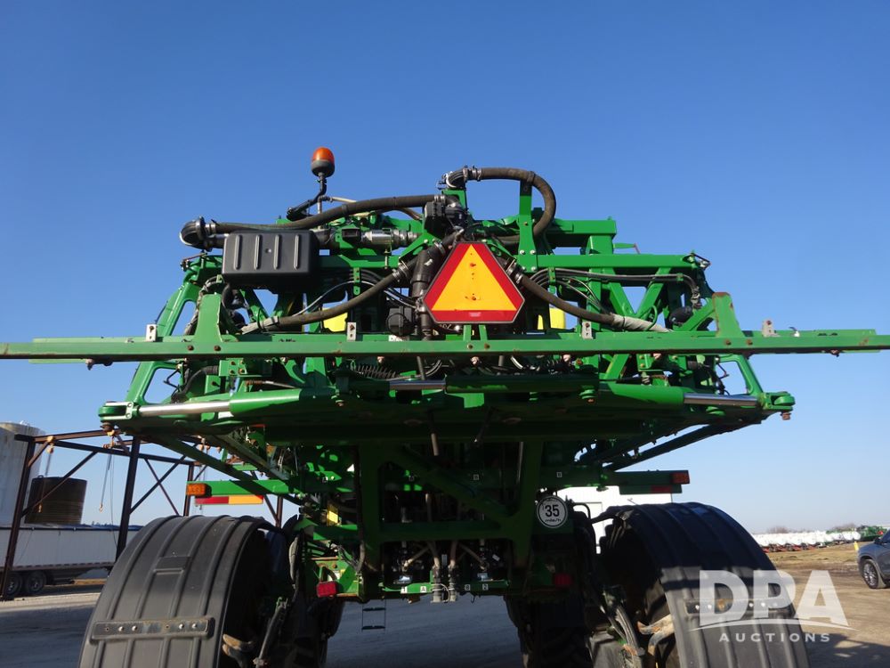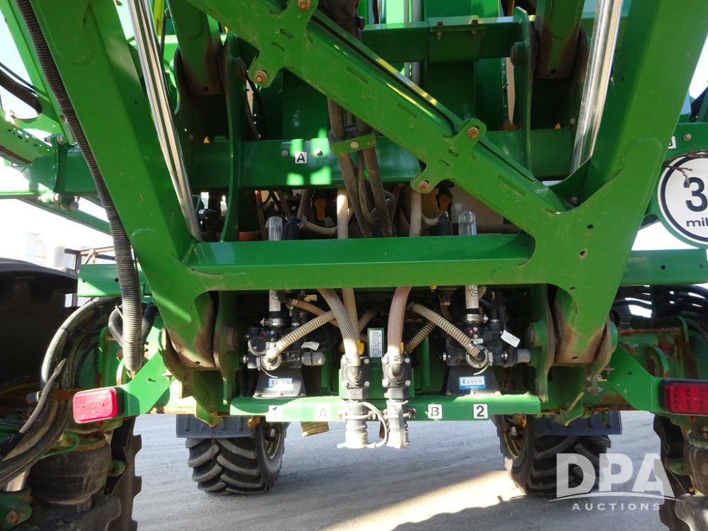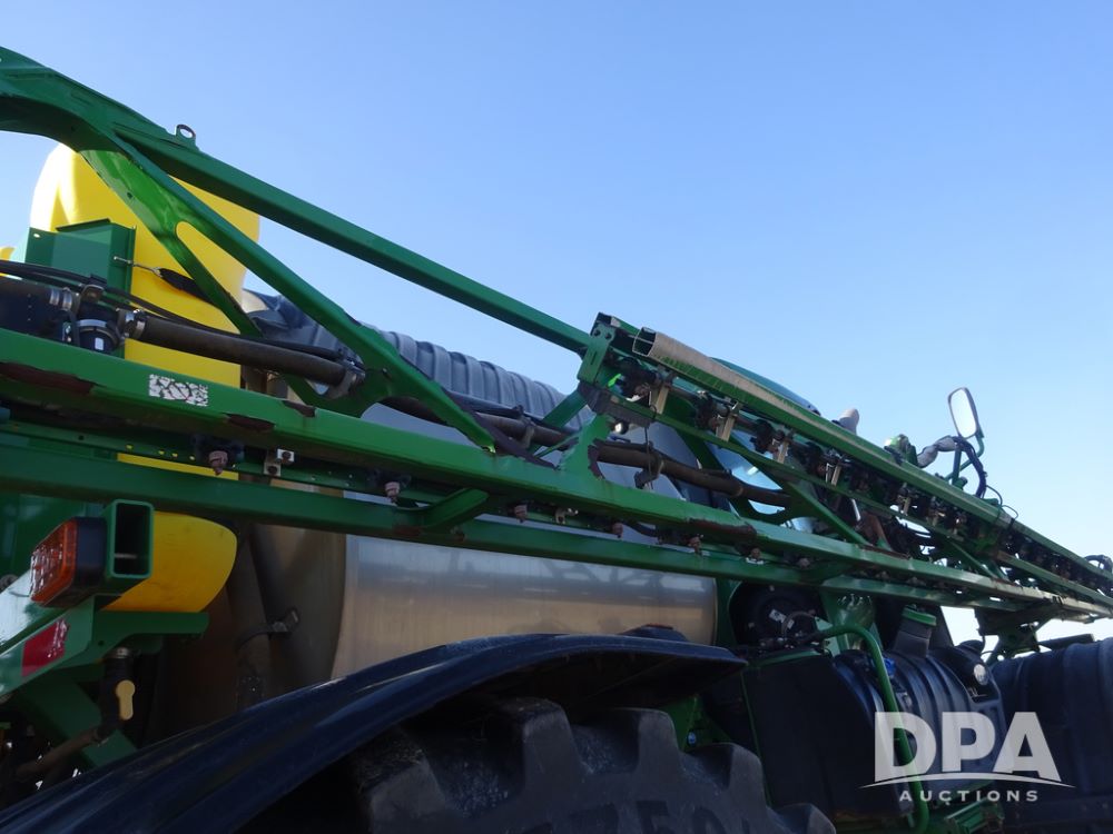 2019 John Deere R4045 Sprayer (PZ14412, Unit 1049), John Deere diesel engine (S/N RG6090U068074), hydrostatic transmission, air conditioning, heat, Am/Fm radio, leather seat, buddy seat, beacon light, 1200 gallon stainless steel liquid system, 120' boom, top poly rinse tank, 4 - 50 gallon poly injection tanks, 2 - Raven Sidekick Pro pumps, automatic solution control, Vogelsang front fill system, Mitas VF750/60R46 flotation tires and fenders, John Deere StarFire 6000 globe, shows 5,436 hours.