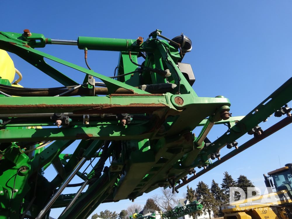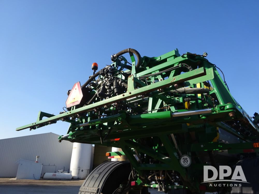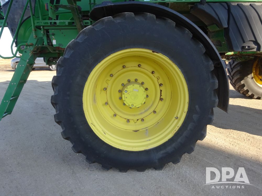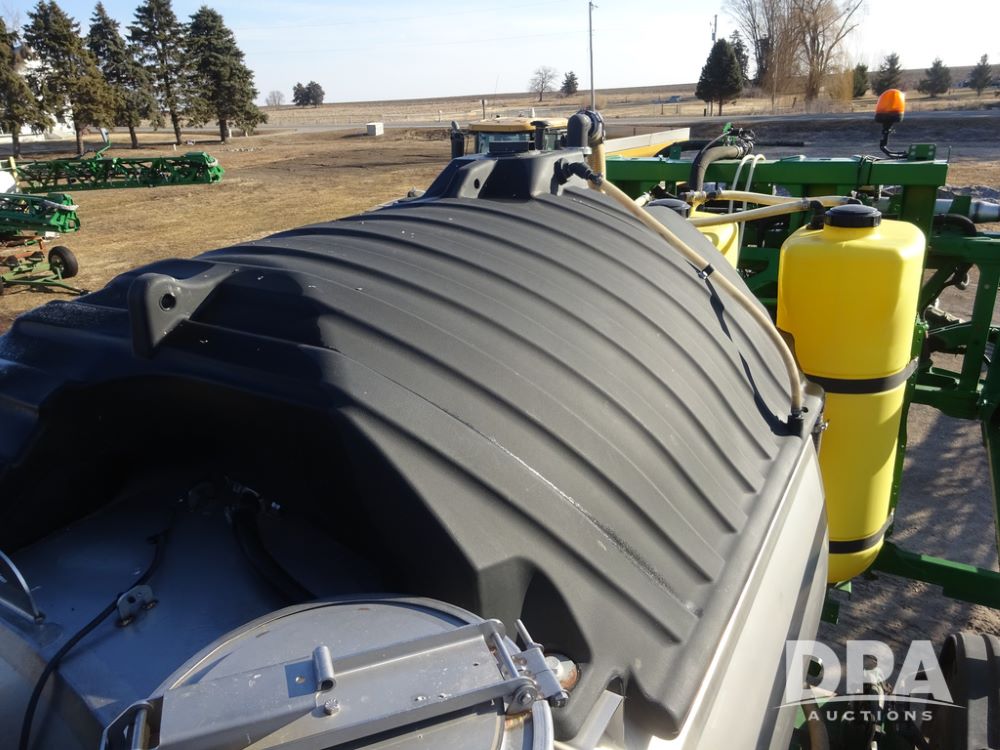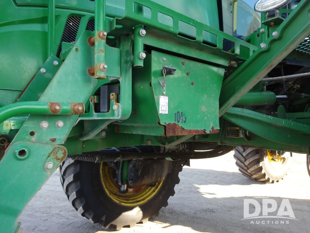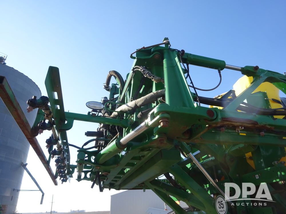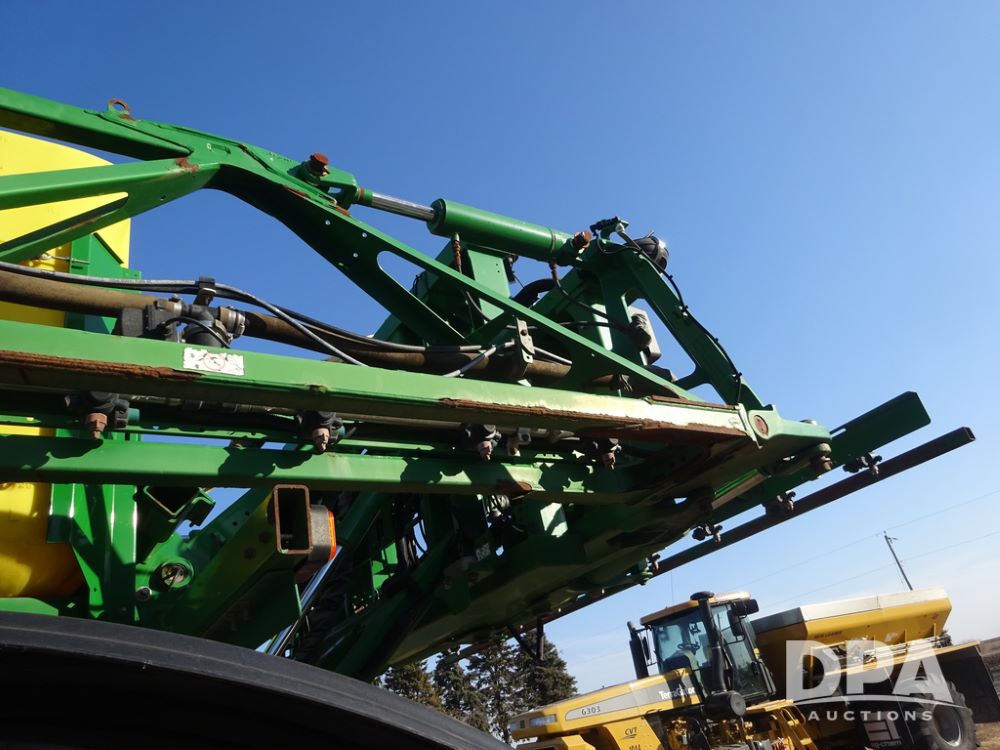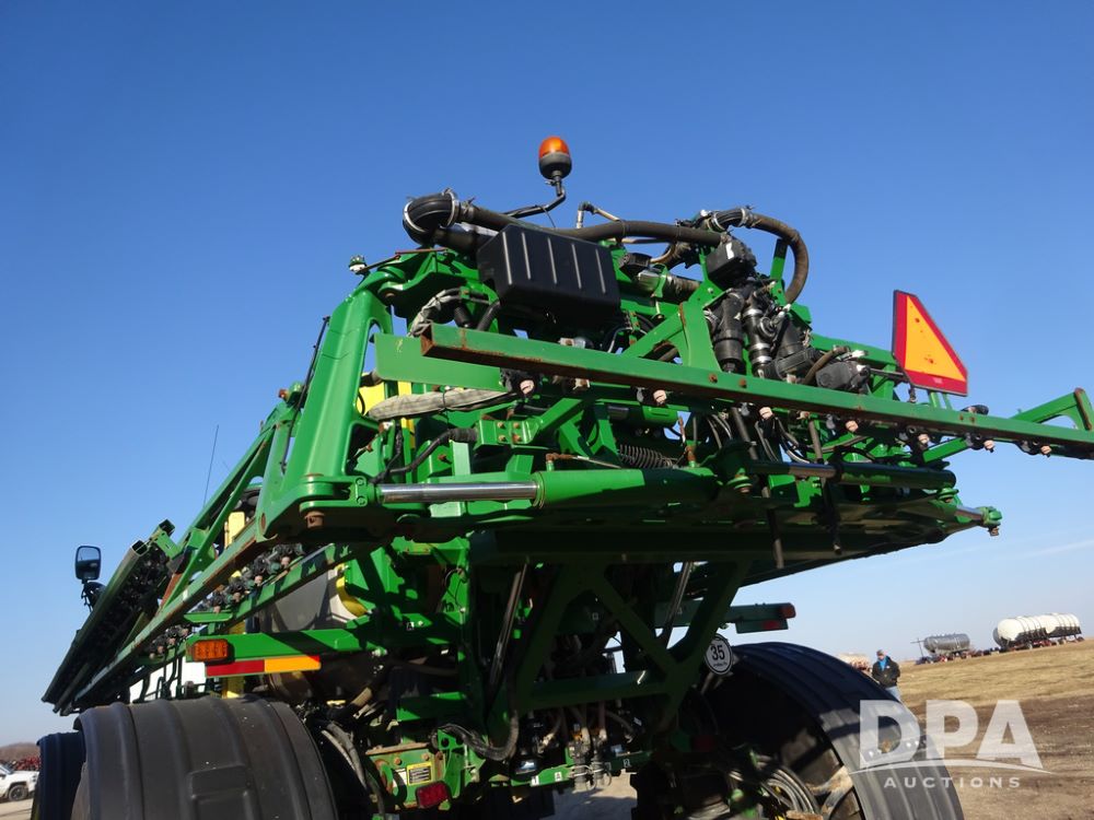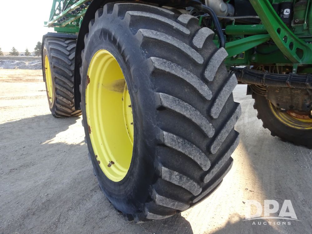 2019 John Deere R4045 Sprayer (PZ14412, Unit 1049), John Deere diesel engine (S/N RG6090U068074), hydrostatic transmission, air conditioning, heat, Am/Fm radio, leather seat, buddy seat, beacon light, 1200 gallon stainless steel liquid system, 120' boom, top poly rinse tank, 4 - 50 gallon poly injection tanks, 2 - Raven Sidekick Pro pumps, automatic solution control, Vogelsang front fill system, Mitas VF750/60R46 flotation tires and fenders, John Deere StarFire 6000 globe, shows 5,436 hours.