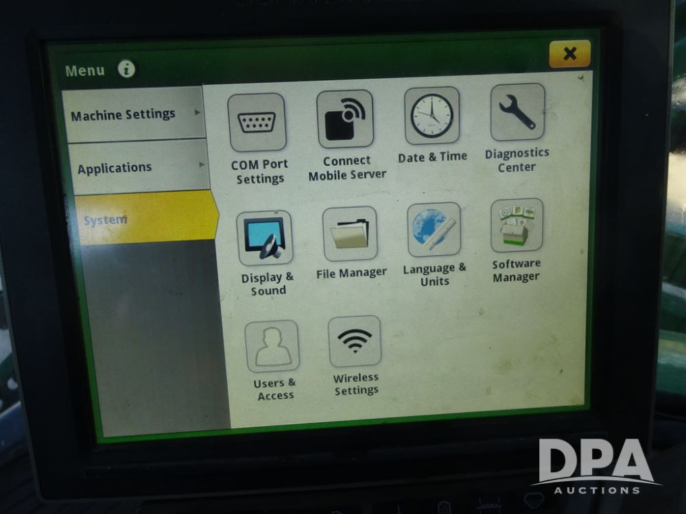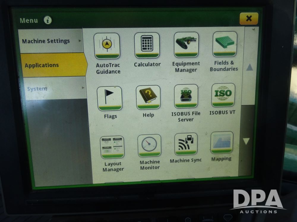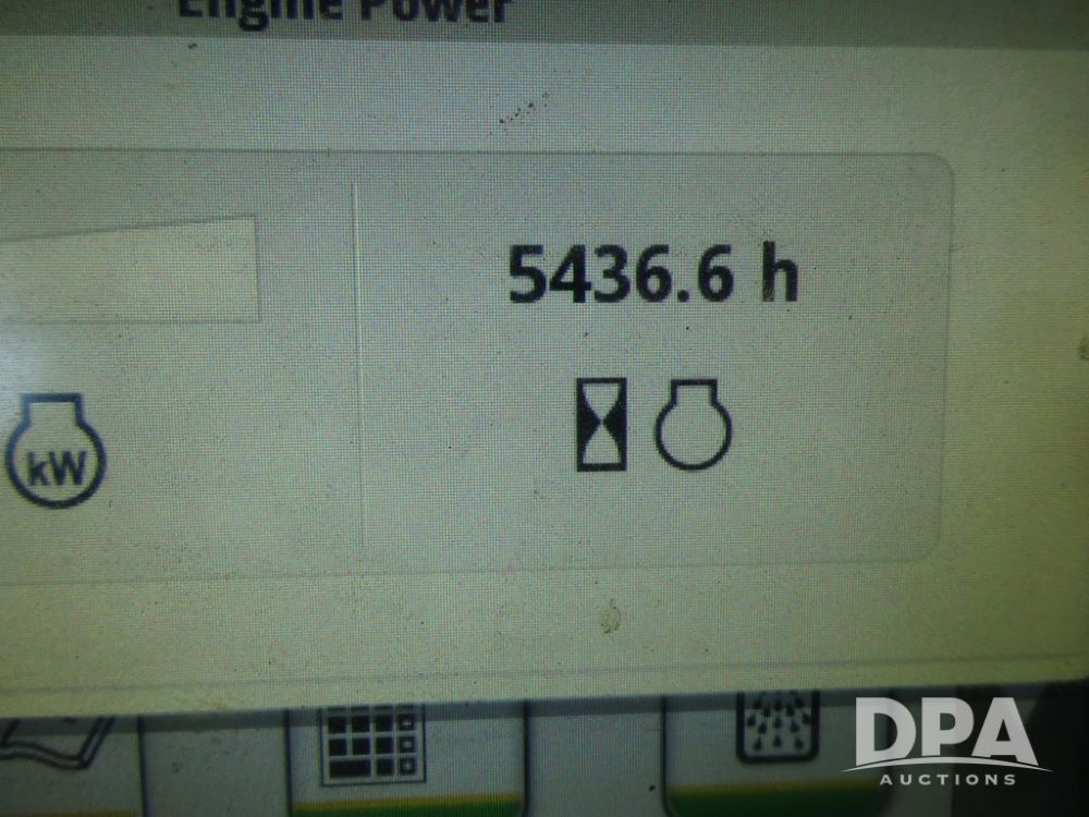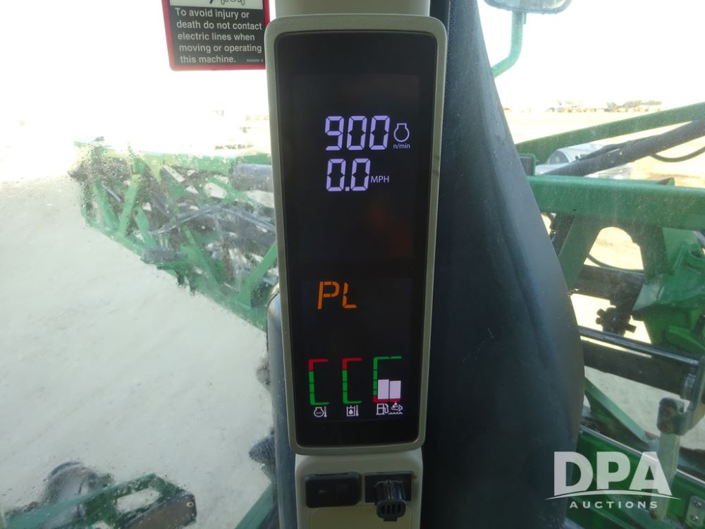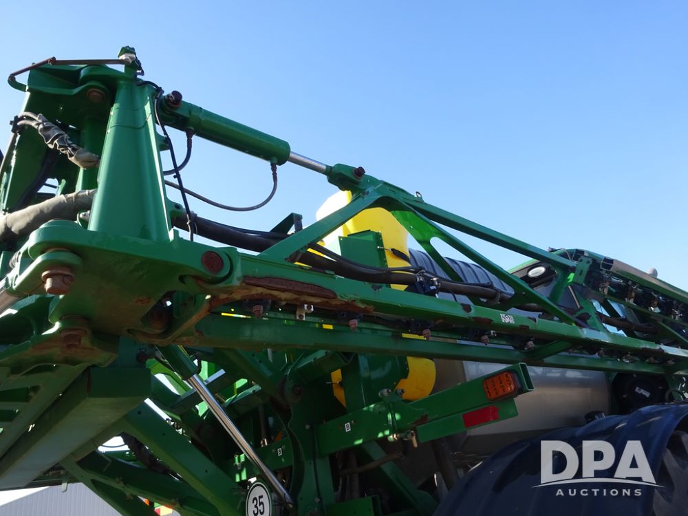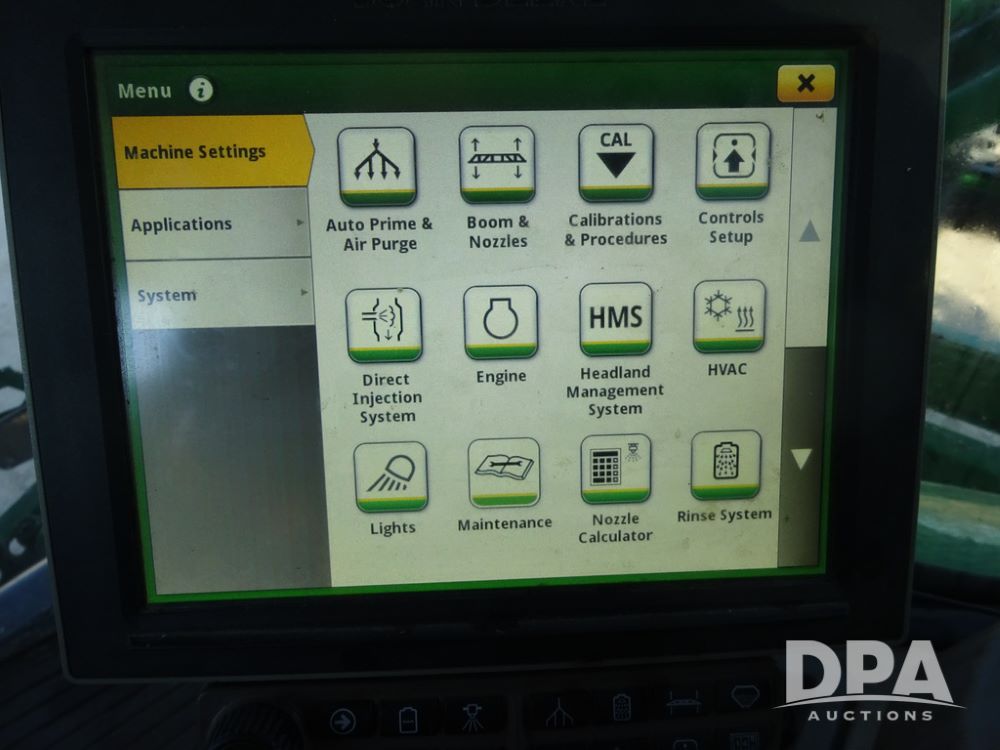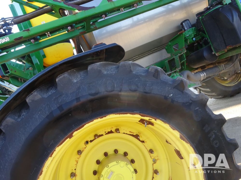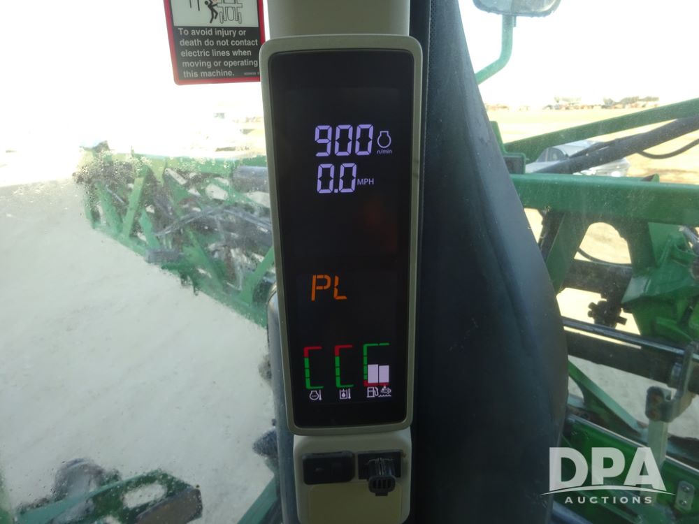 2019 John Deere R4045 Sprayer (PZ14412, Unit 1049), John Deere diesel engine (S/N RG6090U068074), hydrostatic transmission, air conditioning, heat, Am/Fm radio, leather seat, buddy seat, beacon light, 1200 gallon stainless steel liquid system, 120' boom, top poly rinse tank, 4 - 50 gallon poly injection tanks, 2 - Raven Sidekick Pro pumps, automatic solution control, Vogelsang front fill system, Mitas VF750/60R46 flotation tires and fenders, John Deere StarFire 6000 globe, shows 5,436 hours.