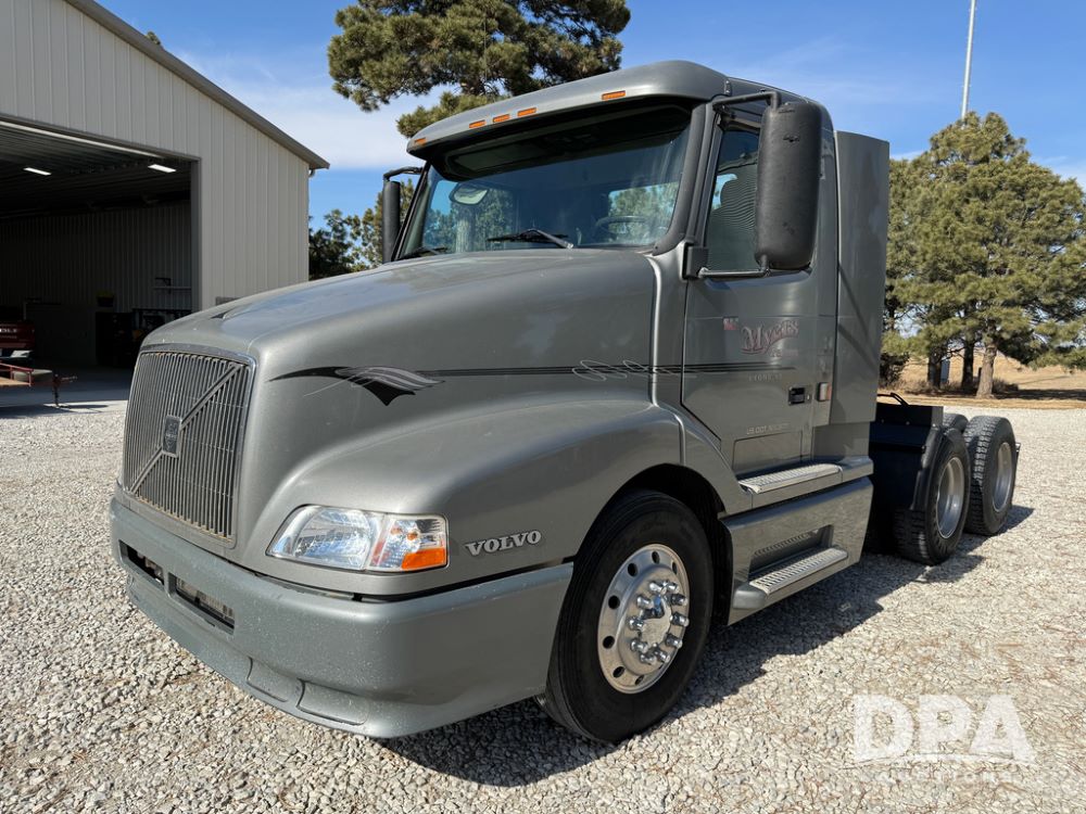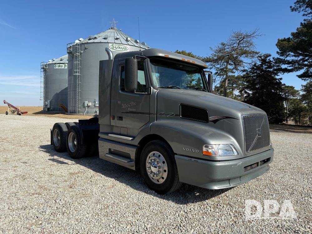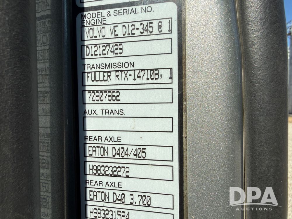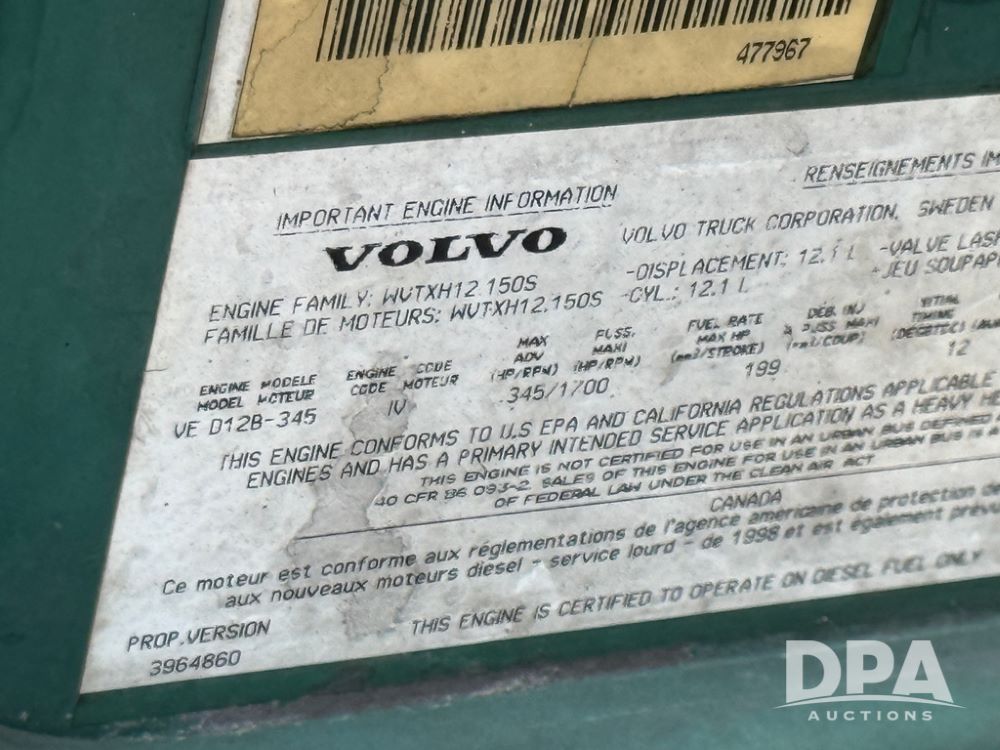 1999 Volvo VNL64T Day Cab Truck (NP6496), Volvo 12.1L - VE D12B-345 diesel engine, Eaton Fuller 10 speed transmission, heat, air conditioning, Am/Fm radio, power windows, air ride cab, tandem axle, air ride suspension, Jost 5th wheel plate, Firestone 295/75R22.5 rear tires, Bridgestone 295/75R22.5 front tires, Engine Heater, Eaton 3.70 rear ratio, approx. 170" wheel base, GVWR 50,000 pounds, shows 501,996 miles.
