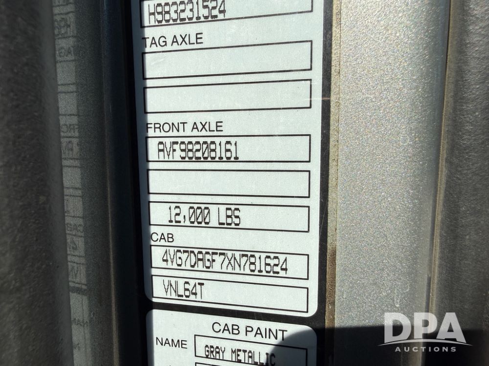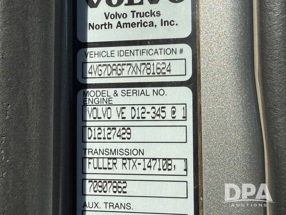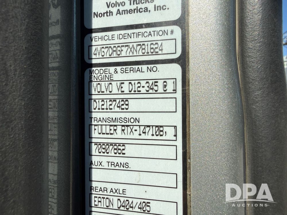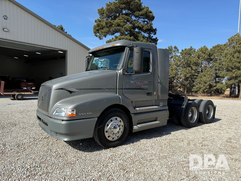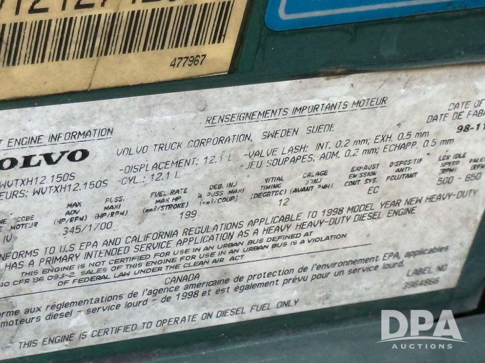 1999 Volvo VNL64T Day Cab Truck (NP6496), Volvo 12.1L - VE D12B-345 diesel engine, Eaton Fuller 10 speed transmission, heat, air conditioning, Am/Fm radio, power windows, air ride cab, tandem axle, air ride suspension, Jost 5th wheel plate, Firestone 295/75R22.5 rear tires, Bridgestone 295/75R22.5 front tires, Engine Heater, Eaton 3.70 rear ratio, approx. 170" wheel base, GVWR 50,000 pounds, shows 501,996 miles.
