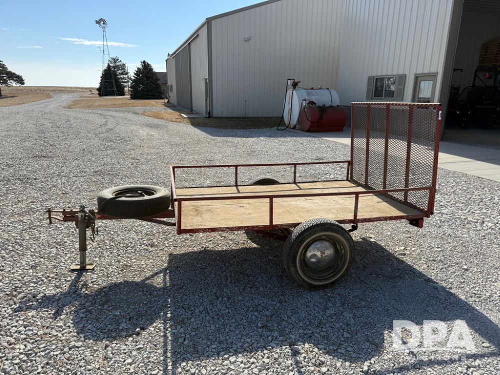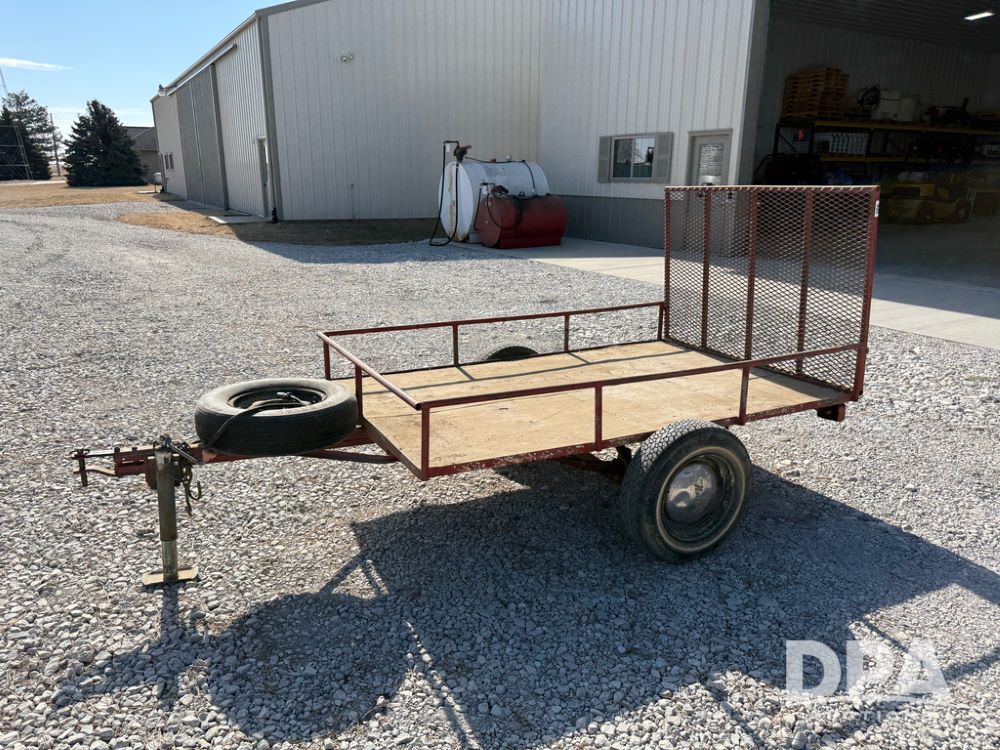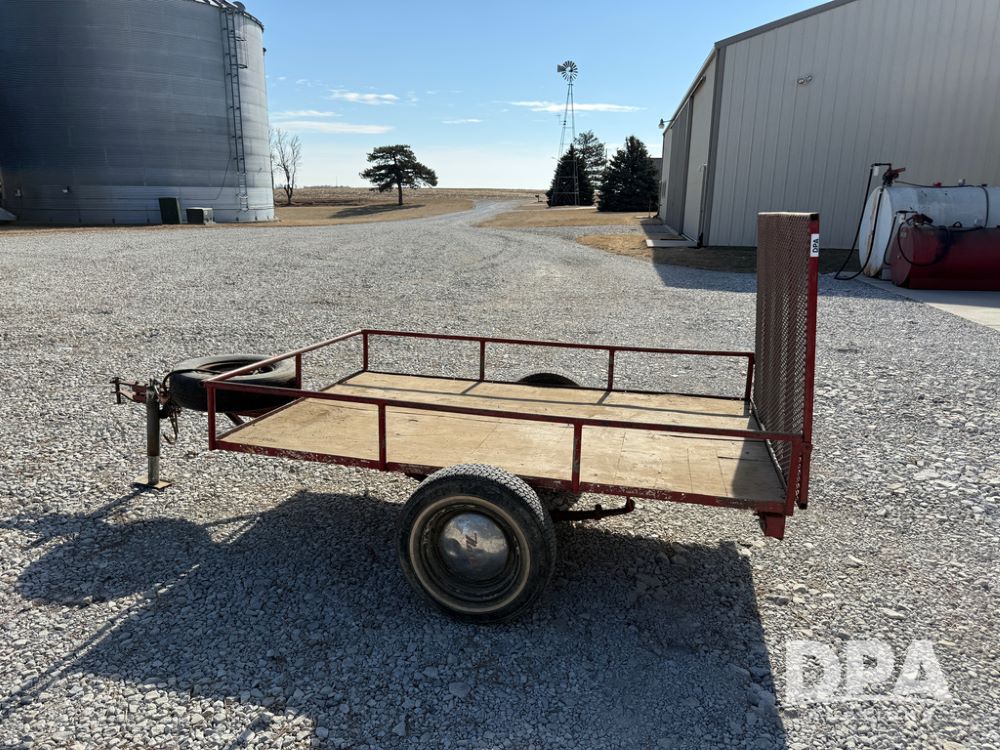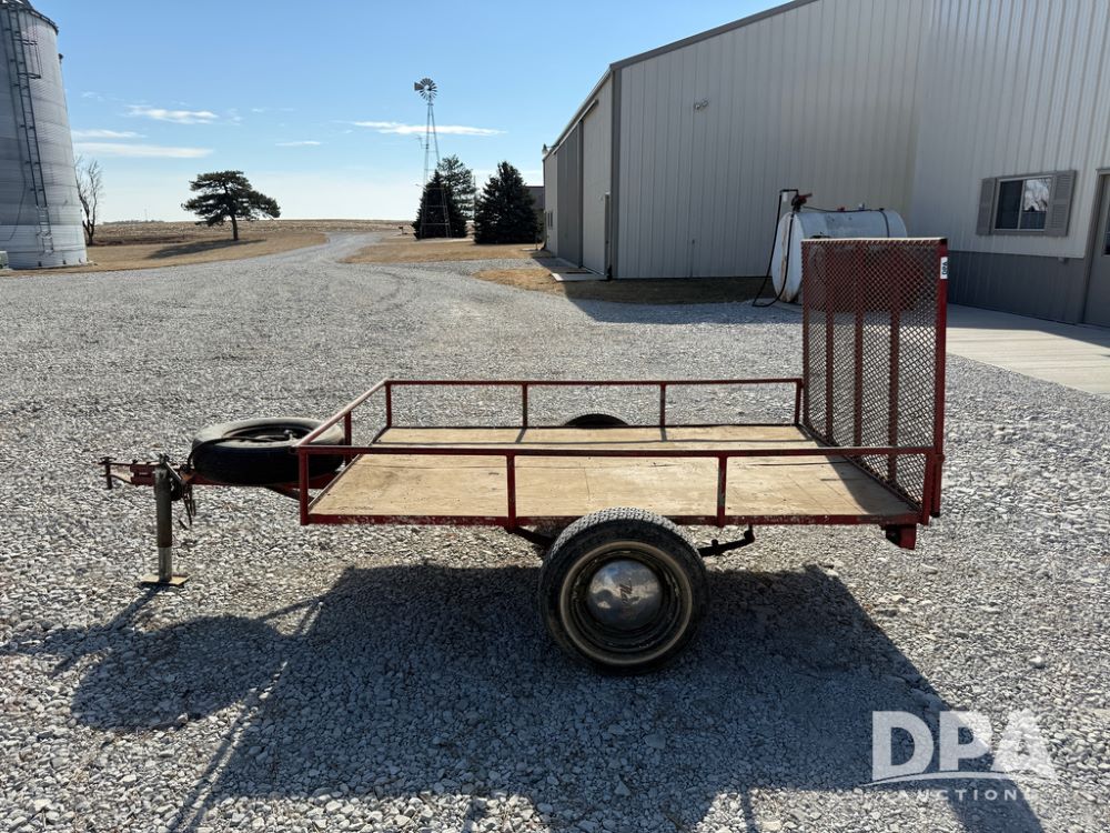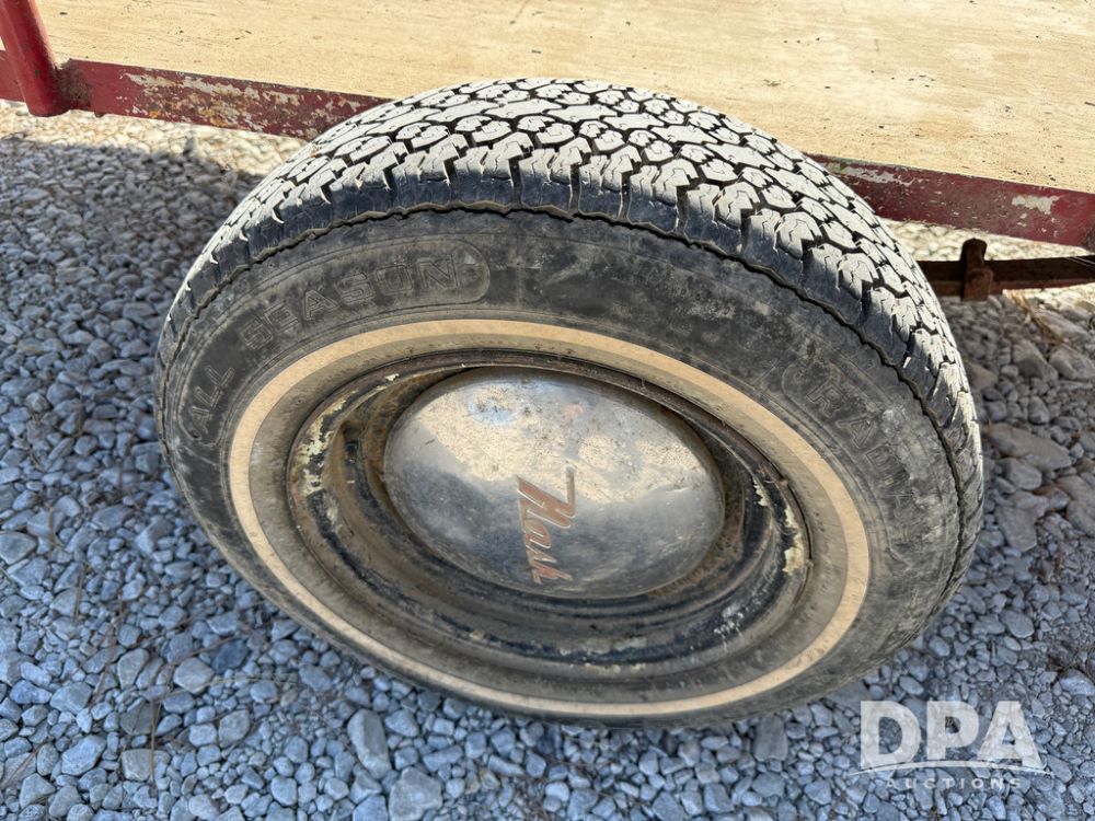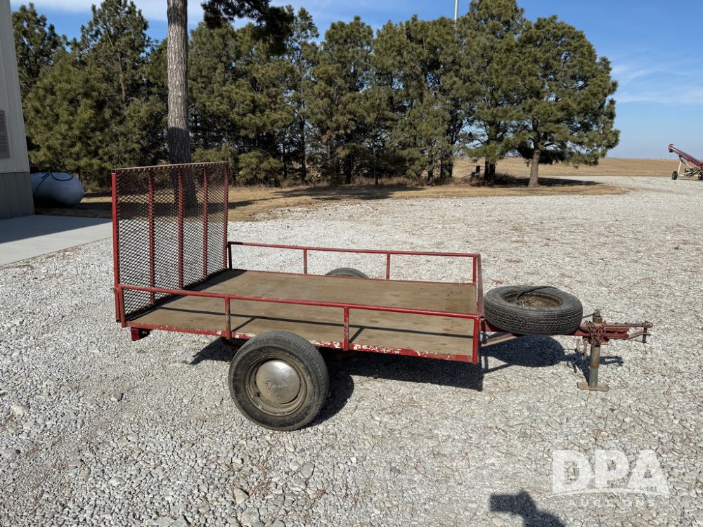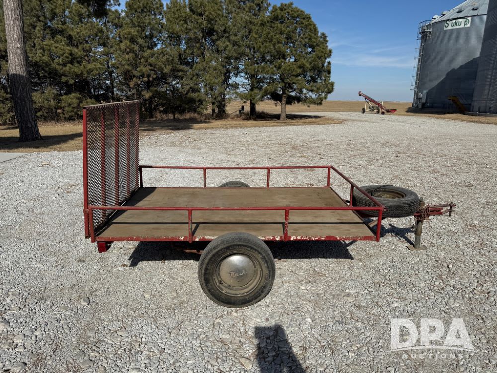 Homemade Lawnmower Trailer (NP6497), single axle, approx. 7' x 4.5' bed, approx. 3' fold down ramp, lights, P175/70R13 tires, spare tire, NASH rims.