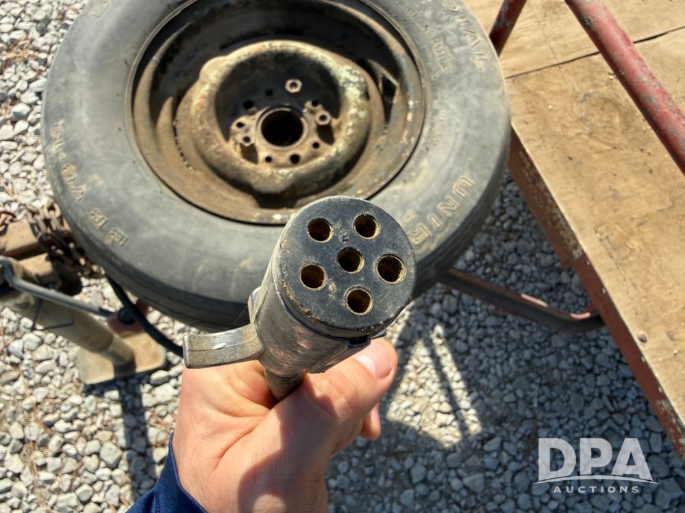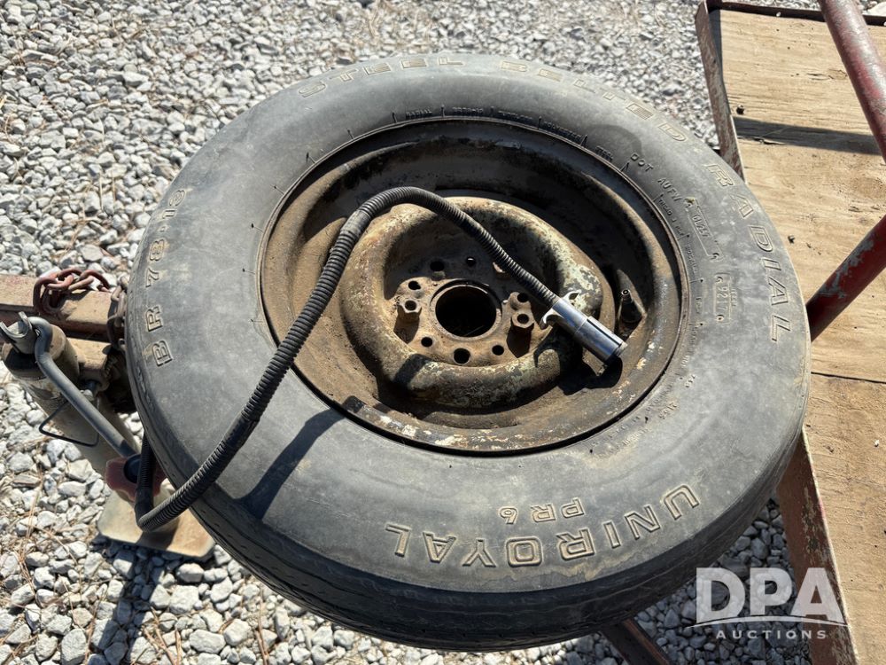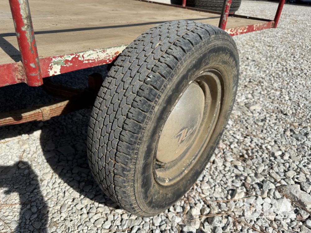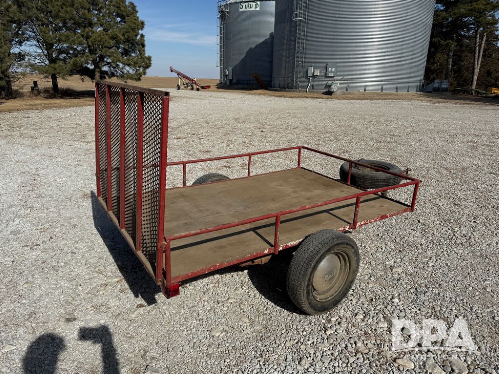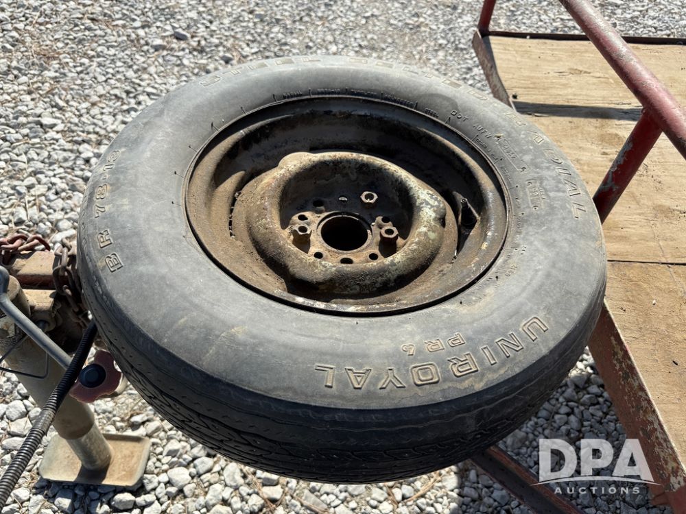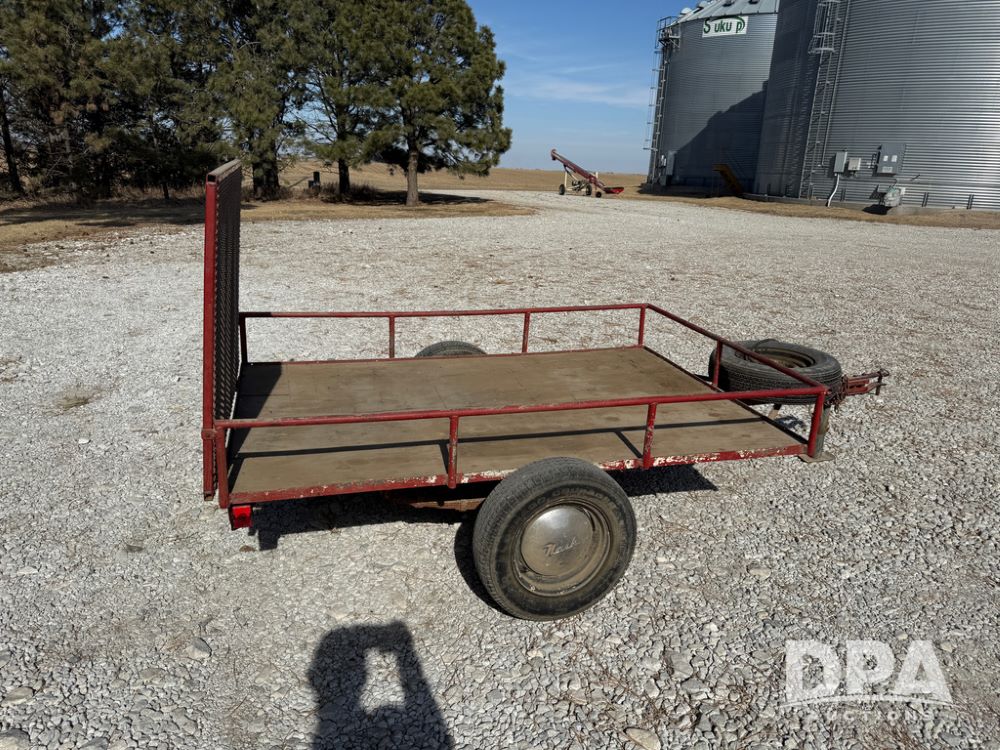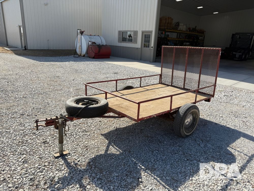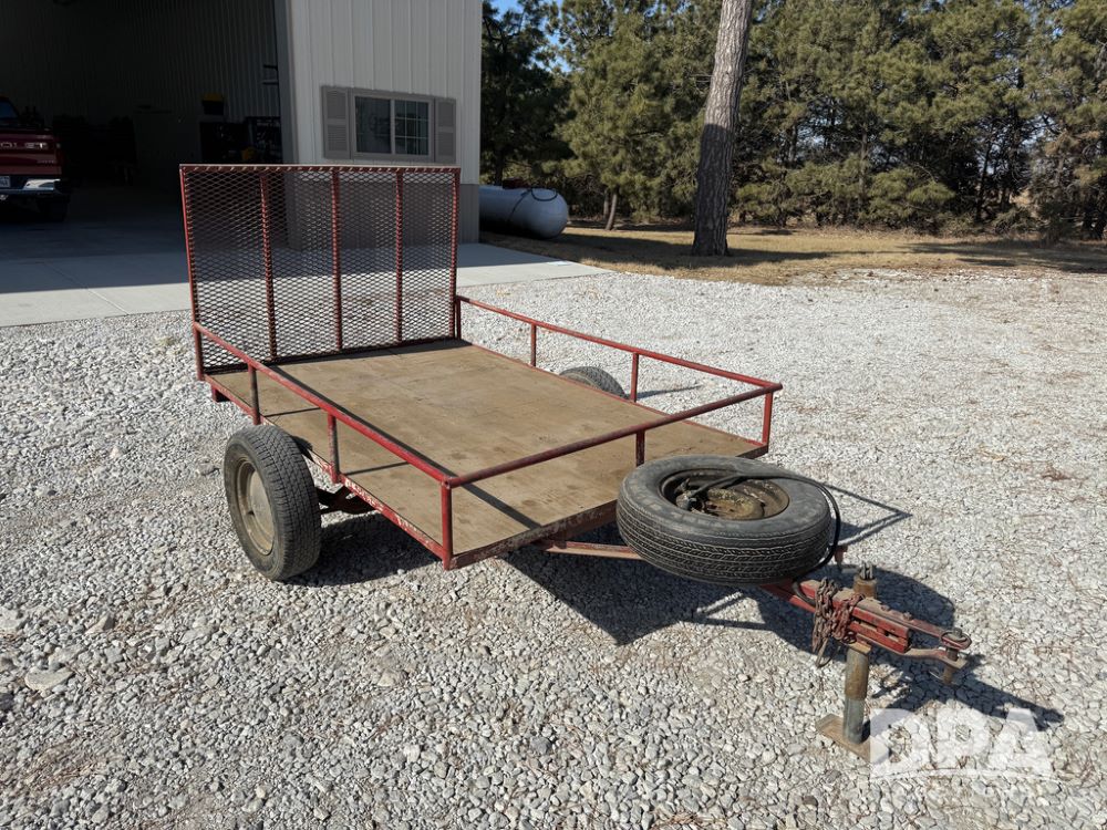 Homemade Lawnmower Trailer (NP6497), single axle, approx. 7' x 4.5' bed, approx. 3' fold down ramp, lights, P175/70R13 tires, spare tire, NASH rims.