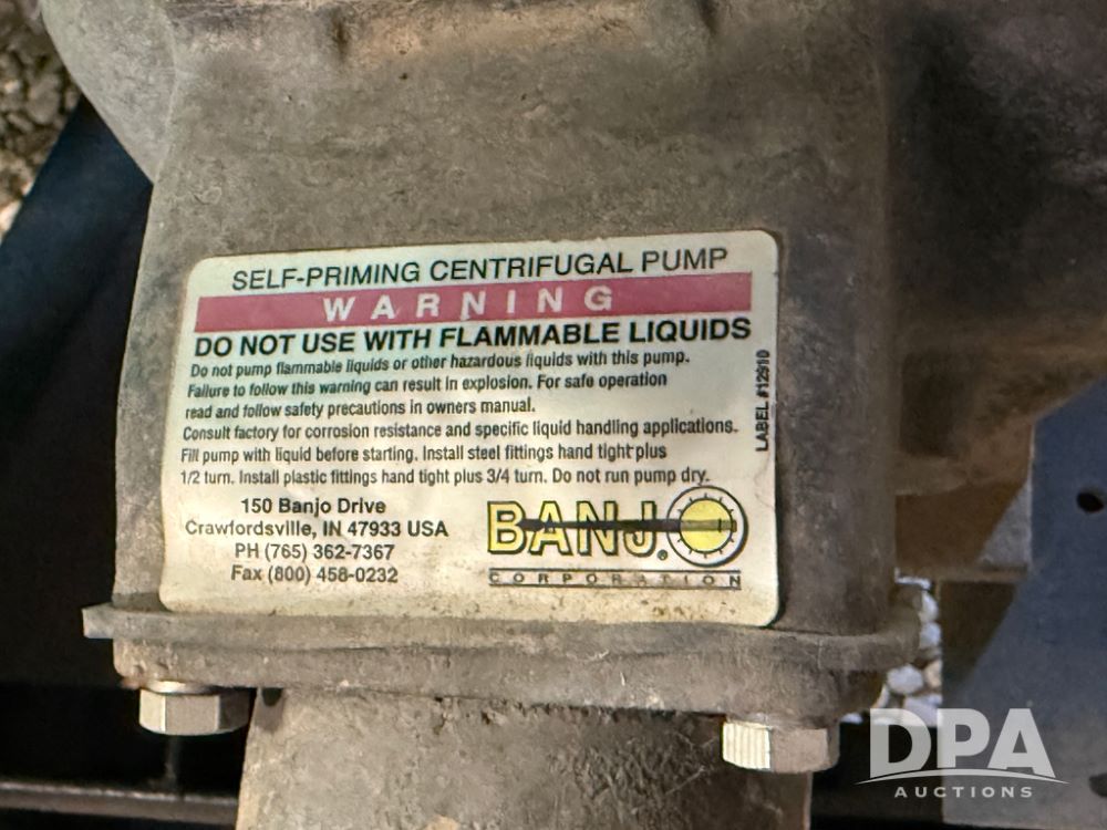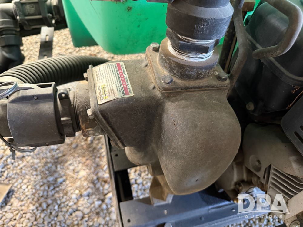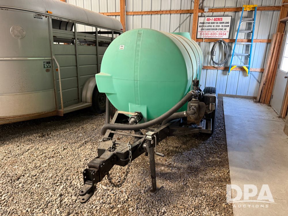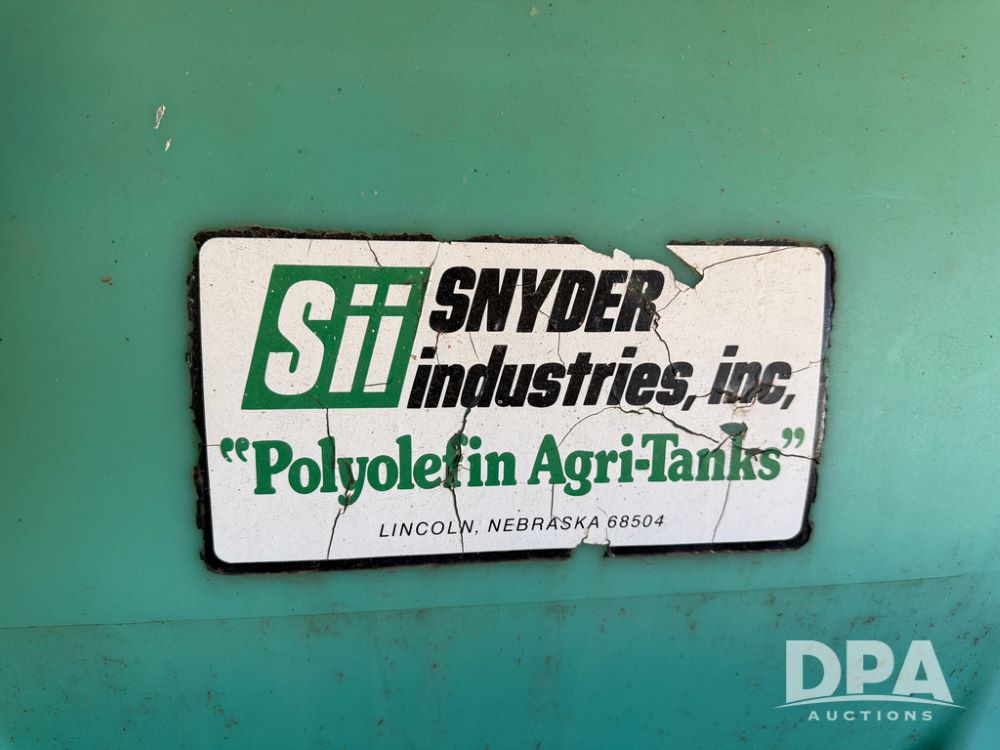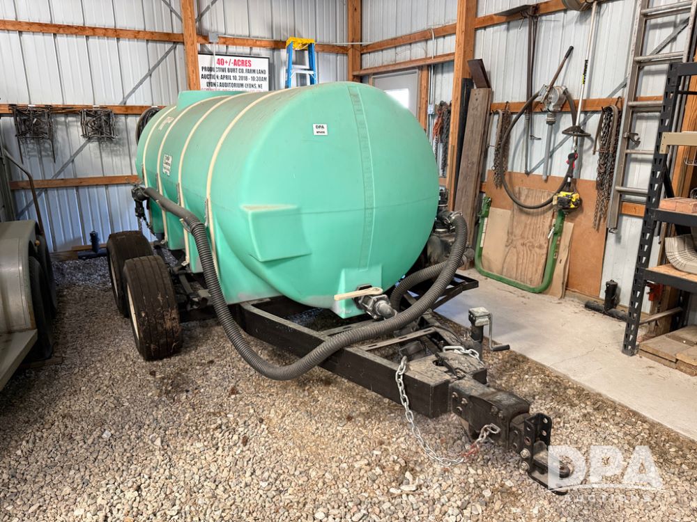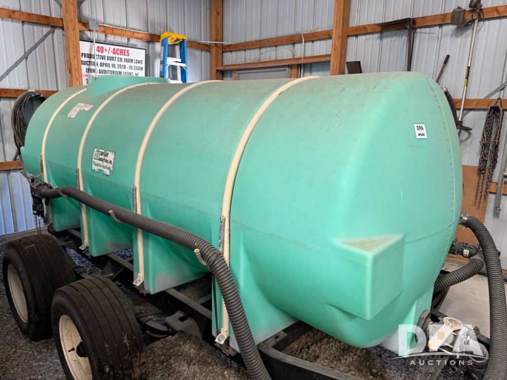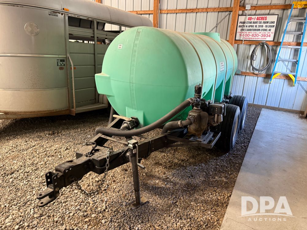 Snyder Industries Liquid Nurse Trailer (NP6498), 1,000 gallon poly flat bottom liquid tank, tandem axle gear, 11-15L flotation tires (rated at 60 MPH), Briggs & Stratton 900 Intek 9HP - 205cc gas motor, Banjo cast iron self-priming centrifugal pump, wired for lights.