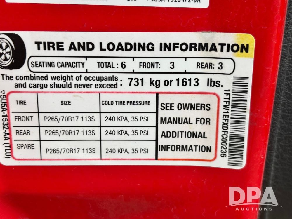 2013 Ford F-150 XLT 4x4 Pickup (GP11742, Unit 79008), 4 door, gas engine, automatic transmission, heat, air conditioning, Am/Fm radio, cloth interior, power windows, locks and mirrors, cruise control, tow package, running boards, spray-in bed liner, driver door keypad, P265/70R17 tires, shows 195,915 miles.