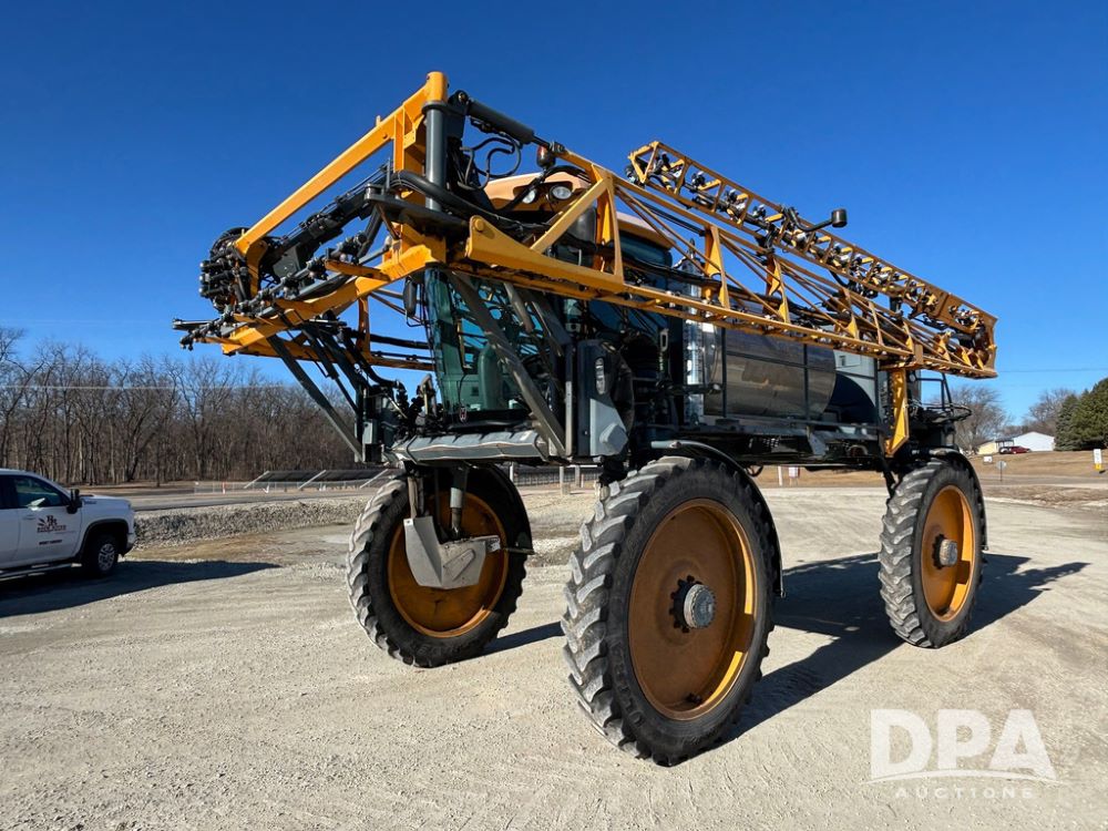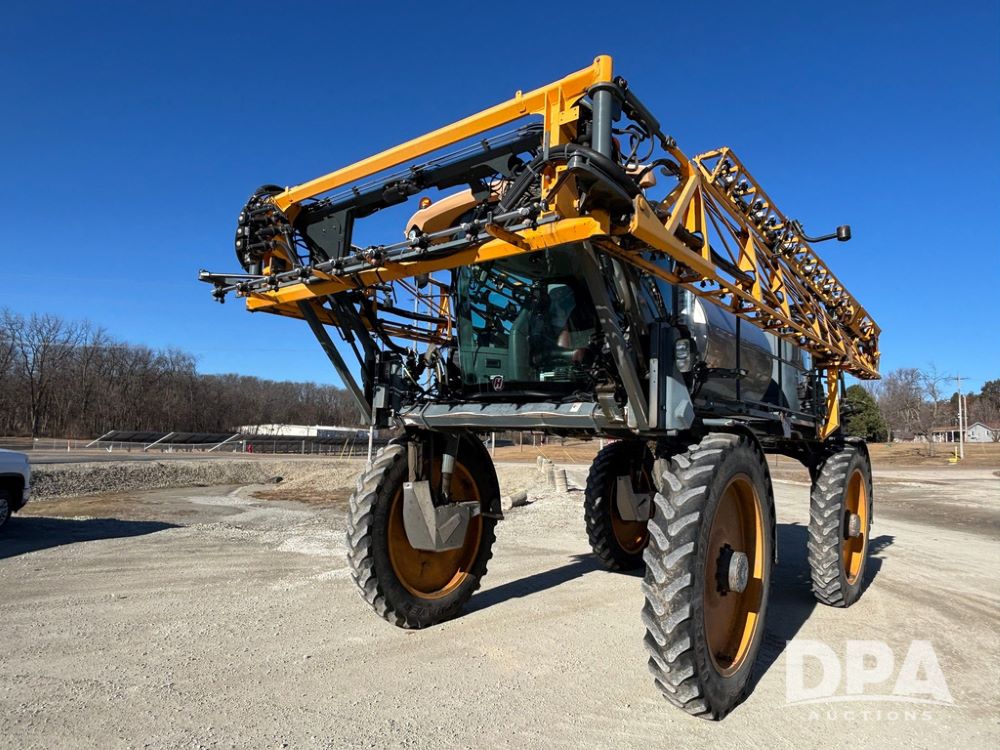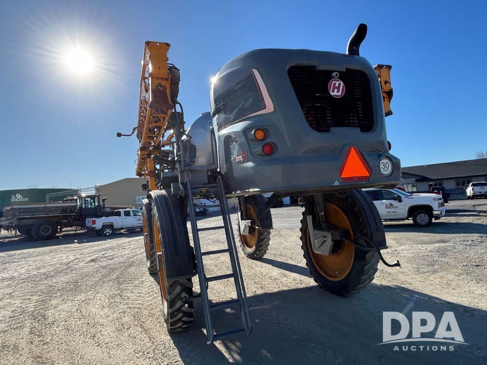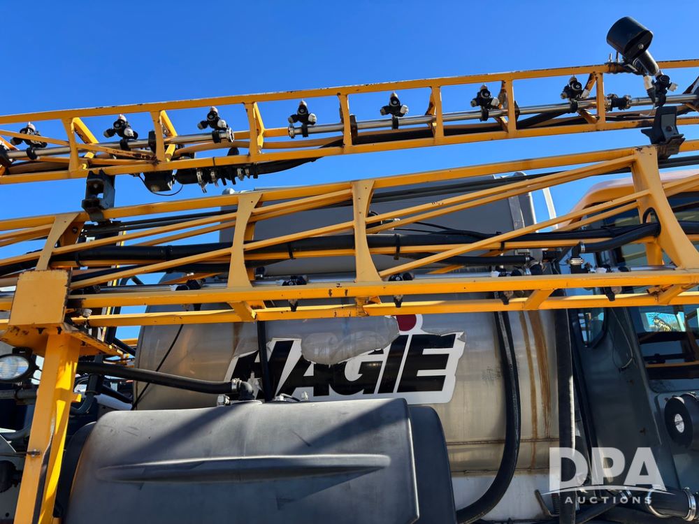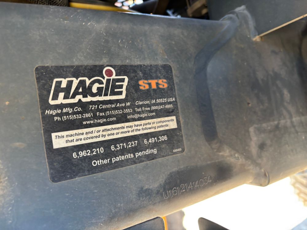 2014 Hagie STS14 Sprayer (GP12824), Cummins diesel engine, hydrostatic transmission, heat, air conditioning, Am/Fm radio, leather driver and buddy seat, 1,400 gallon stainless steel liquid system, 100' boom, top mount poly rinse tank, Goodyear 320/105R54 row crop tires, fenders, Raven GPS, Raven Viper Pro monitor, shows 3,776 hours.