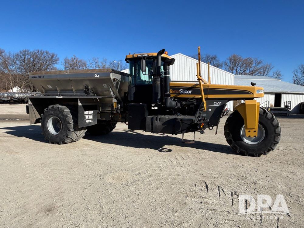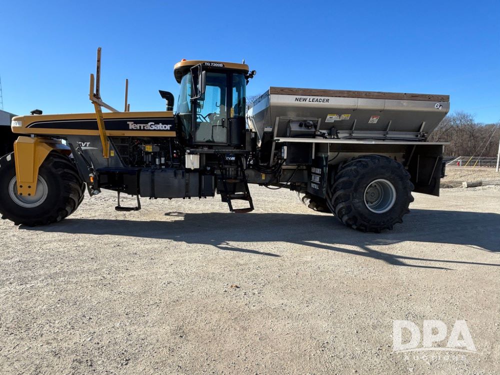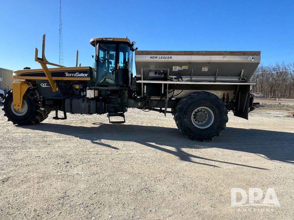 2015 Terra Gator TG7300B Dry Floater (GP12822), AGCO diesel engine, CVT transmission, heat, air conditioning, Am/Fm radio, leather driver and buddy seat, air ride cab, New Leader L4000 G4 -13 stainless steel dry spreader box (S/N 134844), MultApplier Ready, dual spinners, hydraulic, slatted chain, Goodyear 1000/50R25 tires, backup camera, Raven GPS, Raven Viper 4 monitor, shows 5,053 hours.
