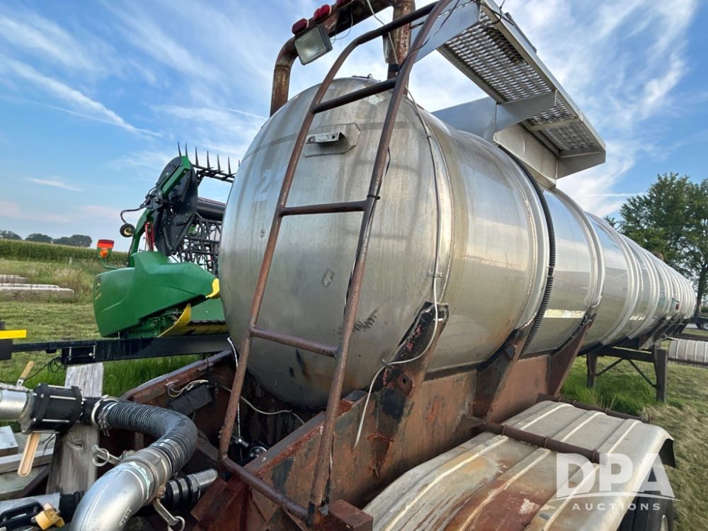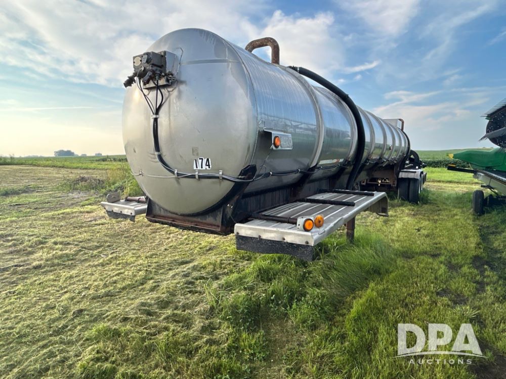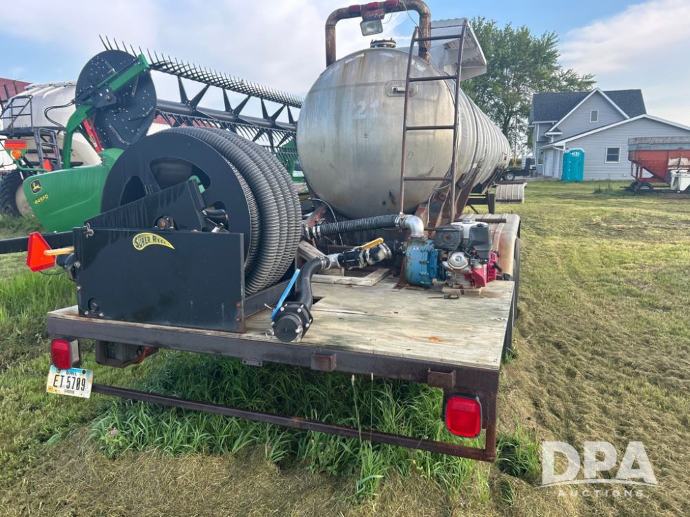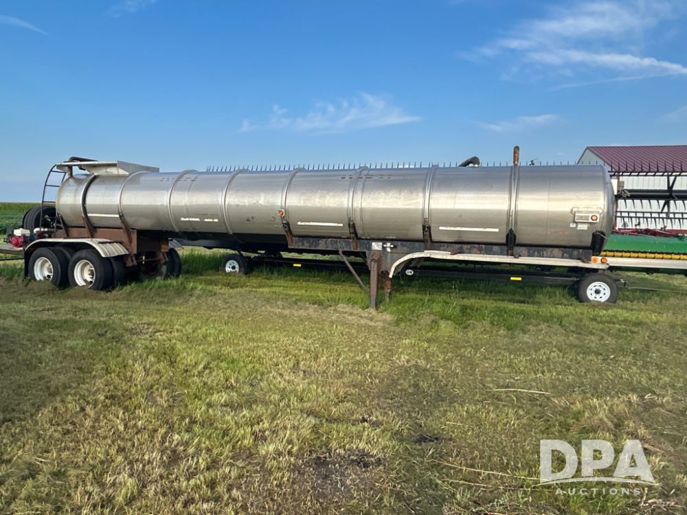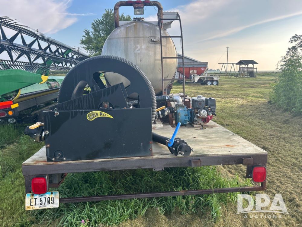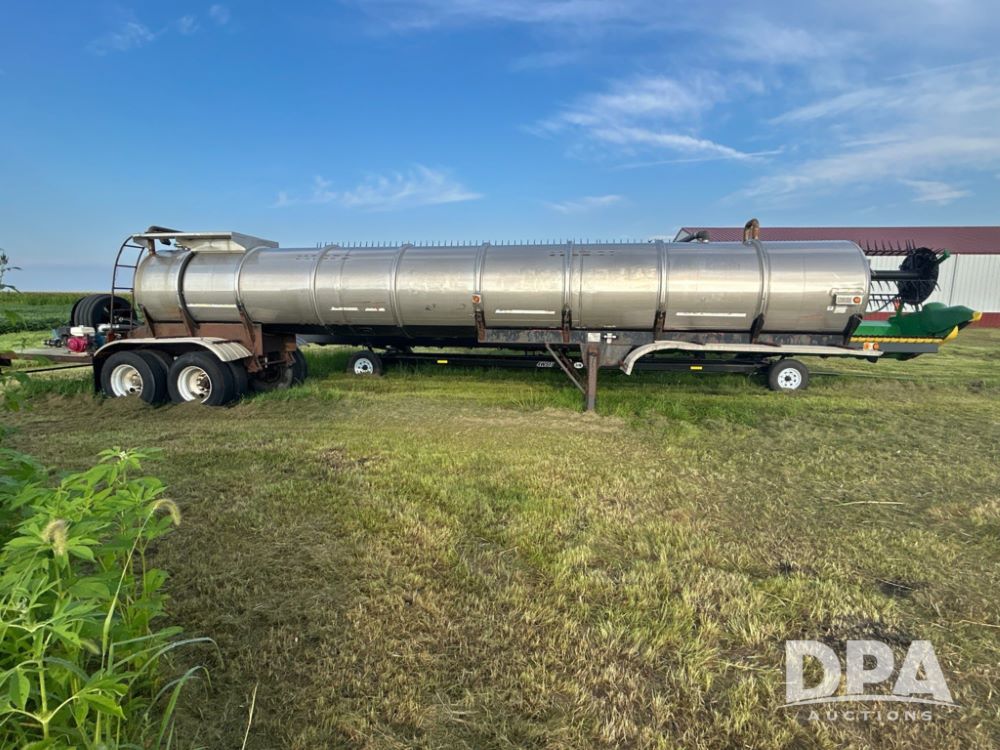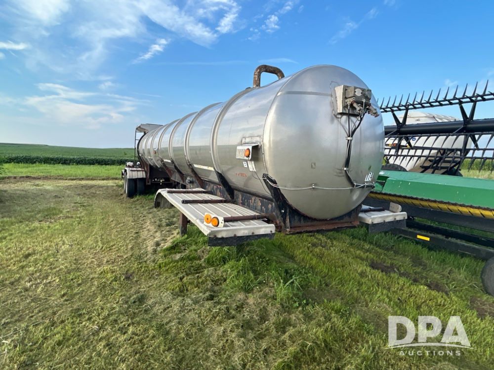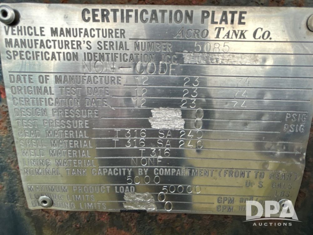 1975 Acro Tank Co Liquid Transport Trailer (LS0349), tandem axle, 5,000 gallon, 50,000lb max product load, John Blue centrifugal pump, super reel hose reel, Honda GX390 gas engine, 11r22.5 tires, spring suspension.