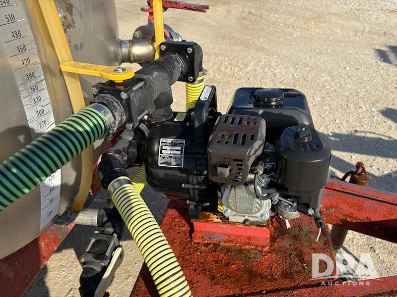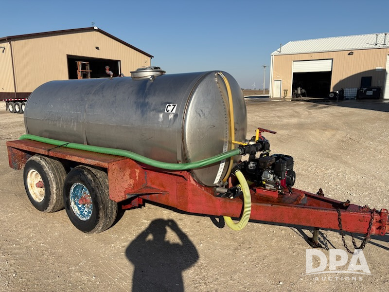 Stainless Steel Liquid Nurse Trailer (MN1224, Unit C-7), 1,000 gallon stainless steel liquid nurse tank, Briggs 3.5 gas engine, Pacer pump, tandem axle gear, 11L-15 flotation tires.