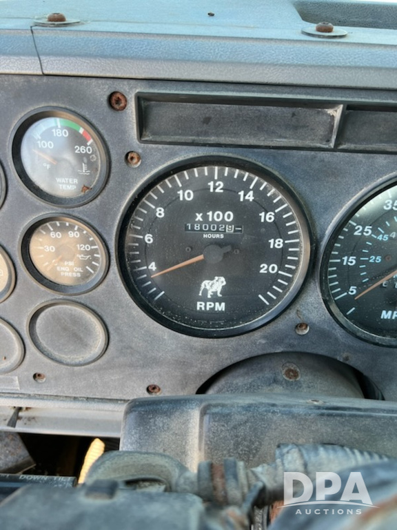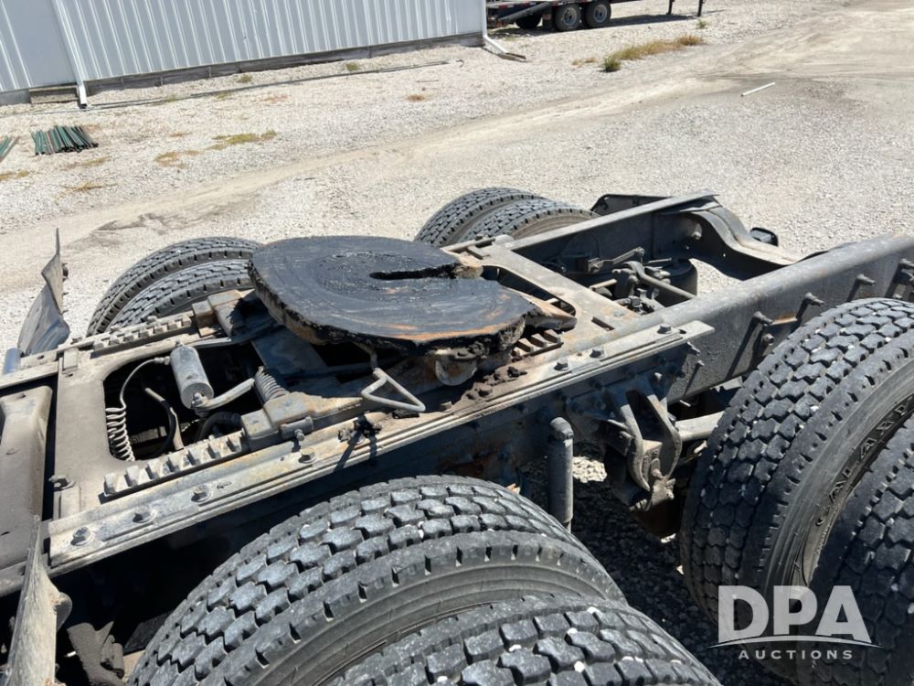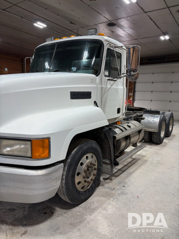 1997 Mack CH613 Truck (MN1225, Unit 37), Mack E7 diesel engine, 9 speed transmission, heat, air conditioning, Am/Fm radio, wet kit, manual slide 5th wheel plate, tandem axle, air ride suspension, 295/75R22.5 front tires, 22.5 rear tires, 438,620.0 miles, shows 18,002.9 hours.