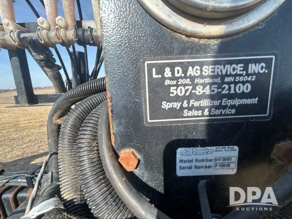 Demco Side Dress Bar (LLD1676), 12/16 row, 11/17 3 point, 3 sections, float sensors, one year old hydraulic pump, shields coulter set up, nitrogen sealing systems, closing system.
