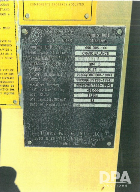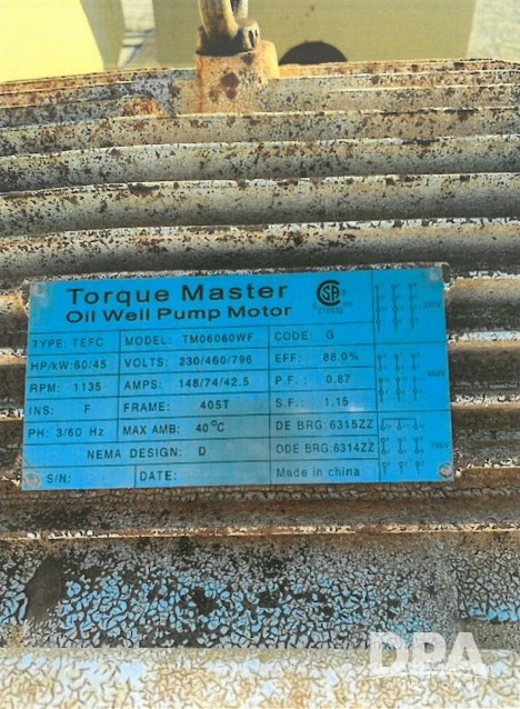 Trinity 456-305-144 Oil Pumping Unit (JM760), Torgue Master 60hp electric motor, crank balance, 83 gallon oil capacity.