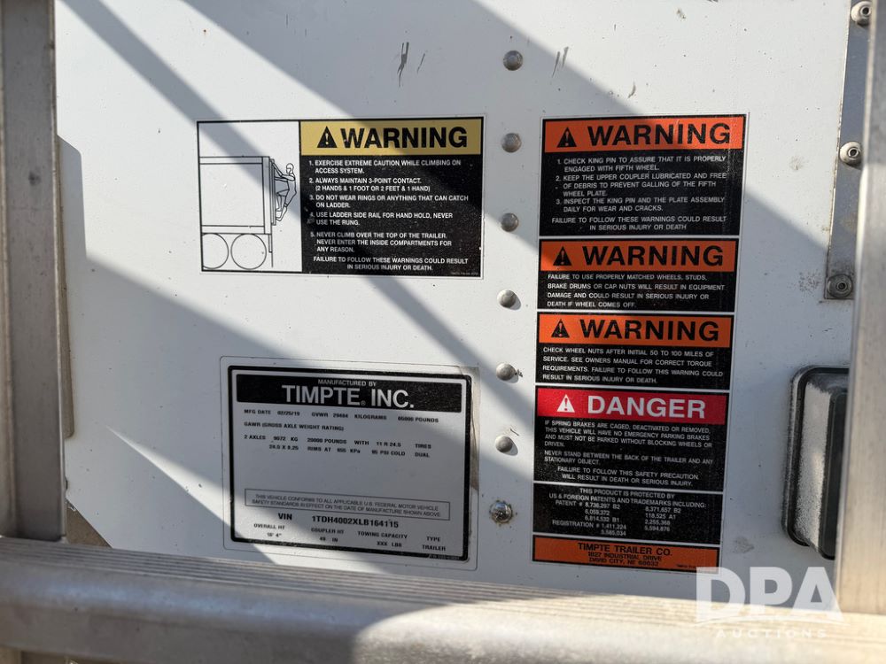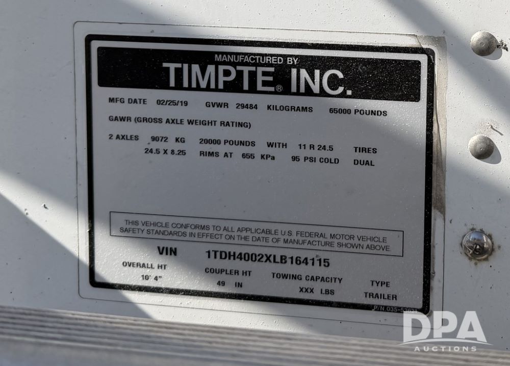 2020 Timpte Supper Hopper Grain Trailer (ED5449), model 4066, 40' long, aluminum hopper, air ride suspension, electric Thunder 7000 Control on a newer tarp, electric EZ flow gates, 11R24.5 tires.