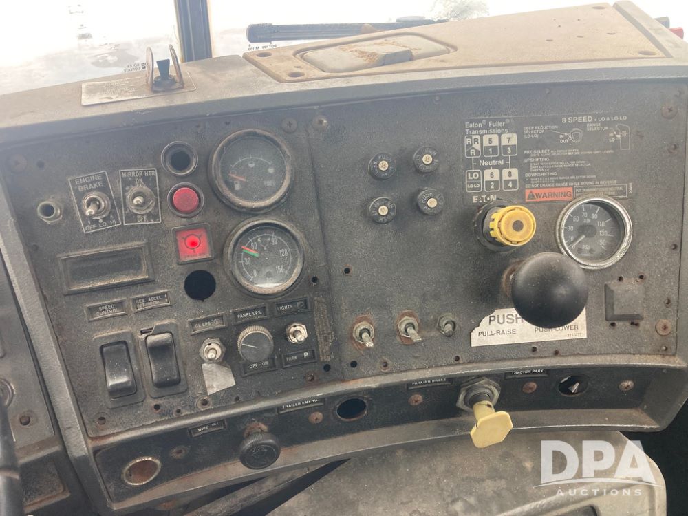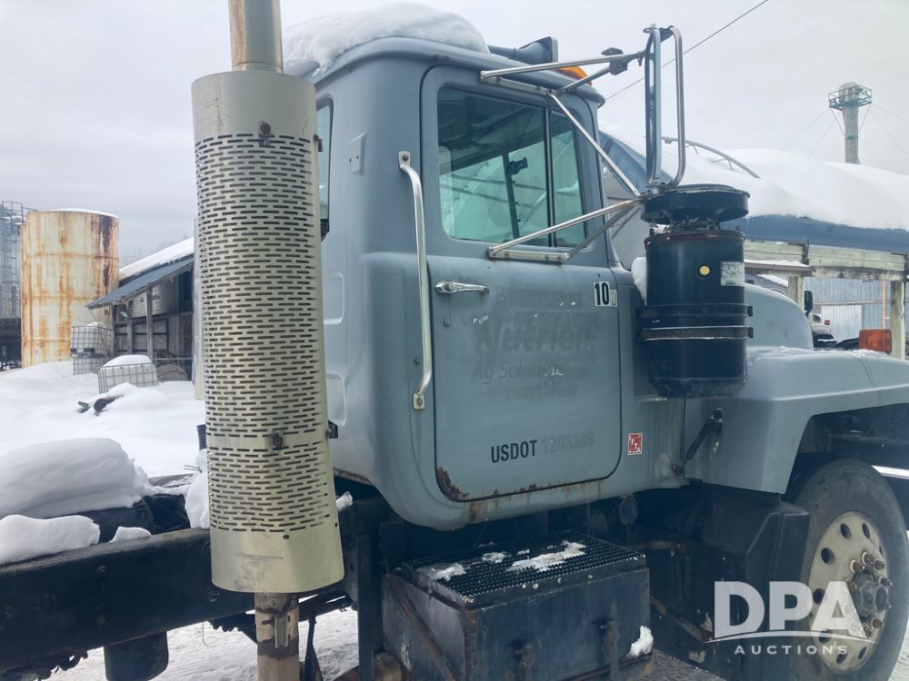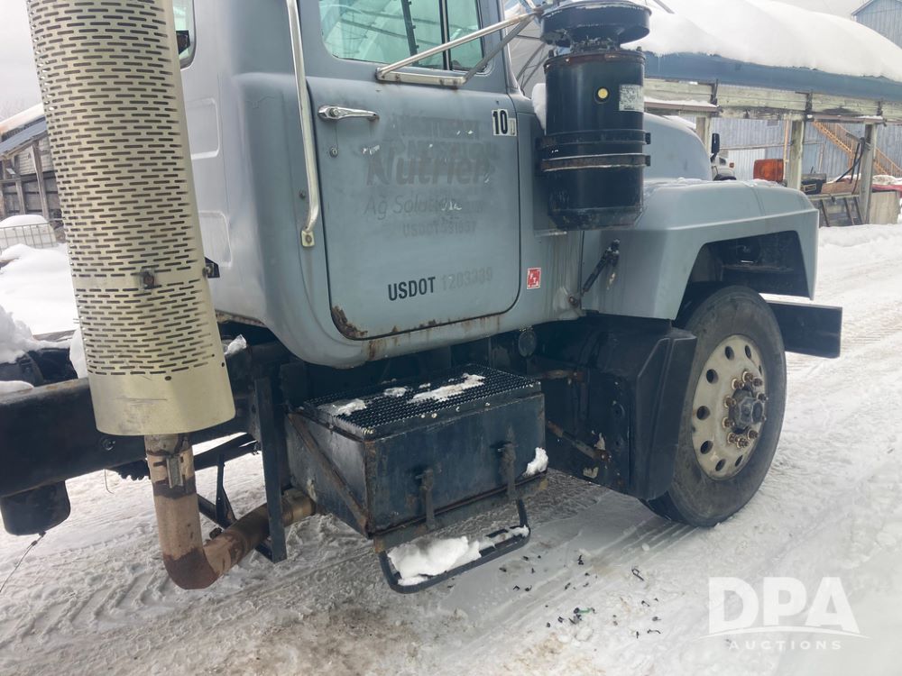 1999 Mack RD688S Truck (PZ14462, Unit 126373), Mack diesel engine, Eaton Fuller 8 speed +LO & LO-LO transmission, heat, Am/Fm radio, cruise control, engine brake, tandem axle, full screw, pusher axle, 11R22.5 tires, shows 324,628 miles.