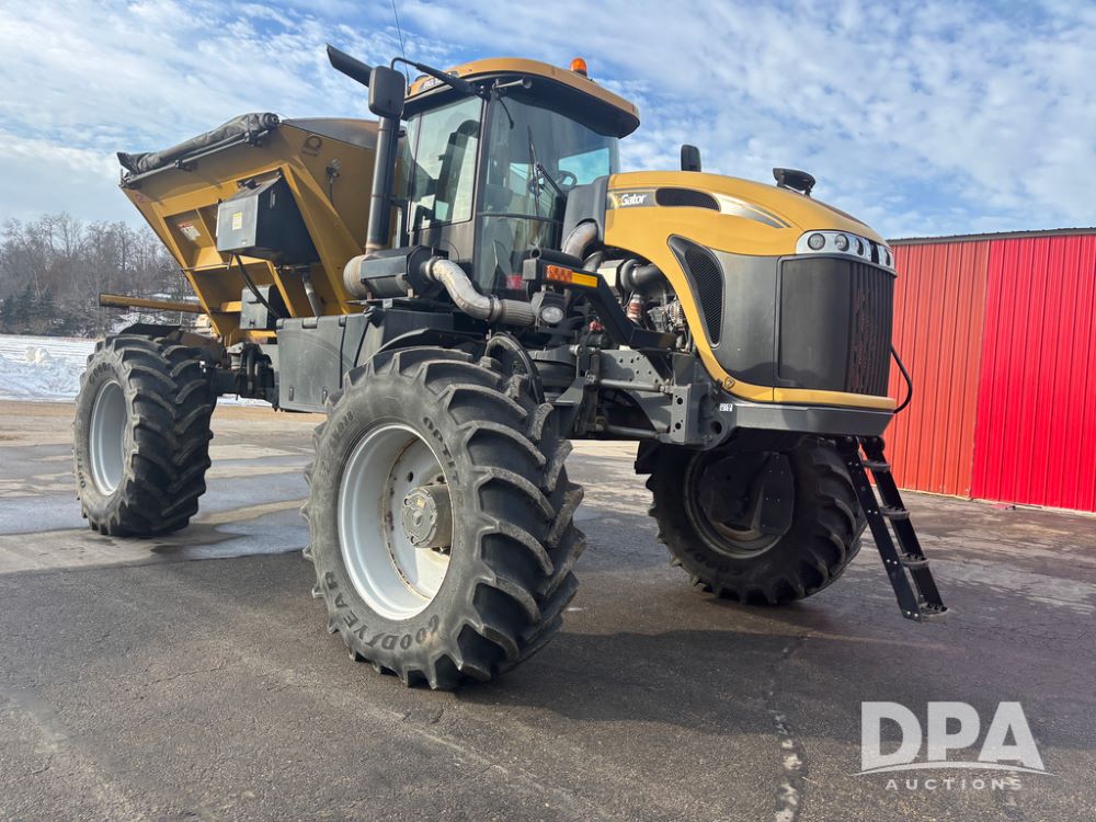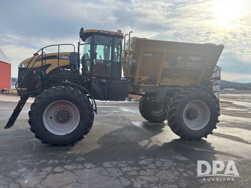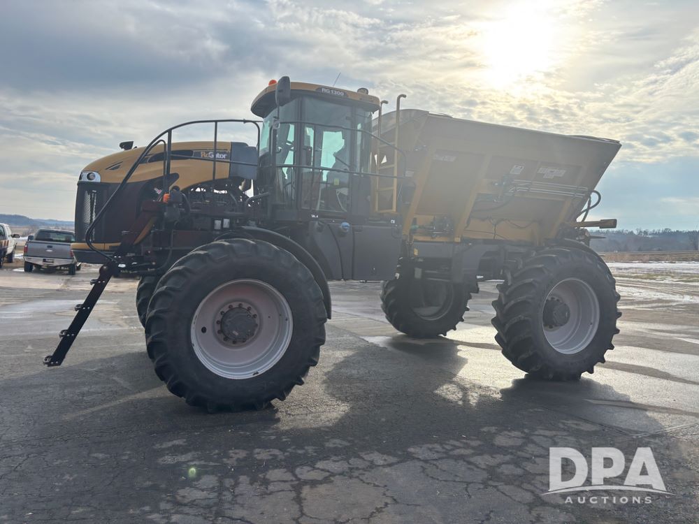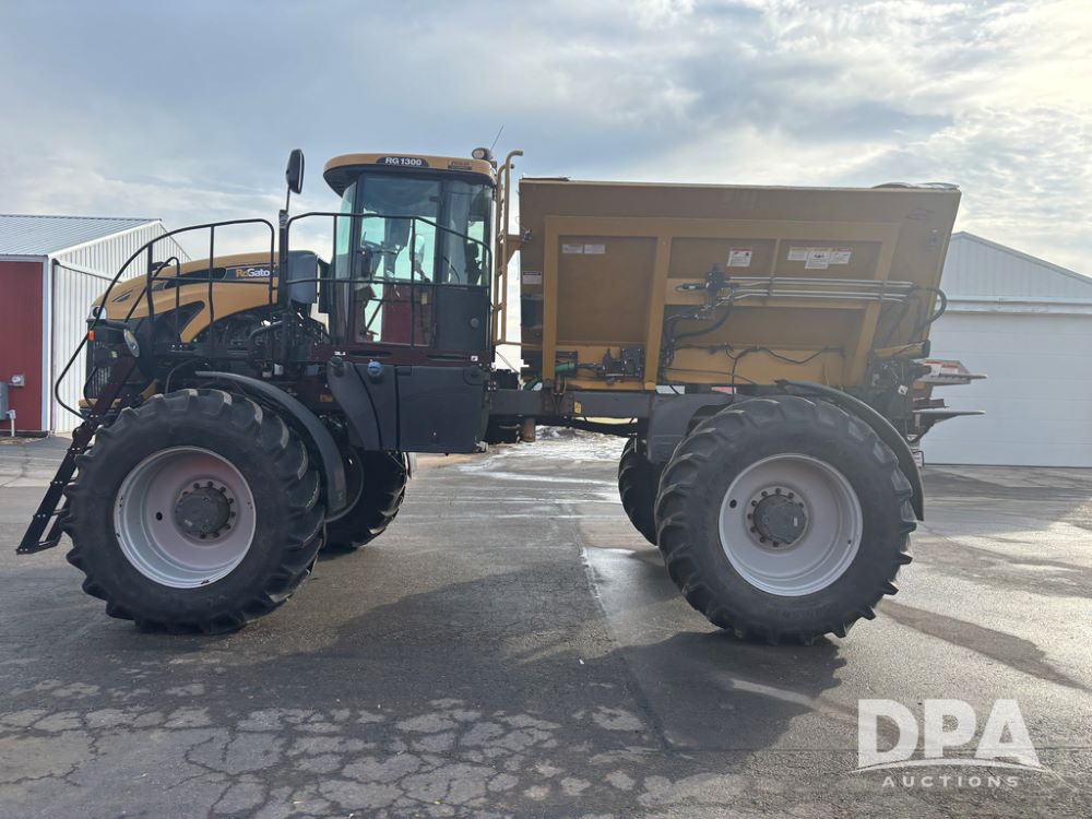 2013 RoGator 1300 Dry Machine (DR13194), diesel engine, hydrostatic drive, New Leader L3020 G4 stainless steel hydraulic dry spinner box, belt/chain, roll over tarp, Raven Viper Pro controller, light bar, Am/FM CD radio, cab heat/air conditioning, both sets of tires, 380/90R46 row crop tires and 650/65R38 float tires that are near new, shows 2,707 hours.