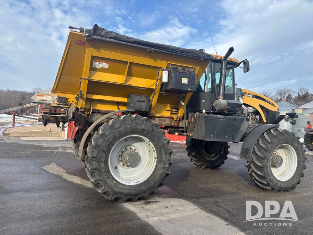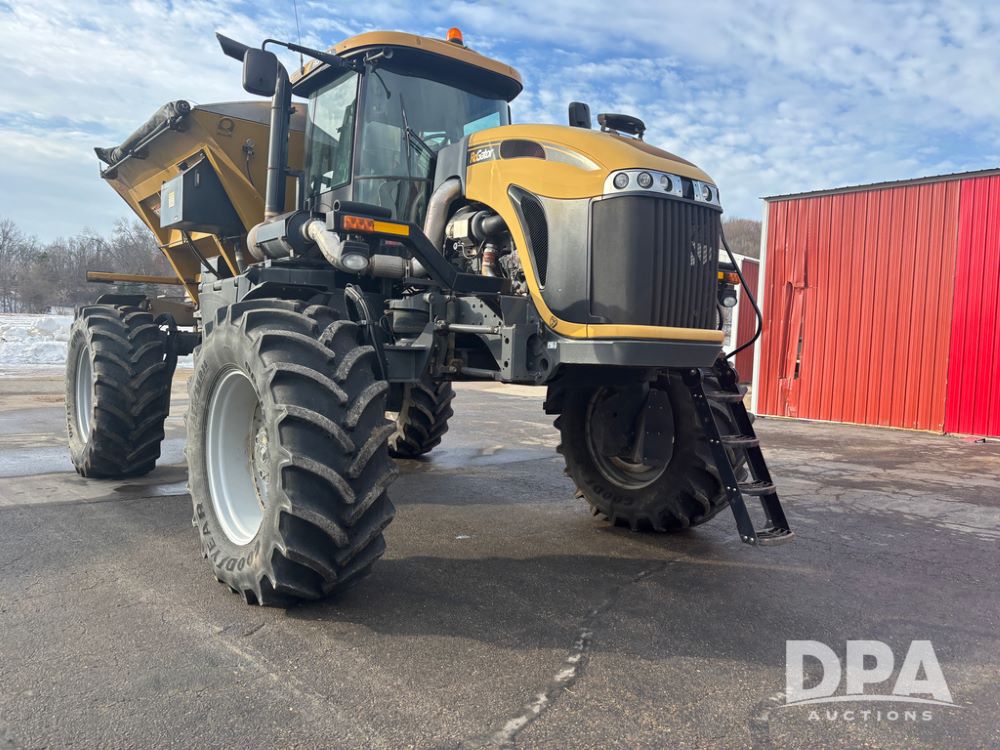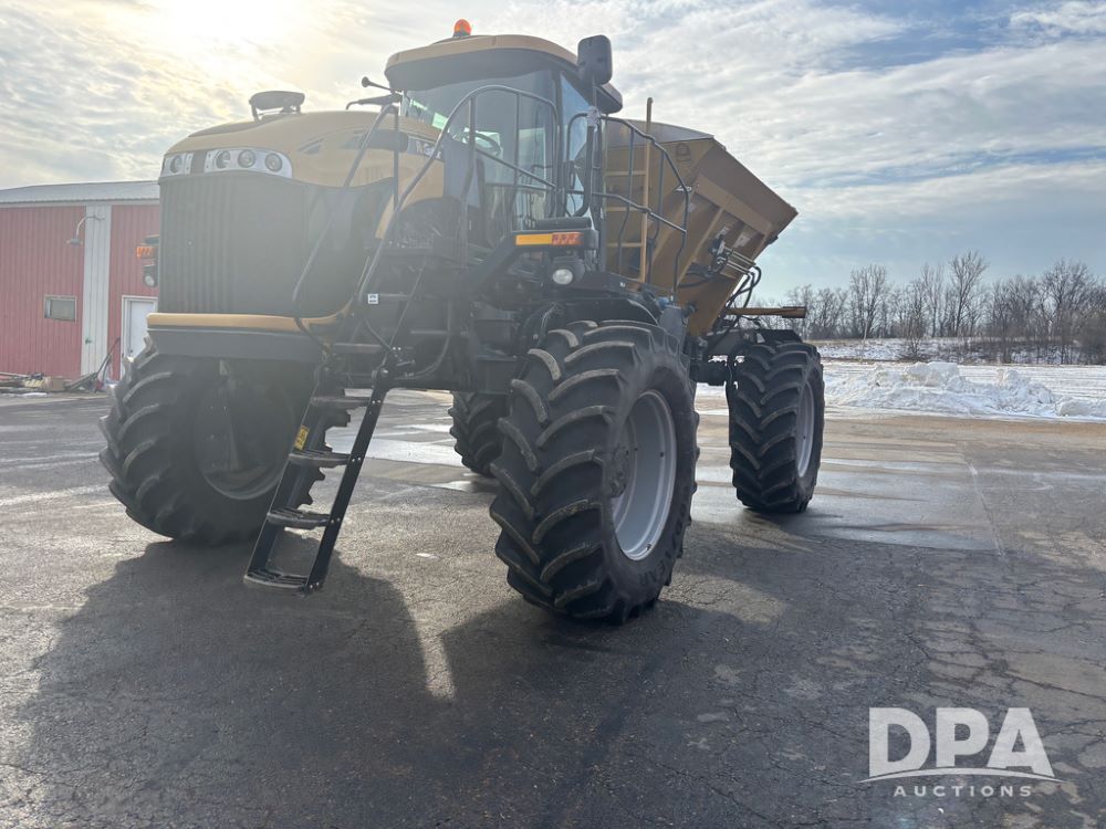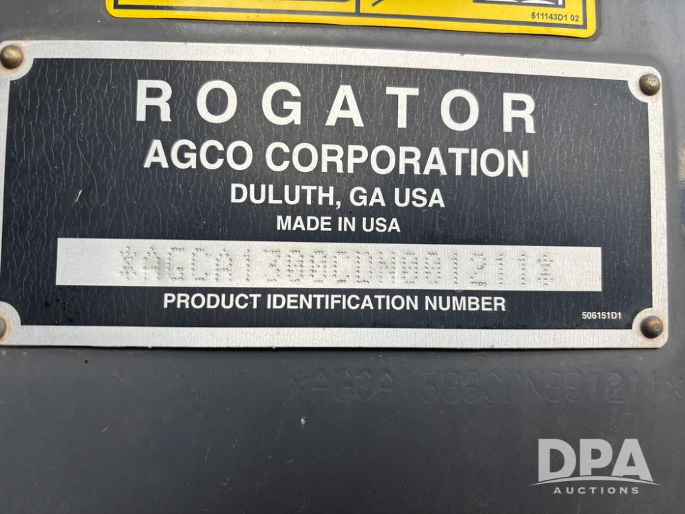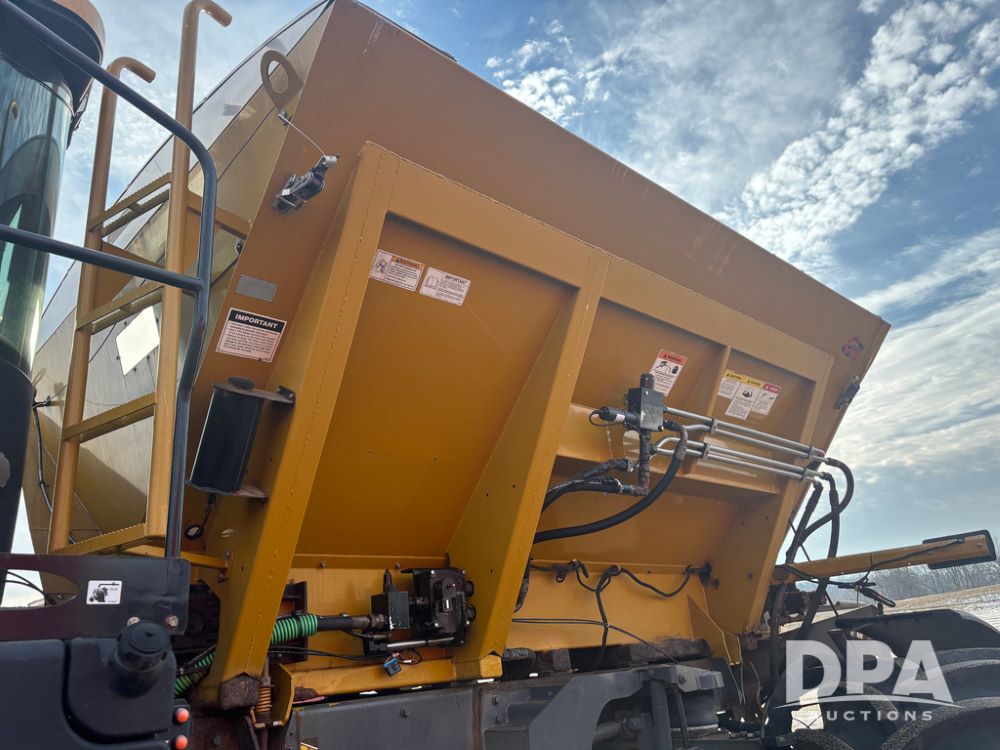 2013 RoGator 1300 Dry Machine (DR13194), diesel engine, hydrostatic drive, New Leader L3020 G4 stainless steel hydraulic dry spinner box, belt/chain, roll over tarp, Raven Viper Pro controller, light bar, Am/FM CD radio, cab heat/air conditioning, both sets of tires, 380/90R46 row crop tires and 650/65R38 float tires that are near new, shows 2,707 hours.