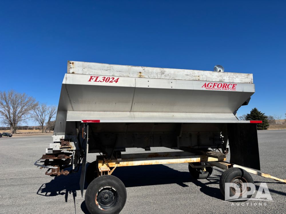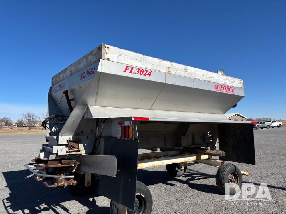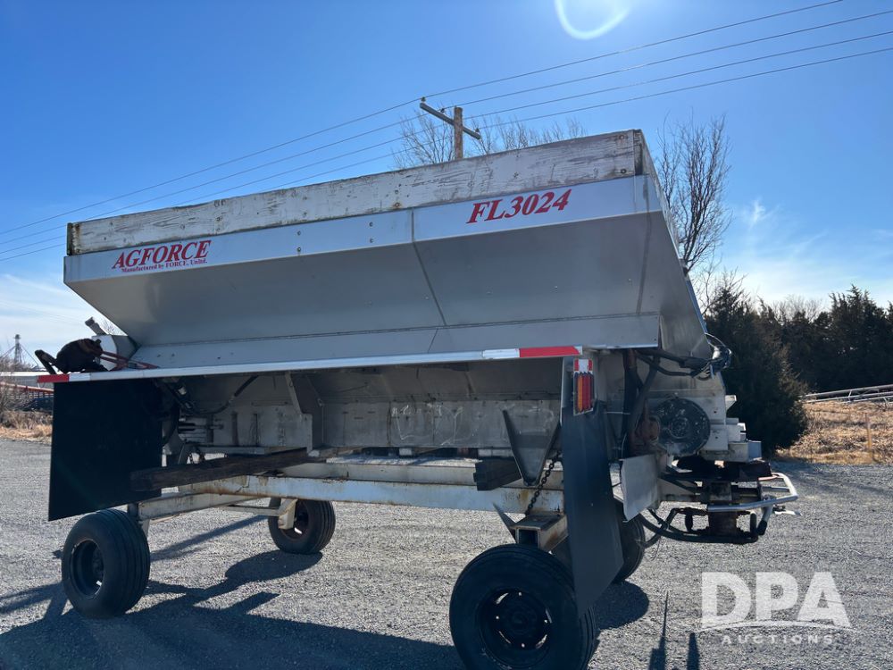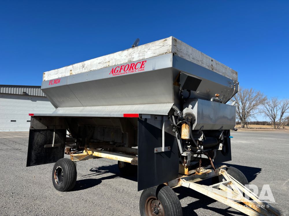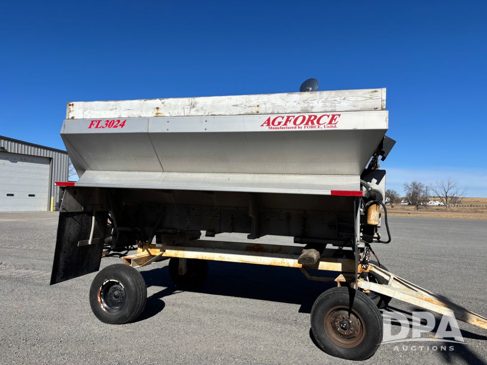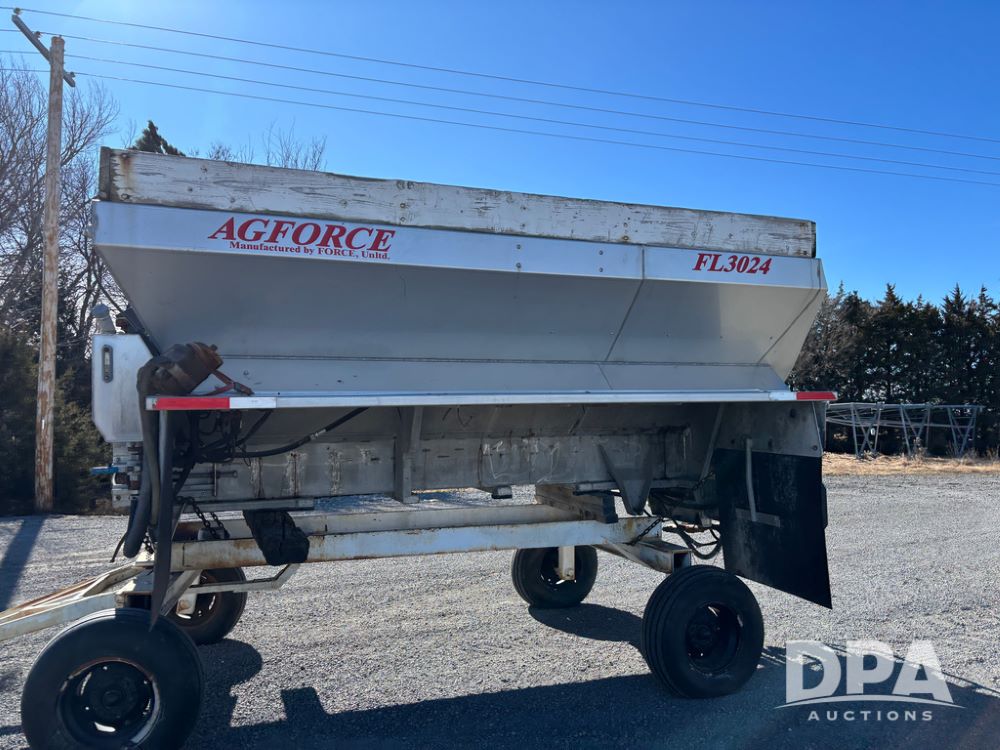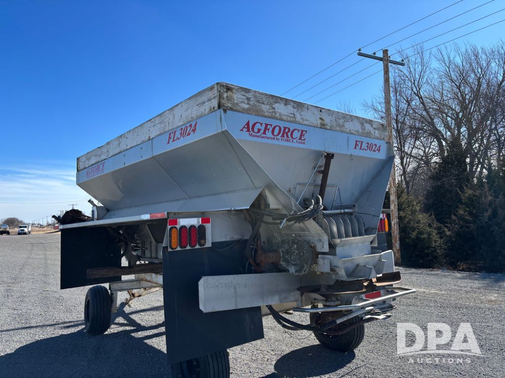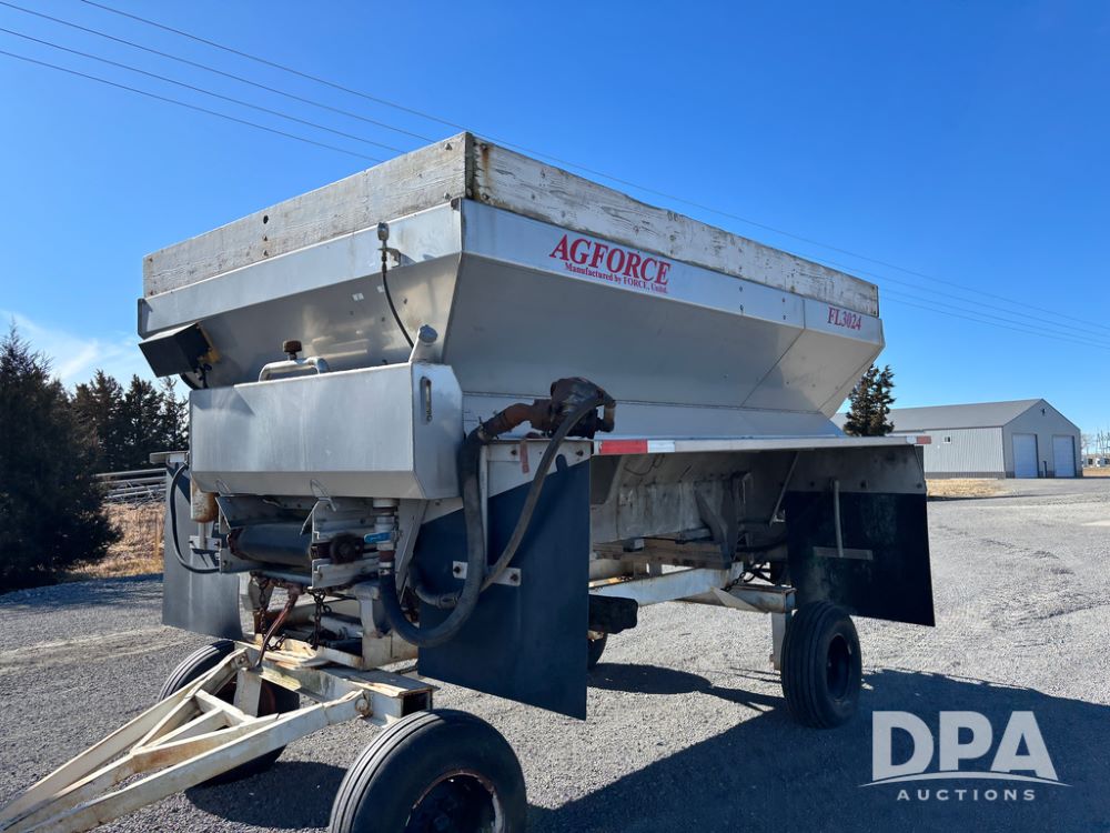 Ag Force Spinner Box (DR13200), model FL3024 stainless steel dry spinner box, PTO hydraulic pump, side extensions.