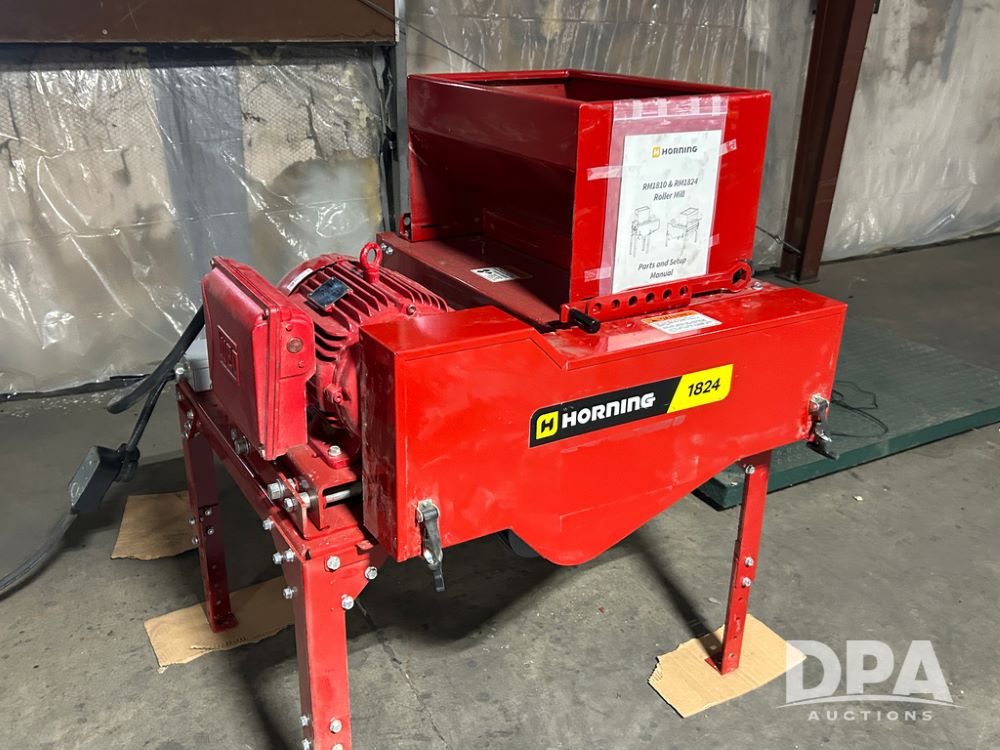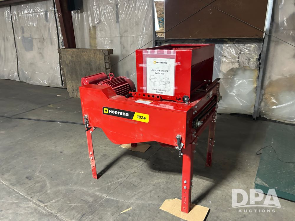 Horning 1824 Roller Mill (CP1611), Brand New, unused, model 1824, 24in electric stationary roller mill with 10HP motor and 10 cut blades, 300 bushels per hour capacity.