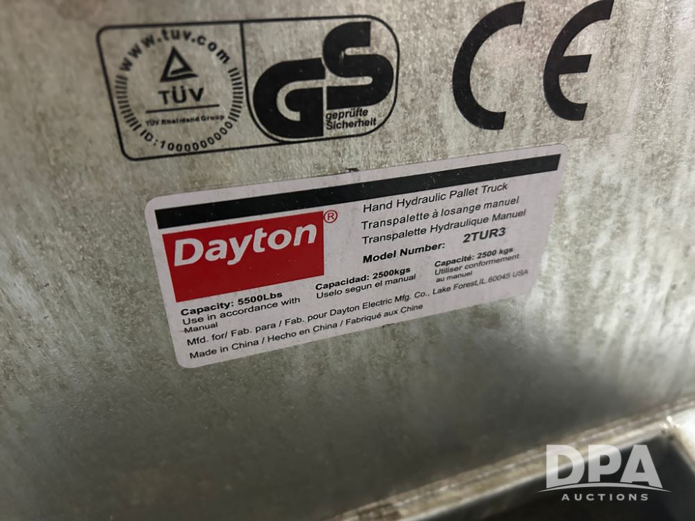 Dayton Hand Hydraulic Pallet Truck (CP1617), model 2TUR3, 5,500 lb. capacity.