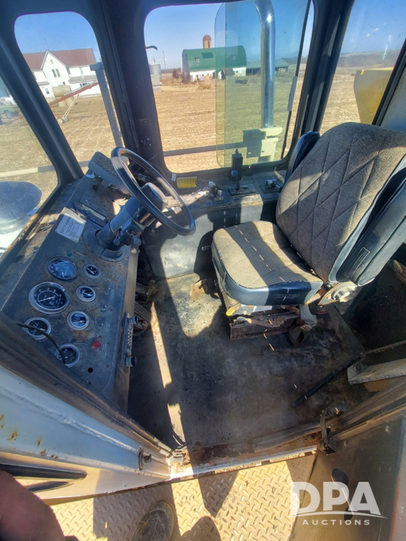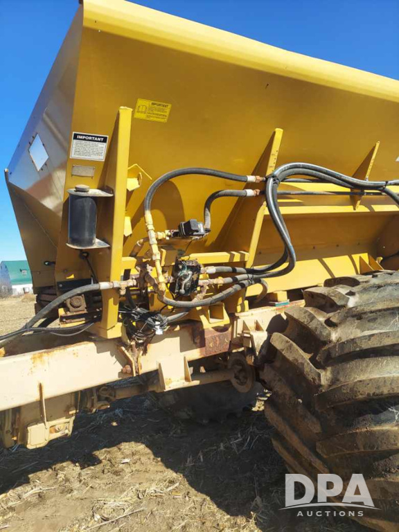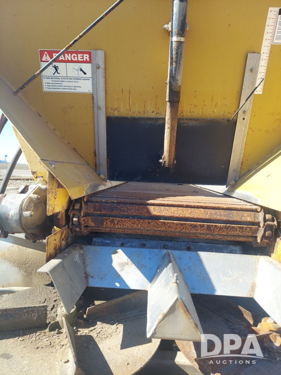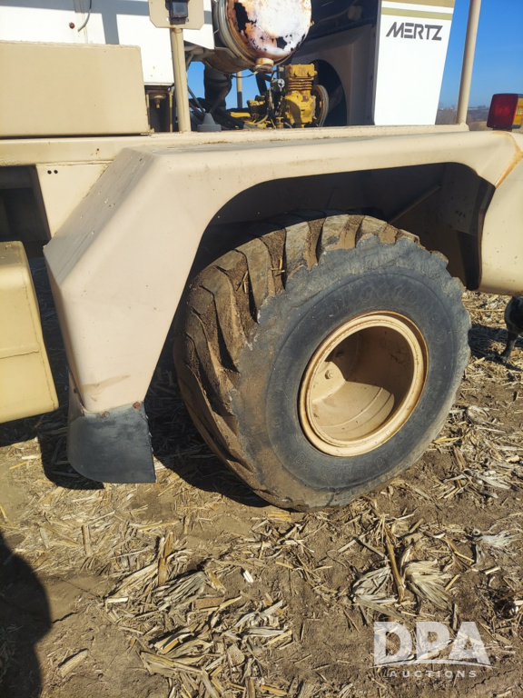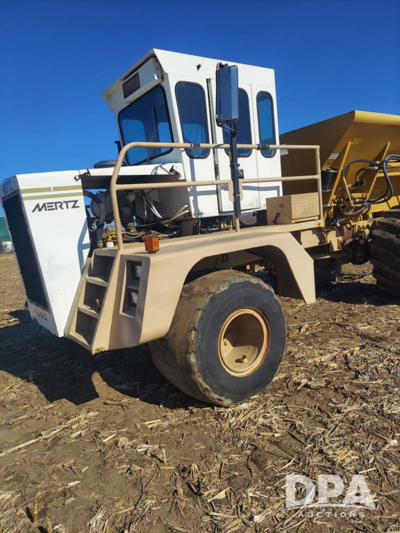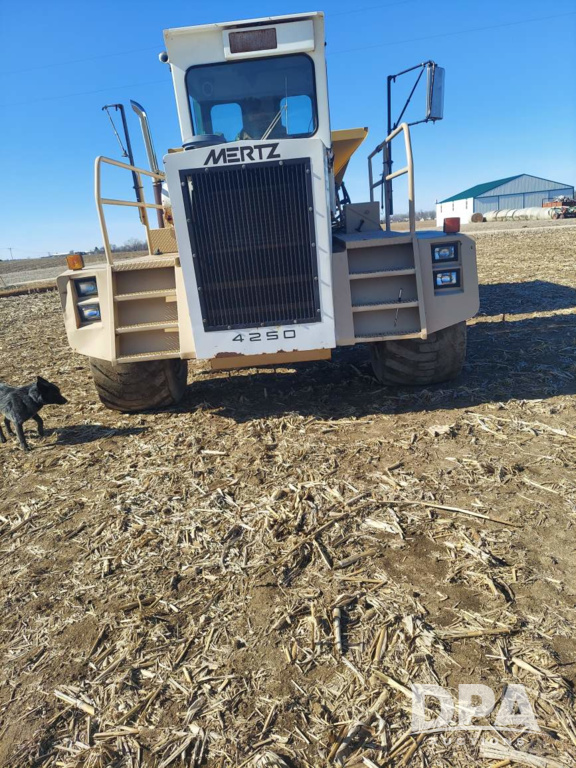 Mertz 4250 Dry Spreader Machine (PD5504), Cat 3208 turbo diesel engine, automatic transmission, air conditioning, heat, AM/FM radio, New Leader stainless steel dry bed, dual spinner, 66X43.00-25 rear tires, 48X31.00-20 front tires, Raven wired for Viper Pro, 20,569 miles, 4563 hours.