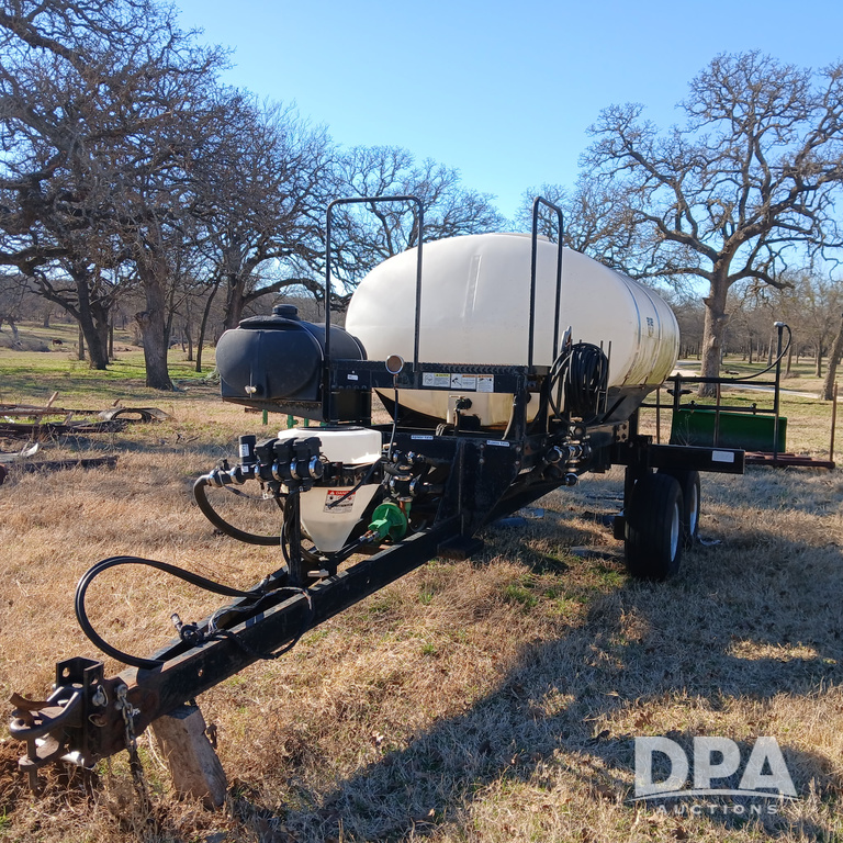 Wiley Sprayer (LLD1679), Wiley boomless sprayer, 30 foot path, nozzles, retractable wand, nozzles, hydraulic driven, approx. 500 gallon tank, 50 gallon rinse water reserve tank.