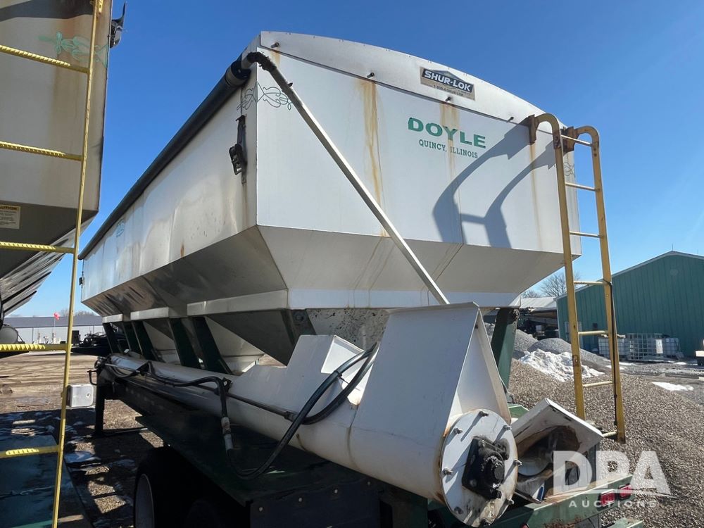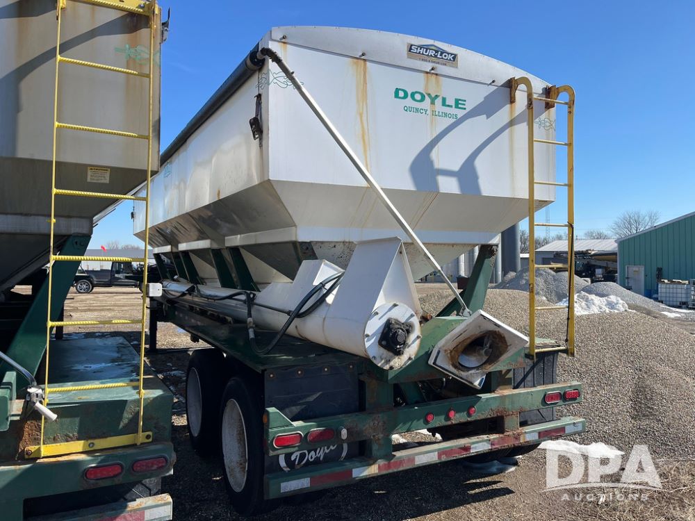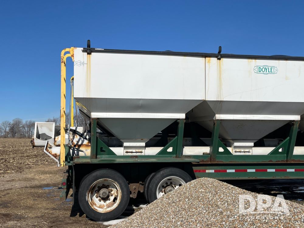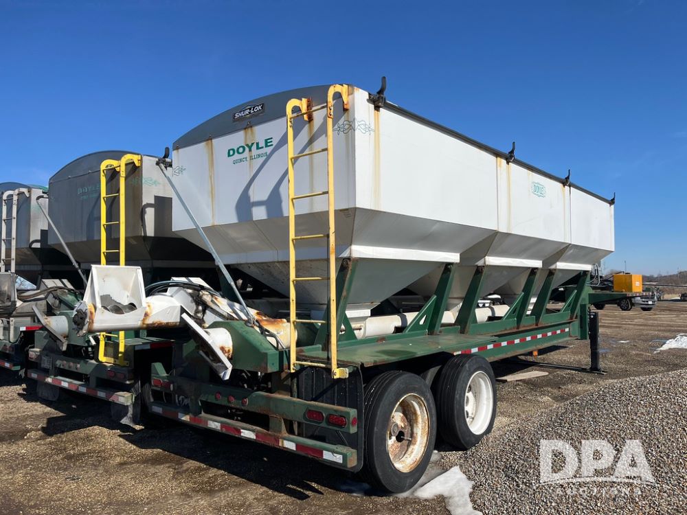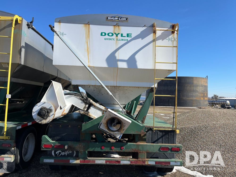 2010 B-B Dry Tender Trailer (JN3979), 2010 Doyle dry fertilizer box, 6 compartment tender, rear auger unload, Shur-Lok tarp, Pony motor (may need new starter but does start), NEW brakes, hydraulic lines, fuel lines, control panel, wiring harness, alternator, tandem axle, 255/70R22.5 tires, shows 229 hours.