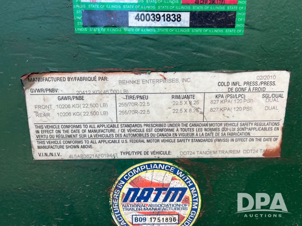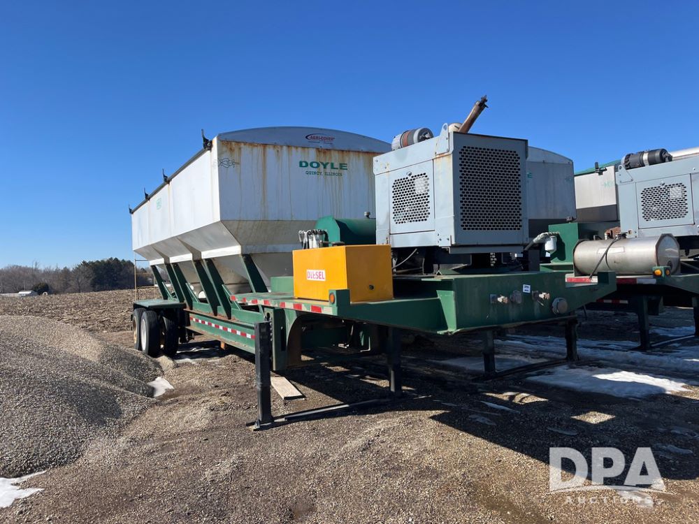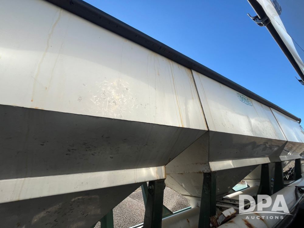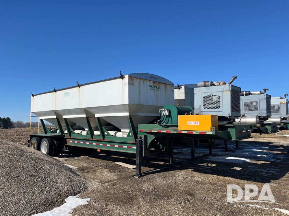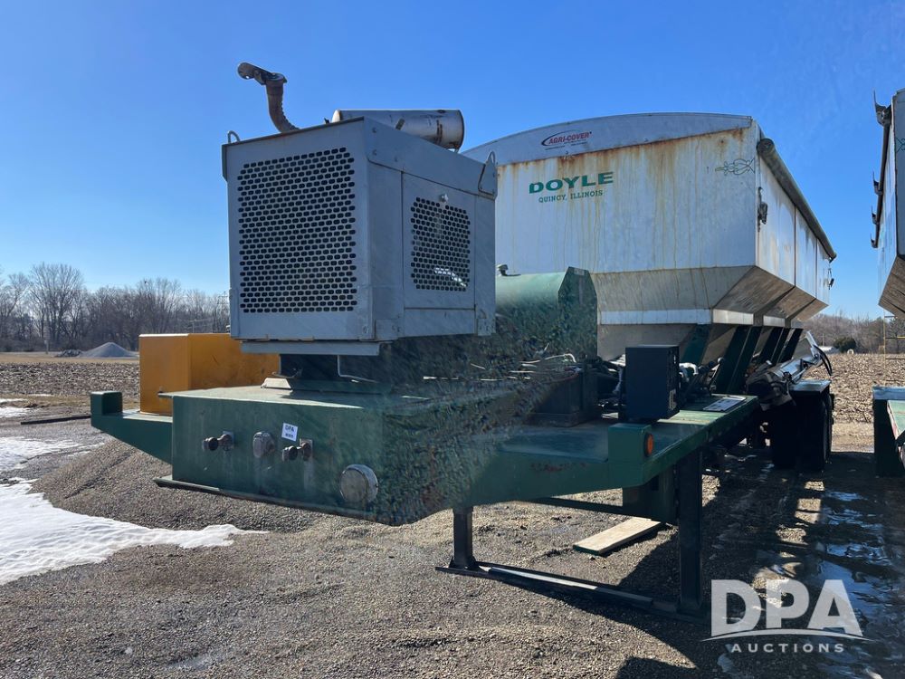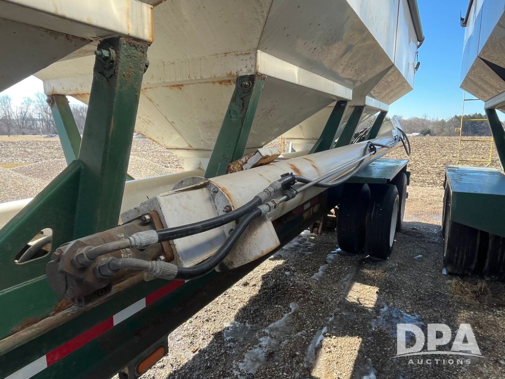 2010 B-B Dry Tender Trailer (JN3979), 2010 Doyle dry fertilizer box, 6 compartment tender, rear auger unload, Shur-Lok tarp, Pony motor (may need new starter but does start), NEW brakes, hydraulic lines, fuel lines, control panel, wiring harness, alternator, tandem axle, 255/70R22.5 tires, shows 229 hours.