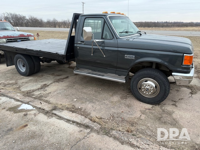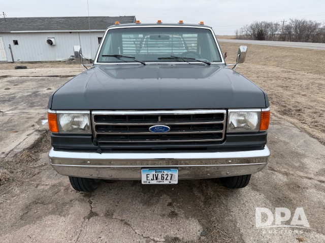 1990 Ford Super Duty Pickup (JN3805), 7.3L diesel engine, flatbed, shows 2,766 miles.