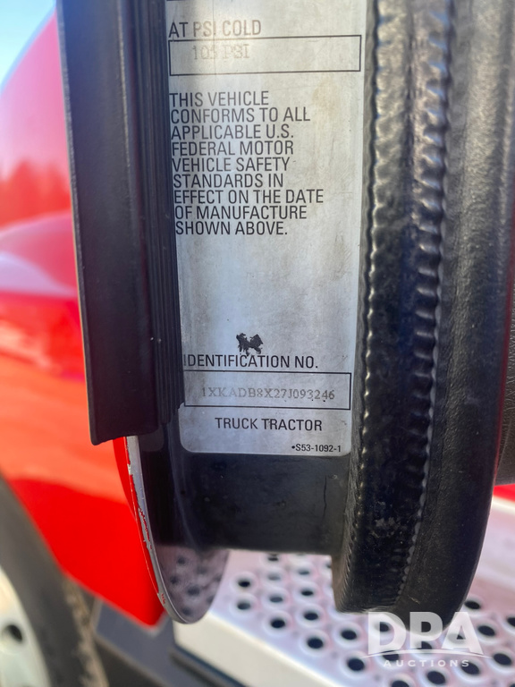 2007 Kenworth T-600 (CG462), Cat C-15 diesel engine, 13 speed Eaton Fuller transmission, tandem axle, AC, heat, Am/Fm radio with cd player, air ride, 5th wheel plate, shows 1,385,901 miles.