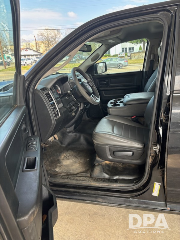 2018 Dodge Ram 1500 Pickup (NJP502), 3.6L V6 gas engine, auto transmission, 4wd, crew cab, cruise control, power door locks, power windows, power mirrors, vinyl bucket seats with smart console, heat/ac, am/fm radio, shows 136,273 miles.