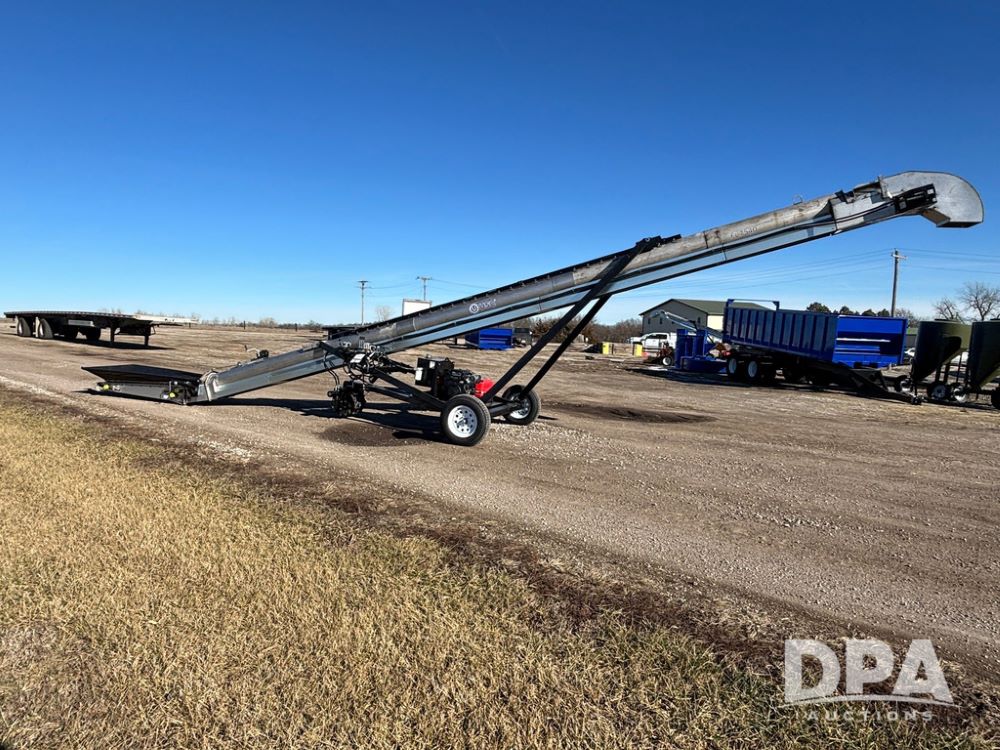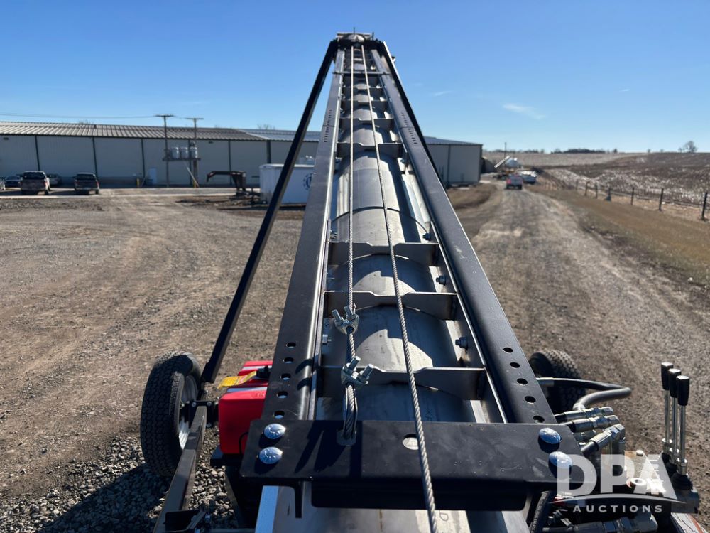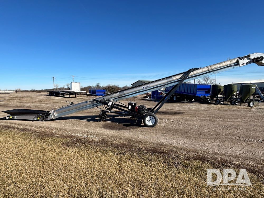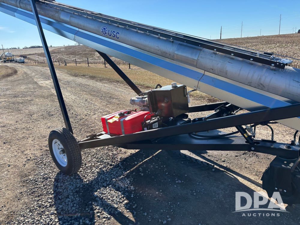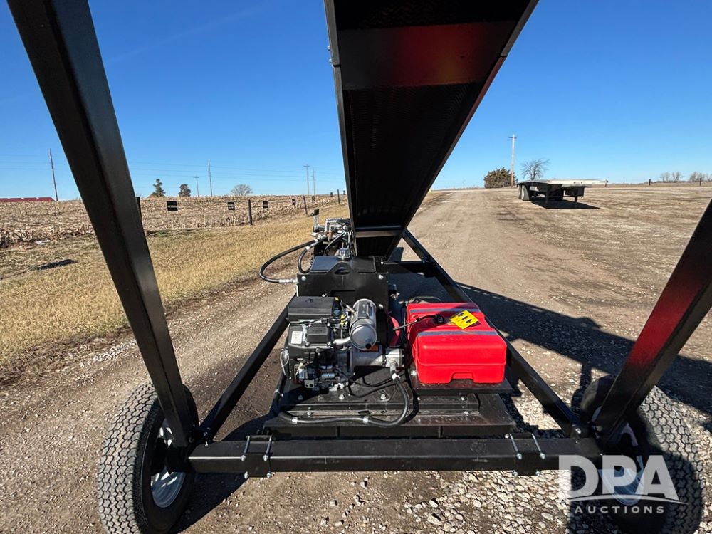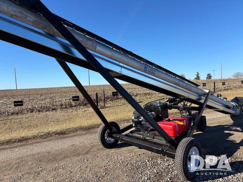 2026 USC FL75M40S00UC Stainless Steel Self-Moving Conveyor w/ NEW Kohler 25HP EFI Motor (NP6527), NEW, Latest 25 HP Kohler EFI Configuration with Improved Cold Weather Starting, Gas Powered Hydraulic Pack, 40' Long, 12" 12-Gauge Stainless Steel Tube, 15" Chevron Belt, Carbon Steel Construction (Stainless Tube Only), 1.5" Dodge Bearings, Standard A-Frame Undercarriage, Self-Mover with Directional Control, Collapsible Inlet Hopper, ST205/75D15 Tires, Jack Stand.