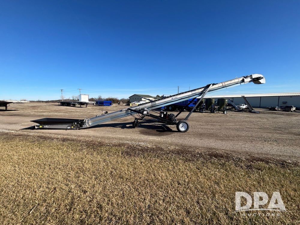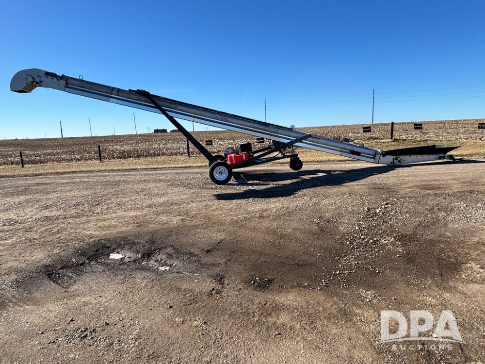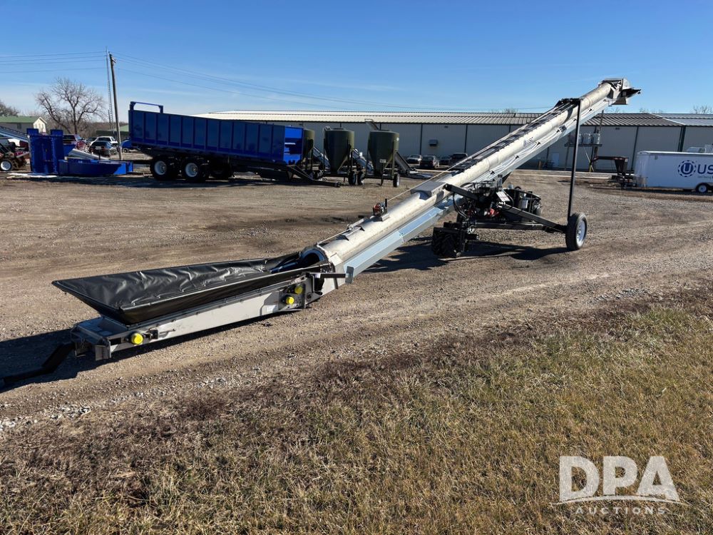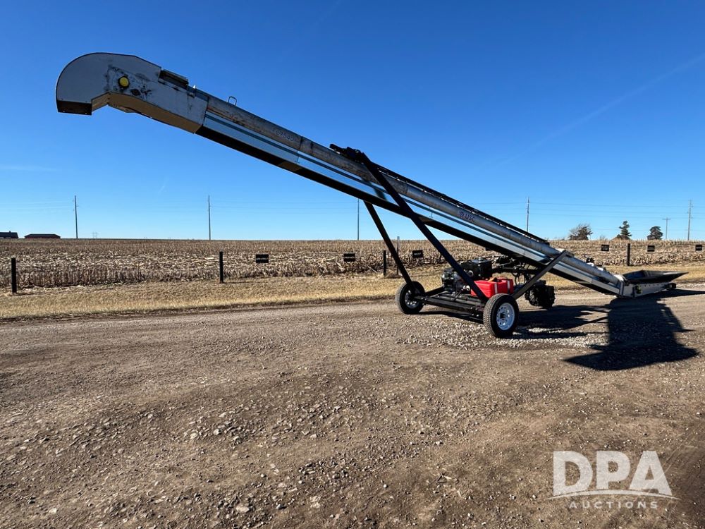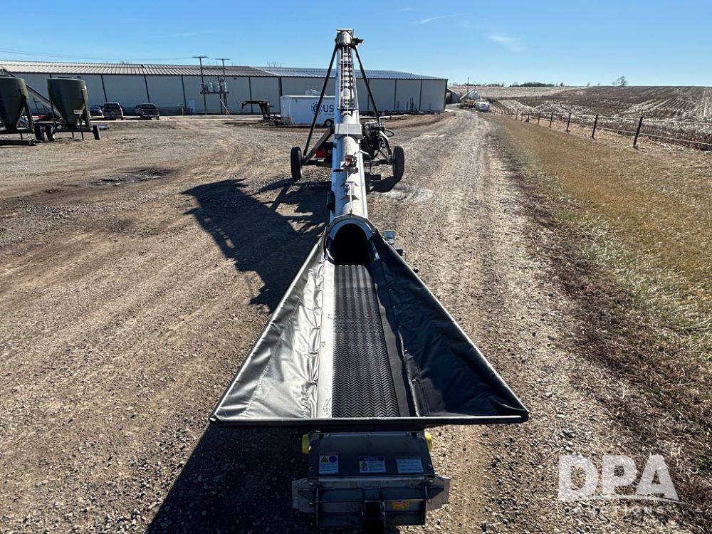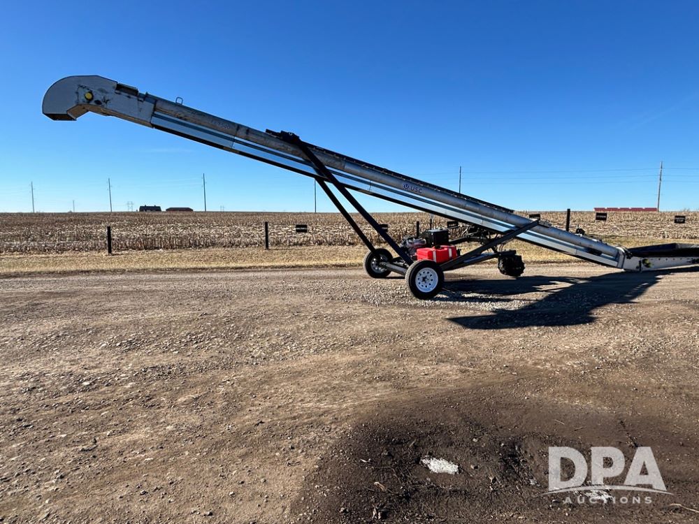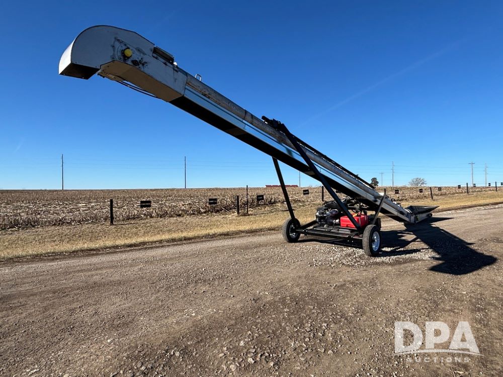 2026 USC FL75M40S00UC Stainless Steel Self-Moving Conveyor w/ NEW Kohler 25HP EFI Motor (NP6527), NEW, Latest 25 HP Kohler EFI Configuration with Improved Cold Weather Starting, Gas Powered Hydraulic Pack, 40' Long, 12" 12-Gauge Stainless Steel Tube, 15" Chevron Belt, Carbon Steel Construction (Stainless Tube Only), 1.5" Dodge Bearings, Standard A-Frame Undercarriage, Self-Mover with Directional Control, Collapsible Inlet Hopper, ST205/75D15 Tires, Jack Stand.