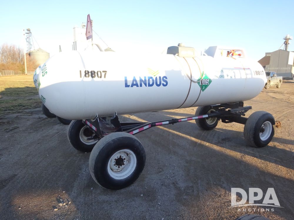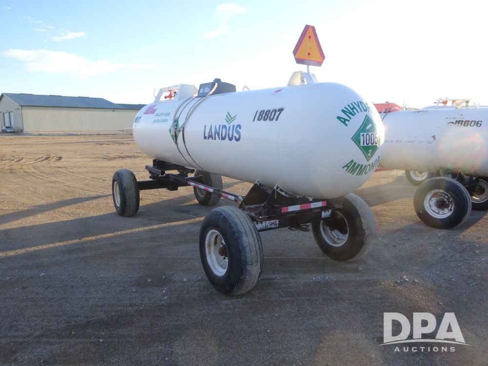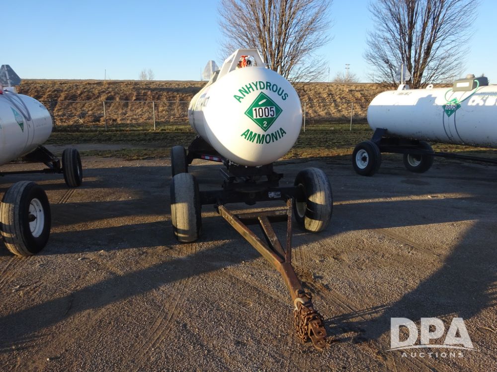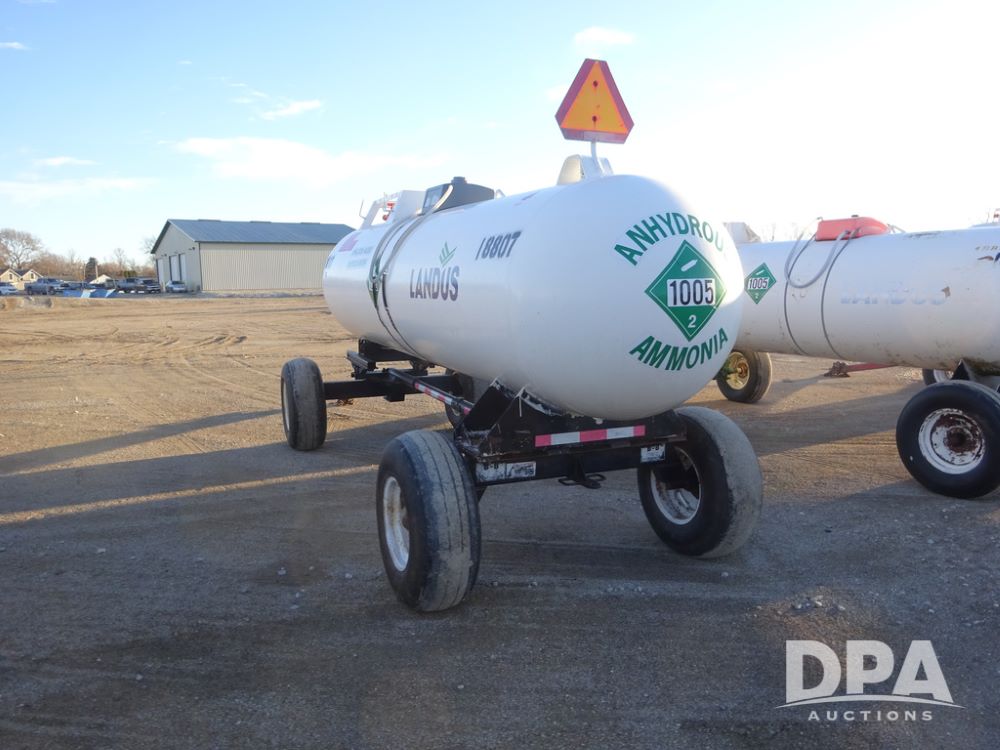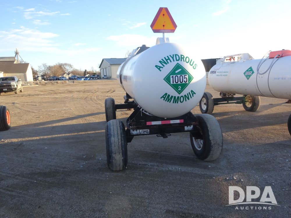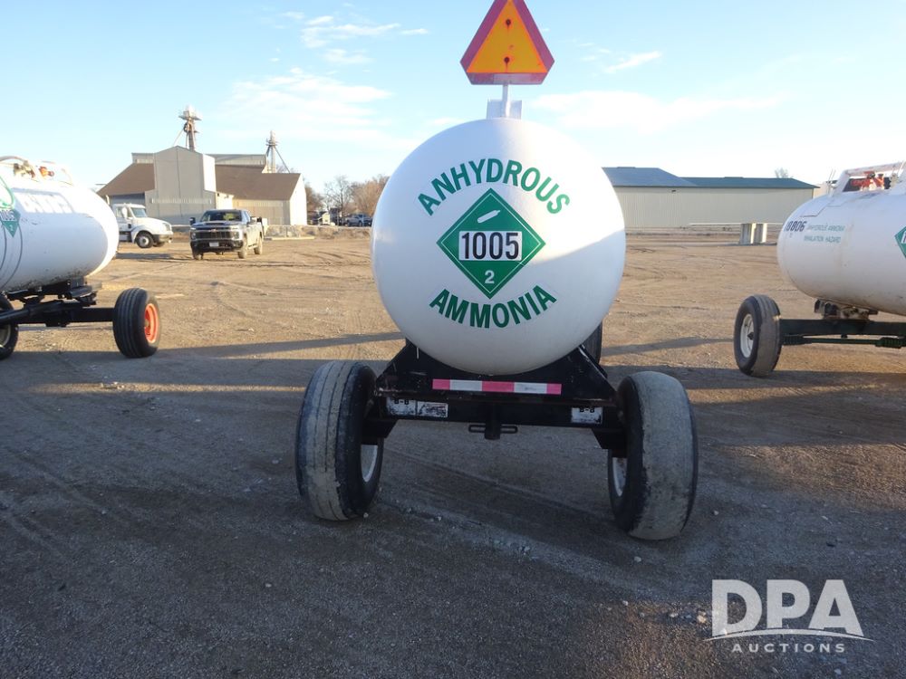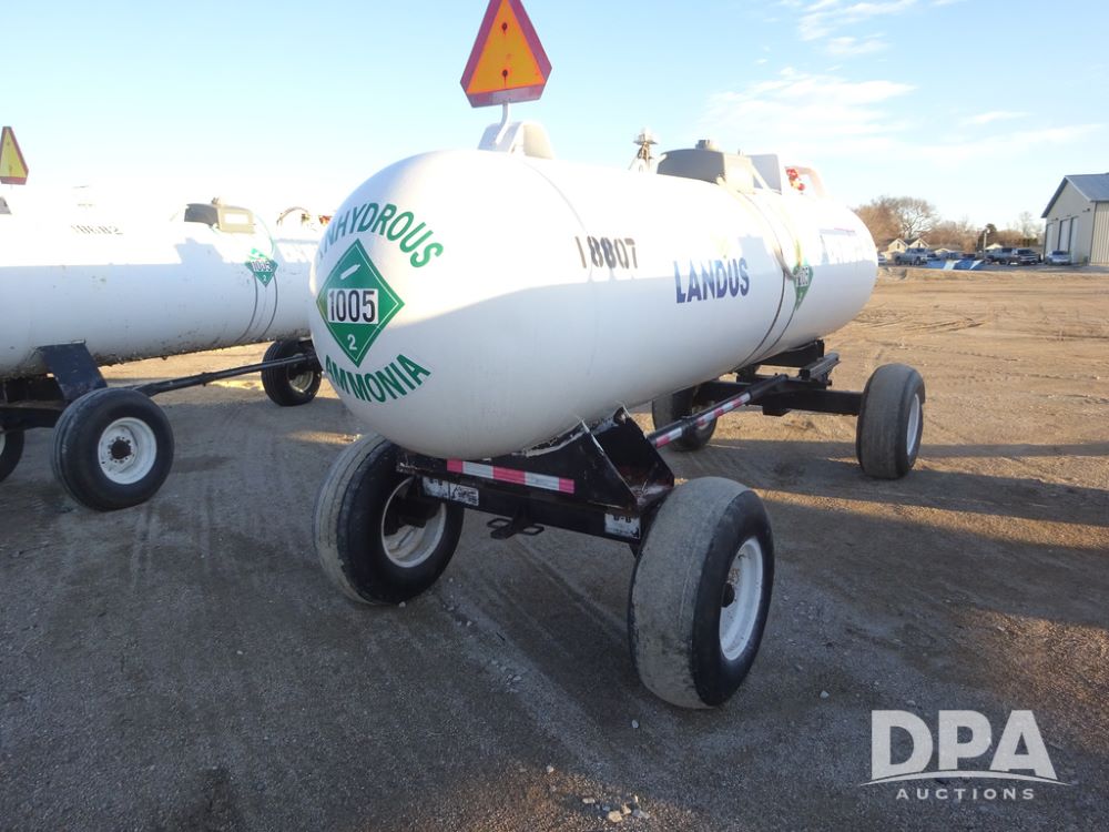 NH3 Nurse Tank (PZ14430, Unit 18807), 1000 gallon NH3 nurse tank, top front fill, poly water tank, data plate, B-B 5th wheel running gear, 12.5L-15 flotation tires.