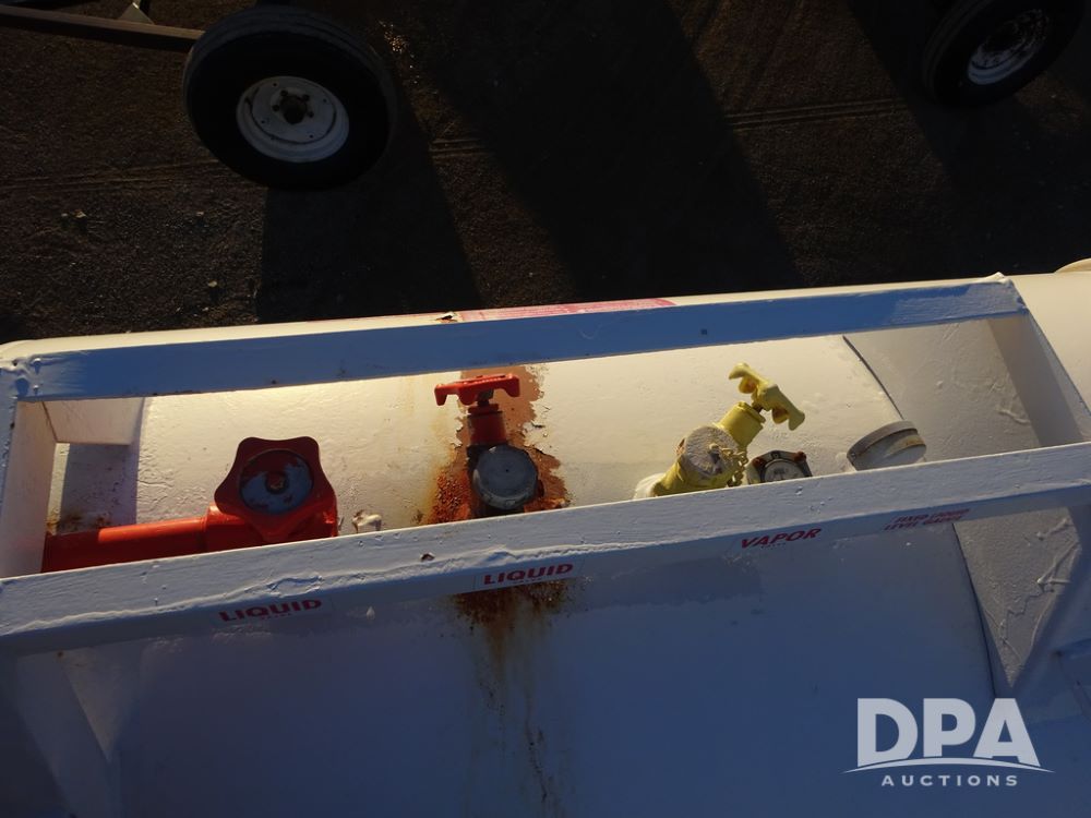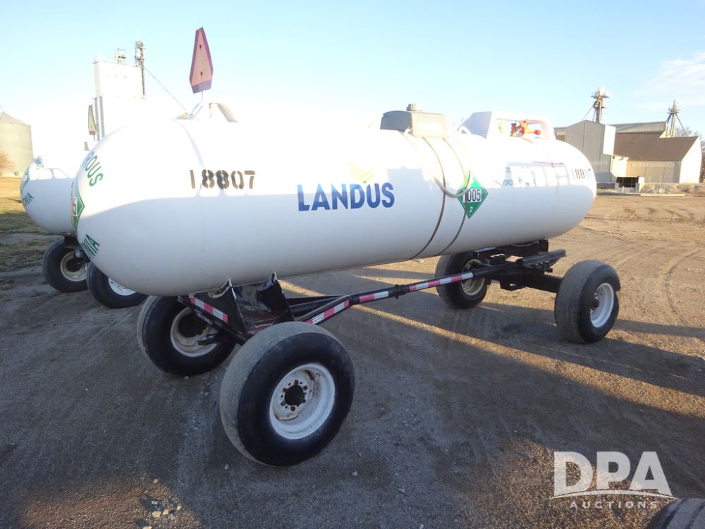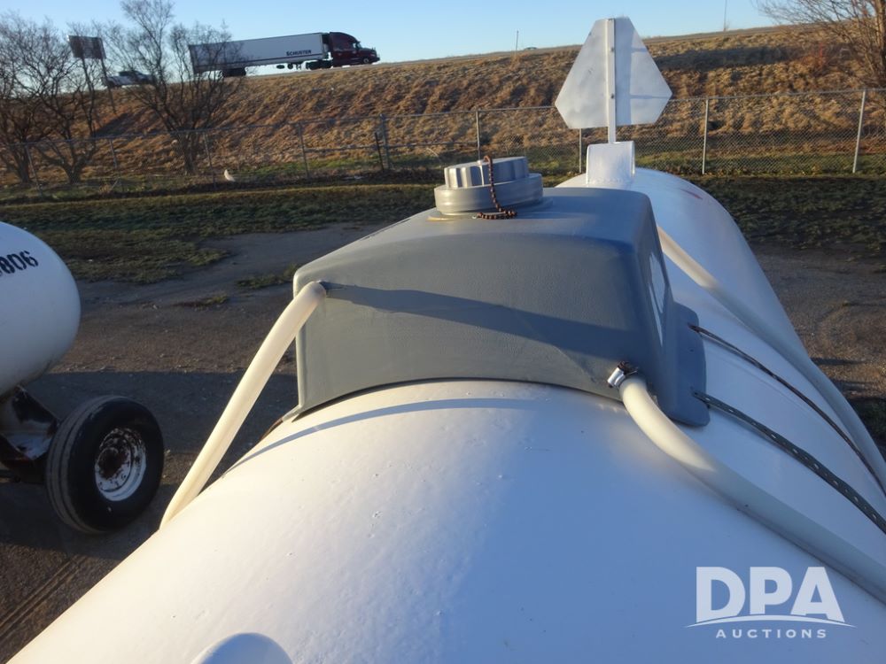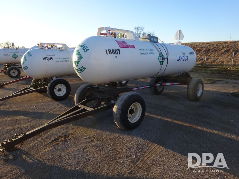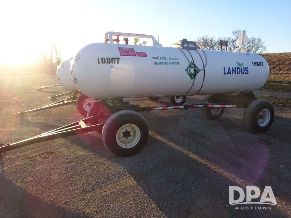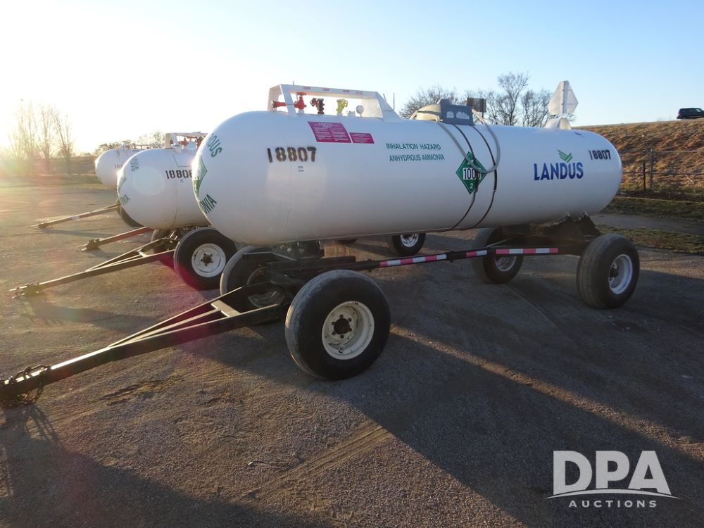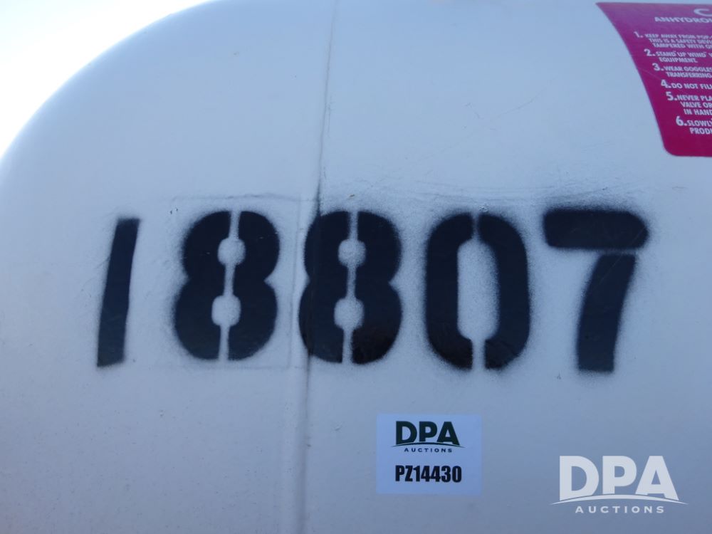NH3 Nurse Tank (PZ14430, Unit 18807), 1000 gallon NH3 nurse tank, top front fill, poly water tank, data plate, B-B 5th wheel running gear, 12.5L-15 flotation tires.