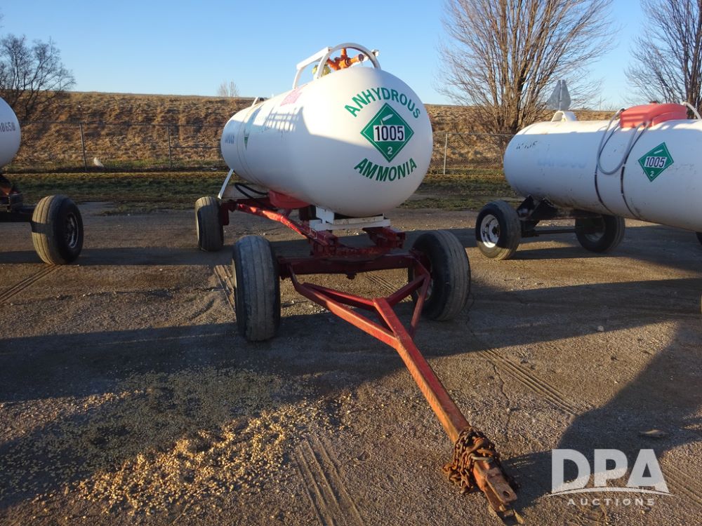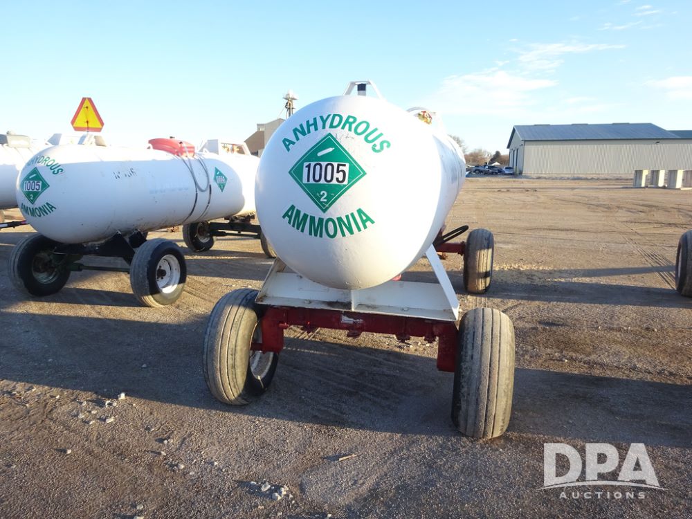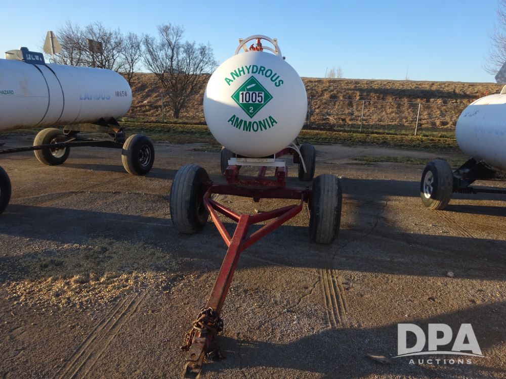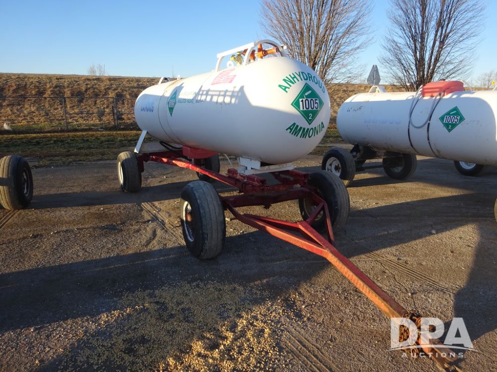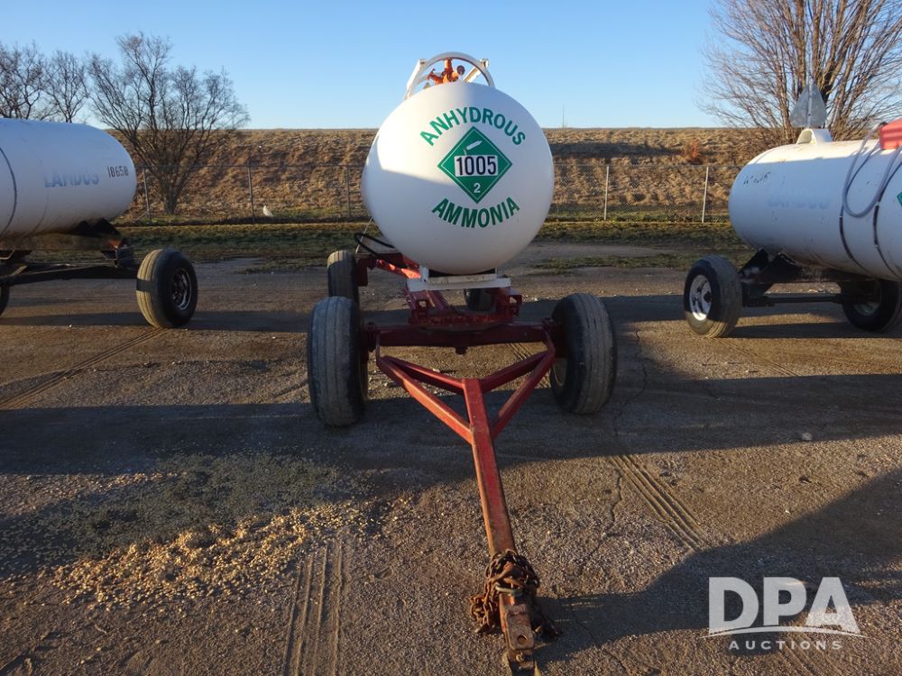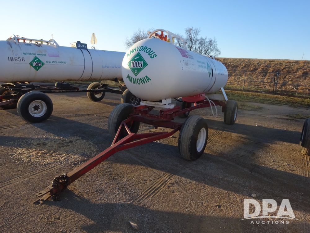 NH3 Nurse Tank (PZ14432, Unit 18740), 1000 gallon NH3 nurse tank, top front fill, poly water tank, data plate, VPT 8-25, Ag Systems 5th wheel running gear, 11L-15 flotation tires.