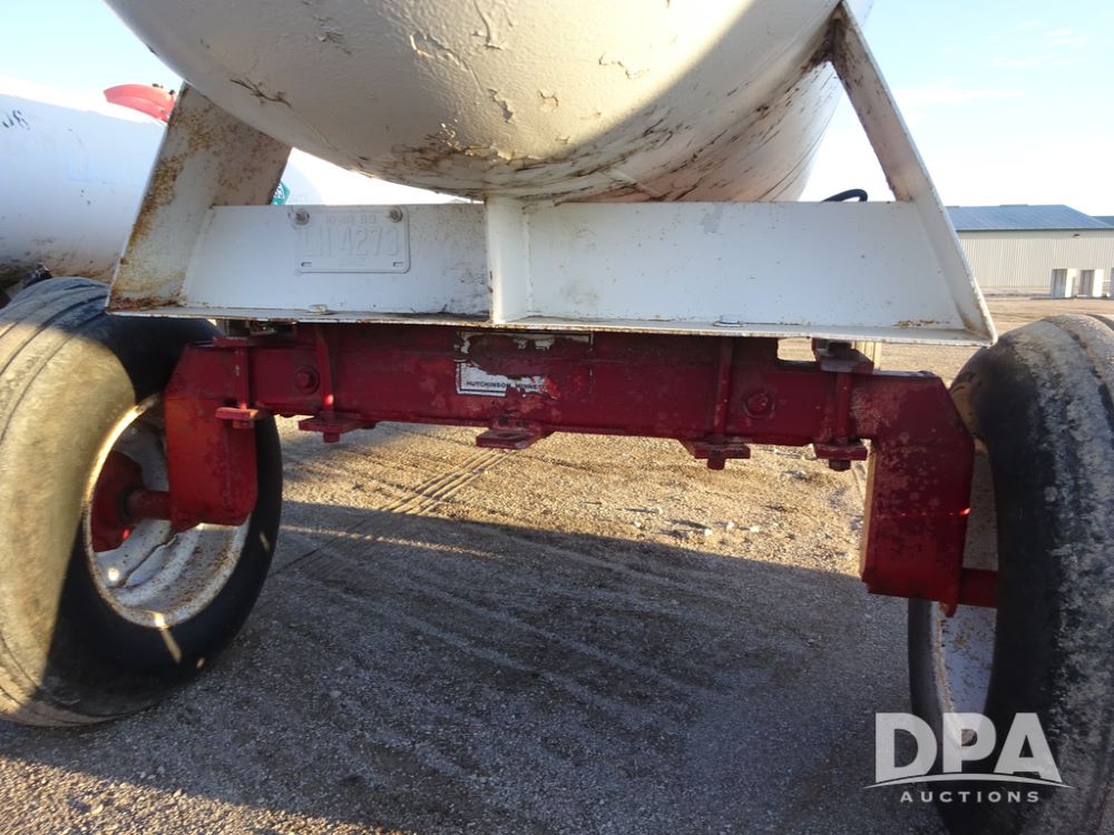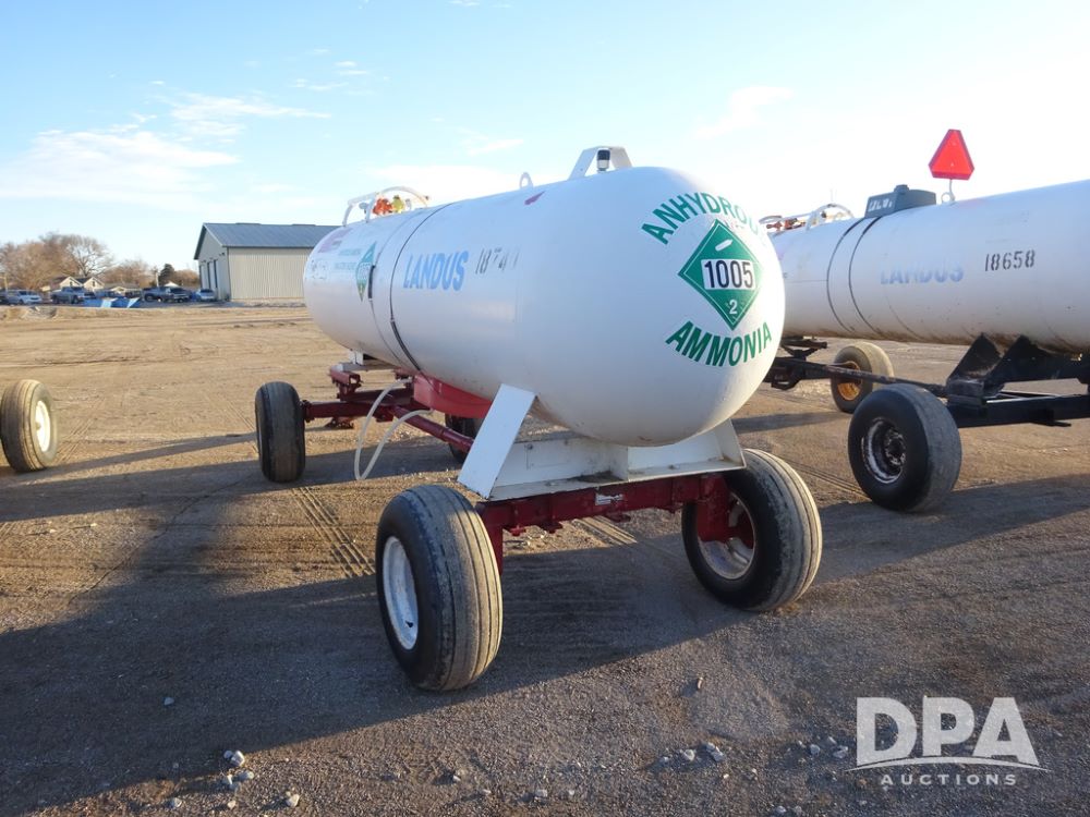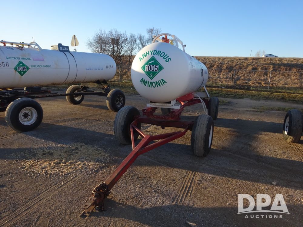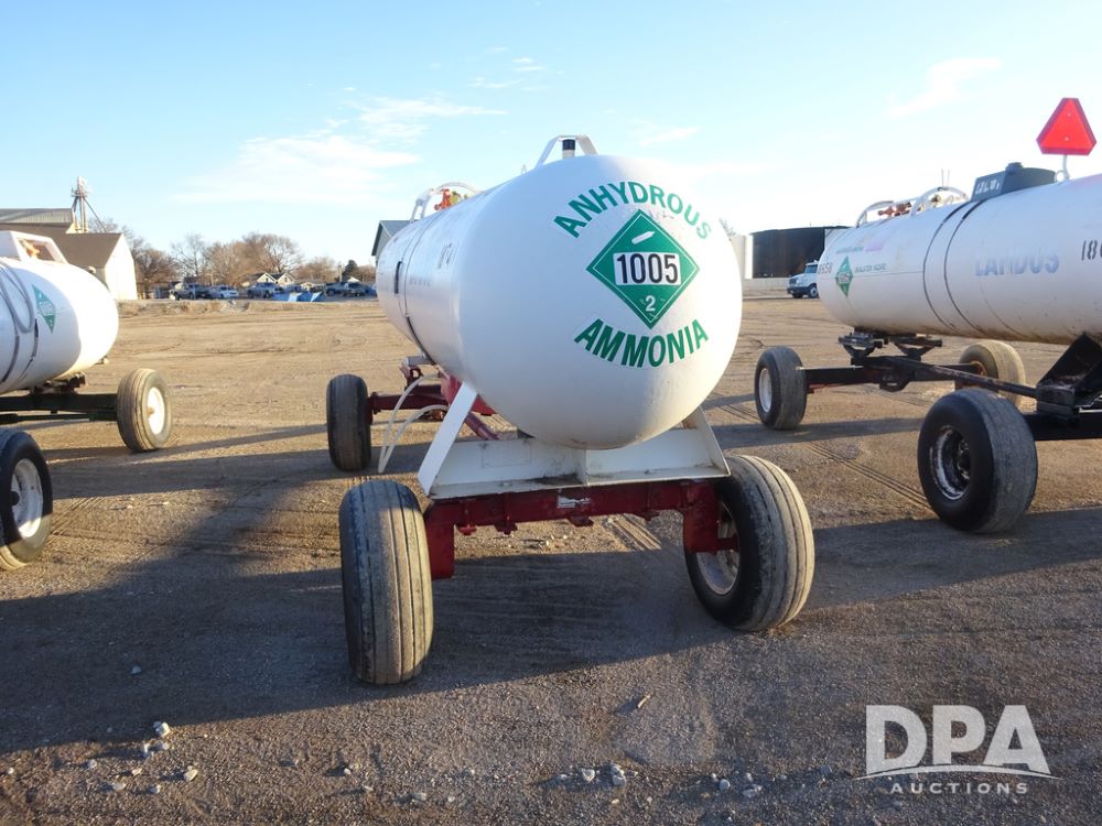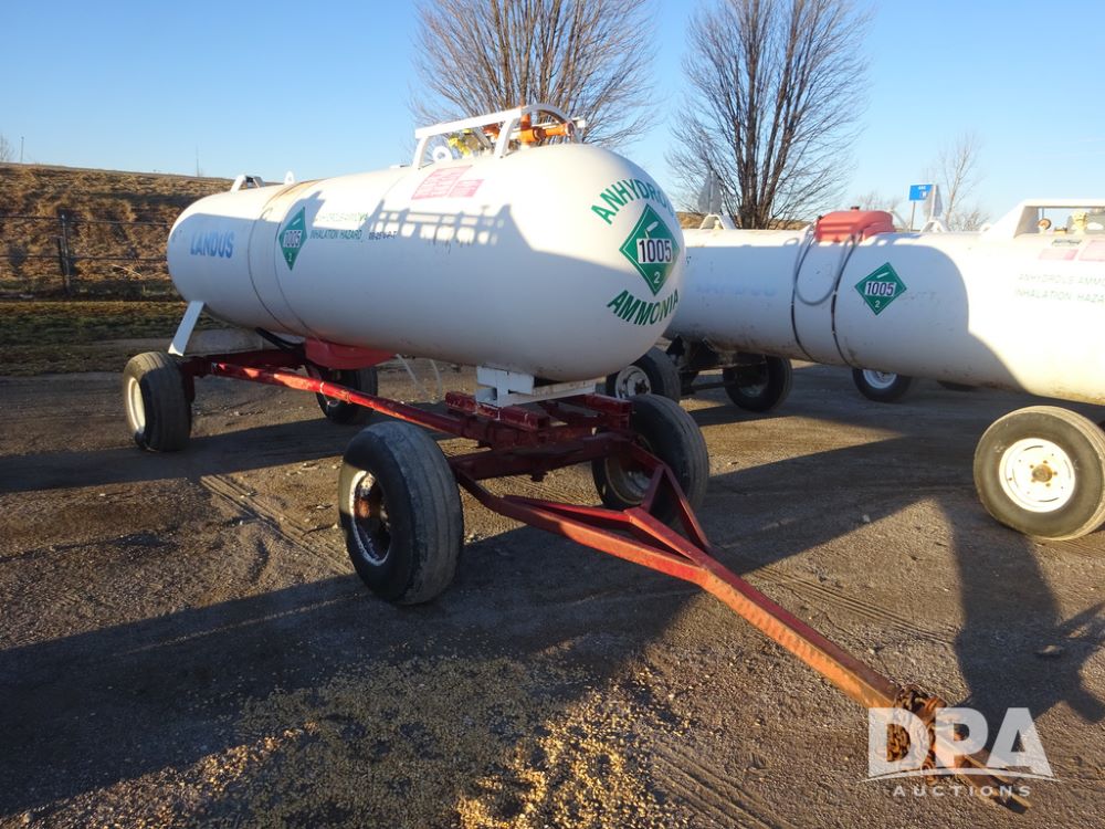 NH3 Nurse Tank (PZ14432, Unit 18740), 1000 gallon NH3 nurse tank, top front fill, poly water tank, data plate, VPT 8-25, Ag Systems 5th wheel running gear, 11L-15 flotation tires.