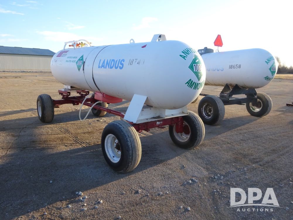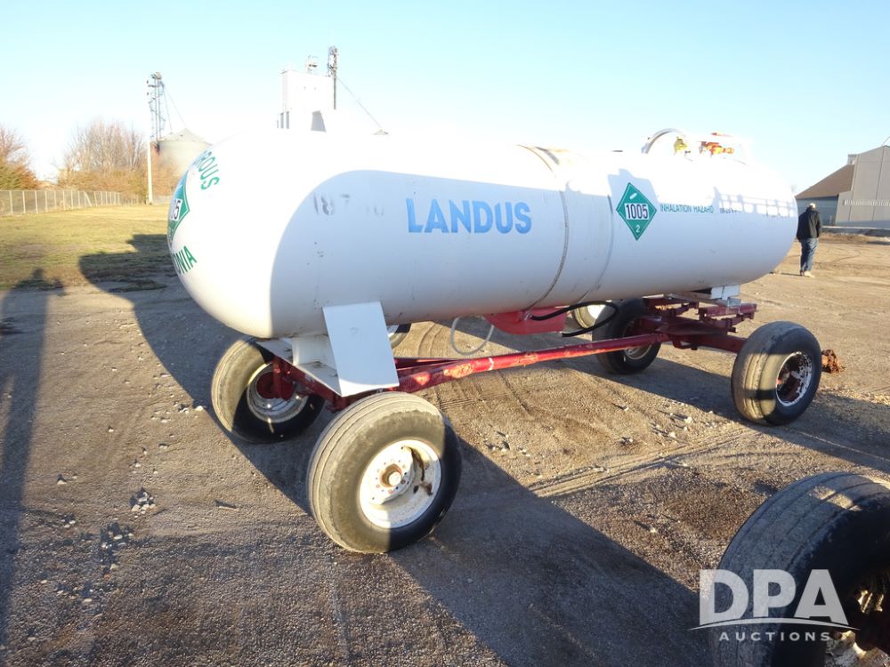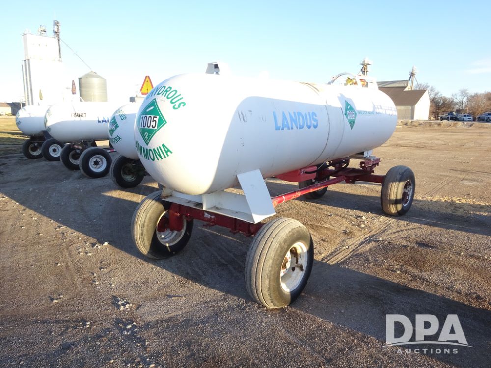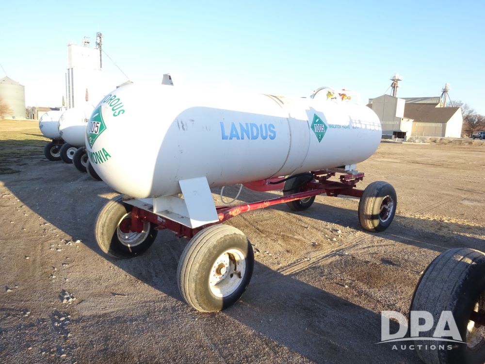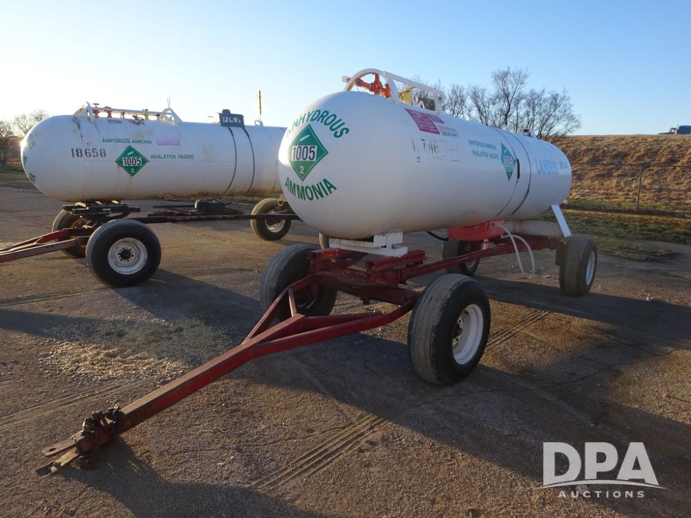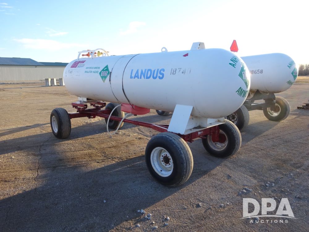 NH3 Nurse Tank (PZ14432, Unit 18740), 1000 gallon NH3 nurse tank, top front fill, poly water tank, data plate, VPT 8-25, Ag Systems 5th wheel running gear, 11L-15 flotation tires.