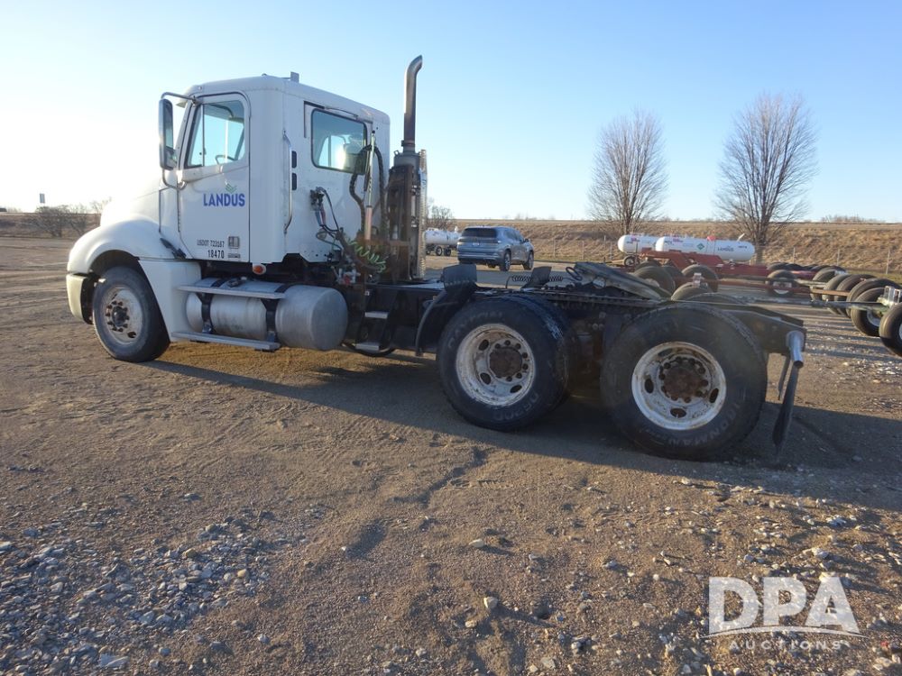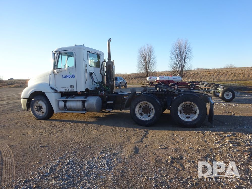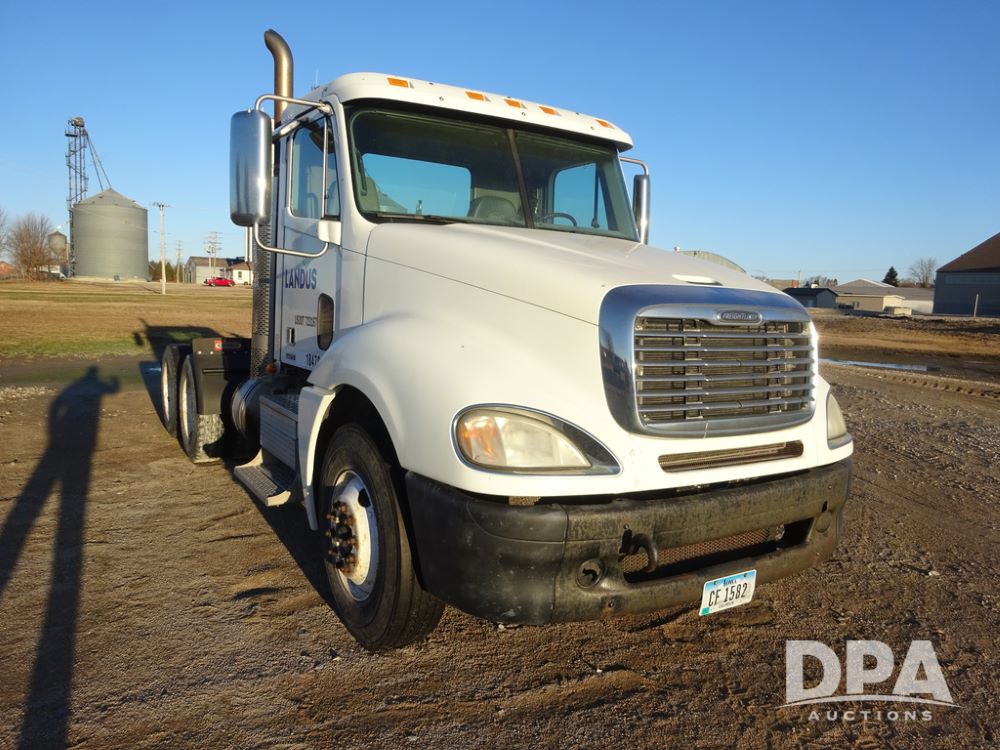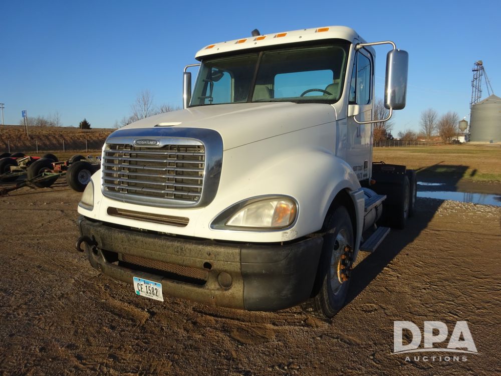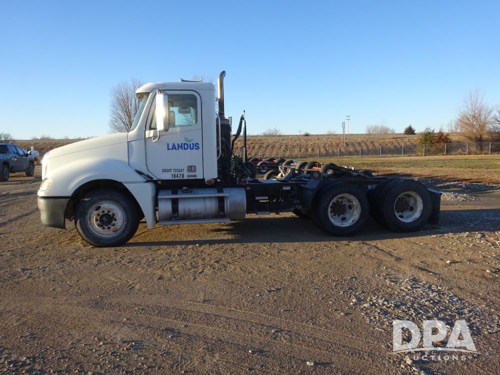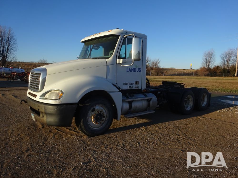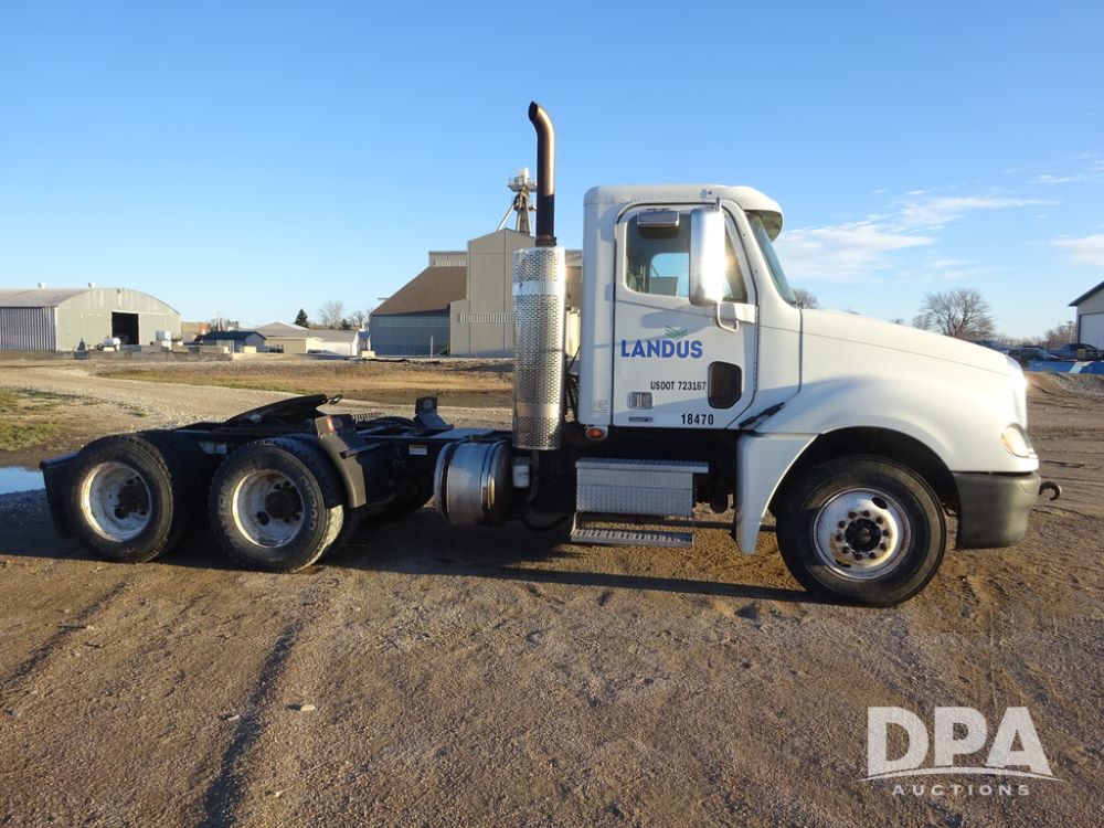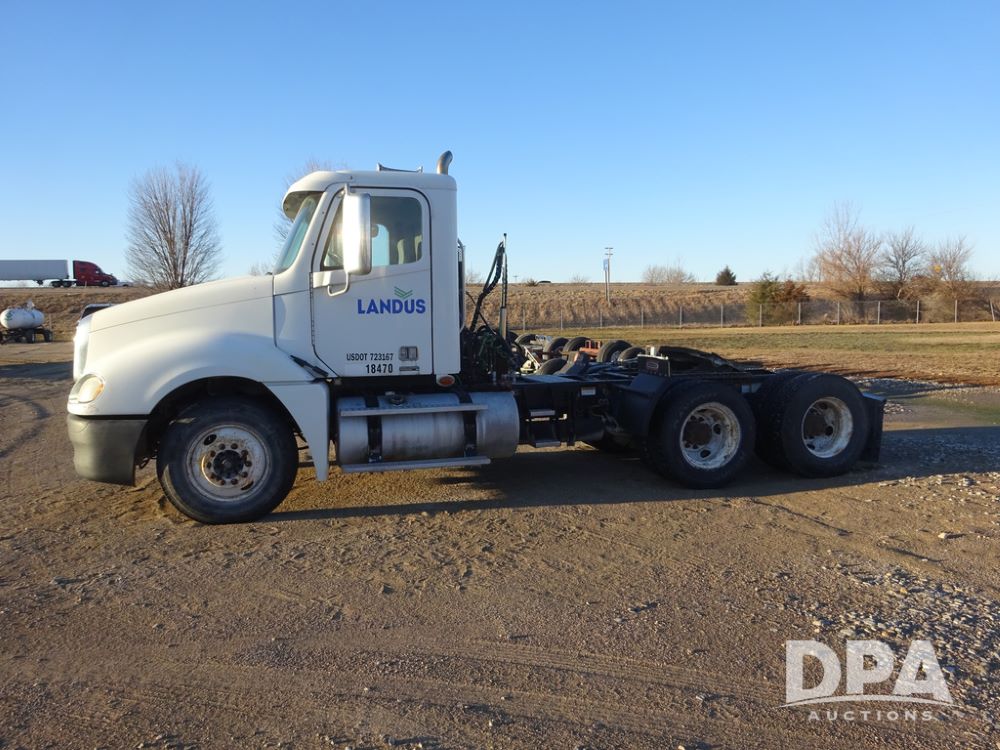 2009 Freightliner Columbia Day Cab Truck (PZ14434, Unit 18470), Detroit Series 60 diesel engine, Eaton Fuller 10 speed transmission, air conditioning, heat, Am/Fm CD radio, cruise control, engine brake, tandem axle, full screw, air ride suspension, Jost 5th wheel, wet kit,11R22.5 tires, shows 340,053 miles.