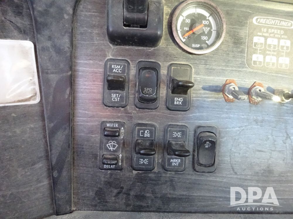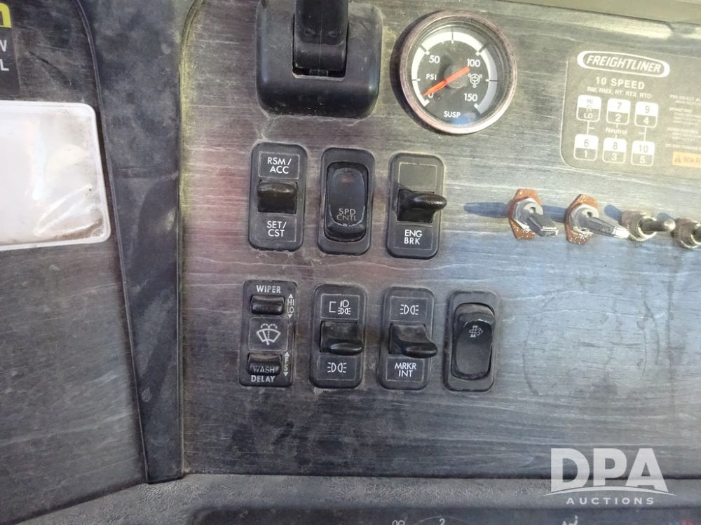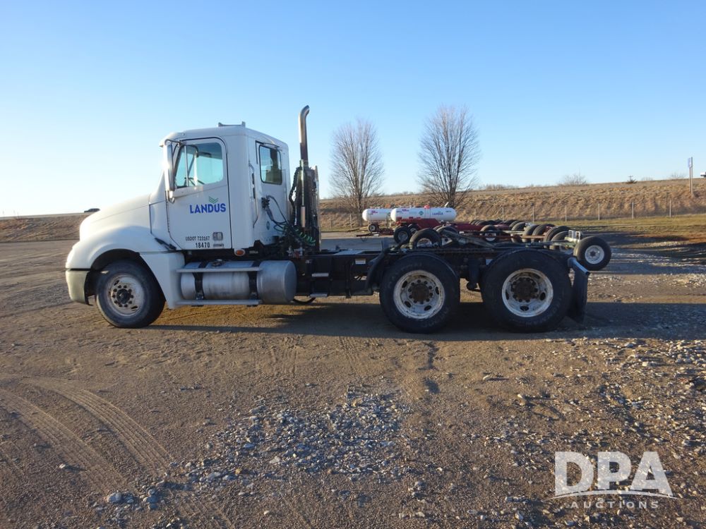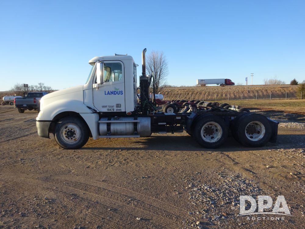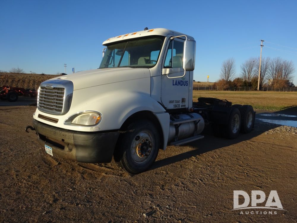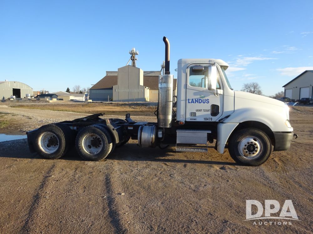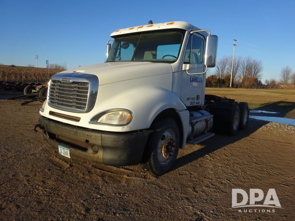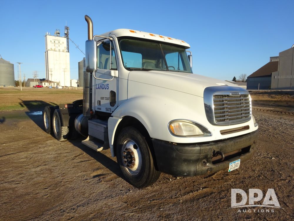 2009 Freightliner Columbia Day Cab Truck (PZ14434, Unit 18470), Detroit Series 60 diesel engine, Eaton Fuller 10 speed transmission, air conditioning, heat, Am/Fm CD radio, cruise control, engine brake, tandem axle, full screw, air ride suspension, Jost 5th wheel, wet kit,11R22.5 tires, shows 340,053 miles.