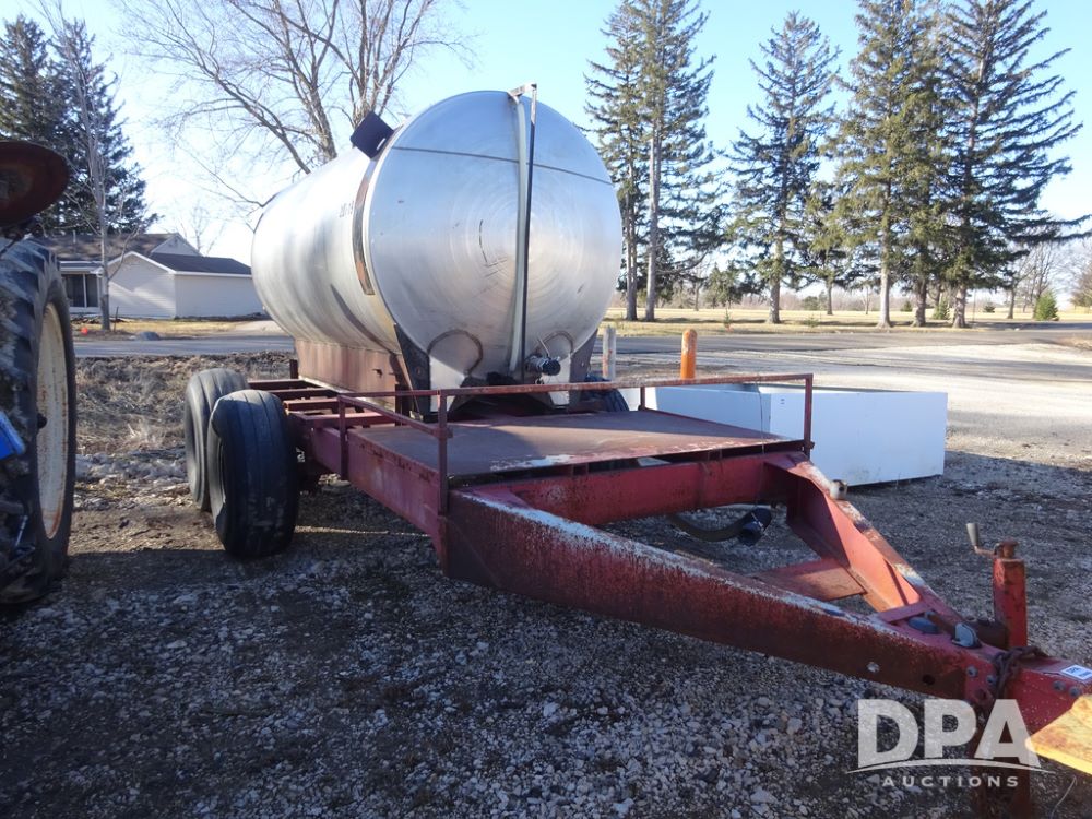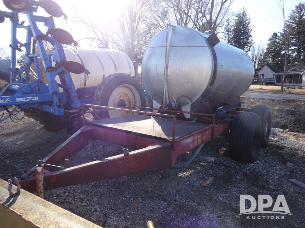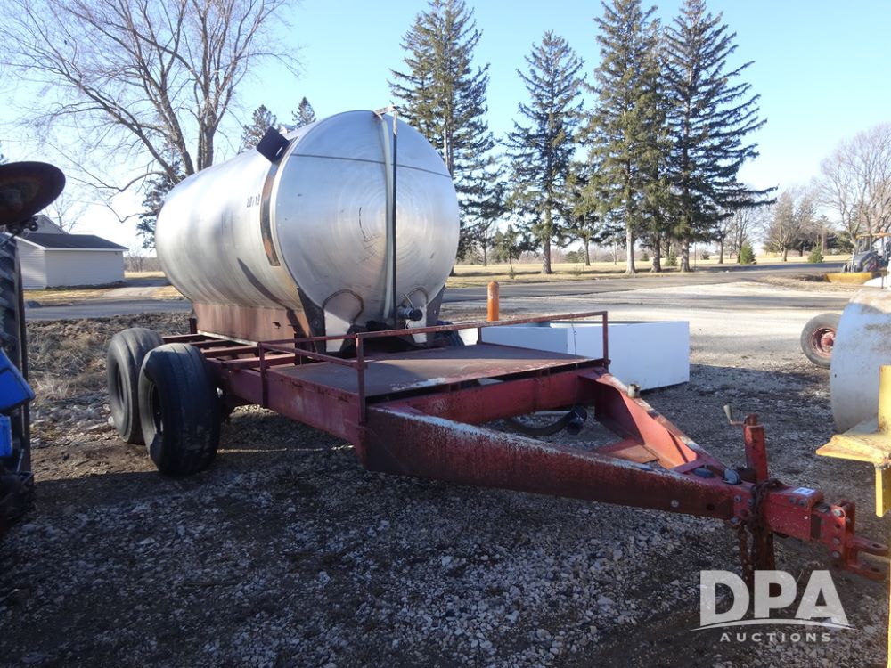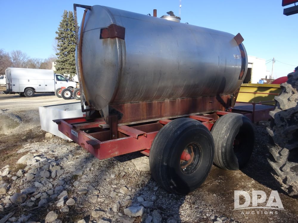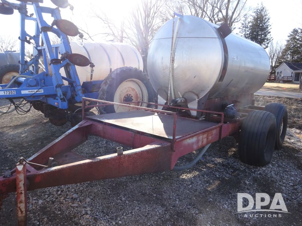 1978 Progress Liquid Nurse Tank (PZ14443, Unit 20719), 1978 Progress 1500 gallon stainless steel liquid nurse tank, P & H tandem axle running gear, 19L-16.1 flotation tires.