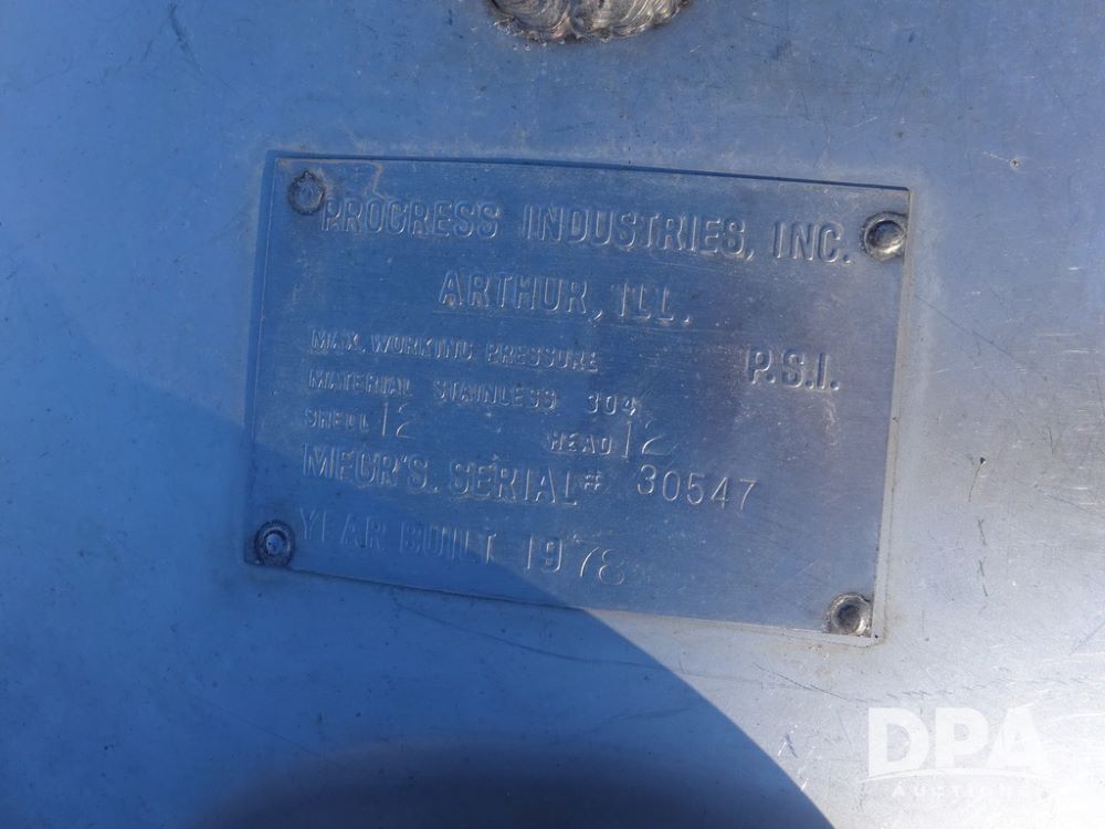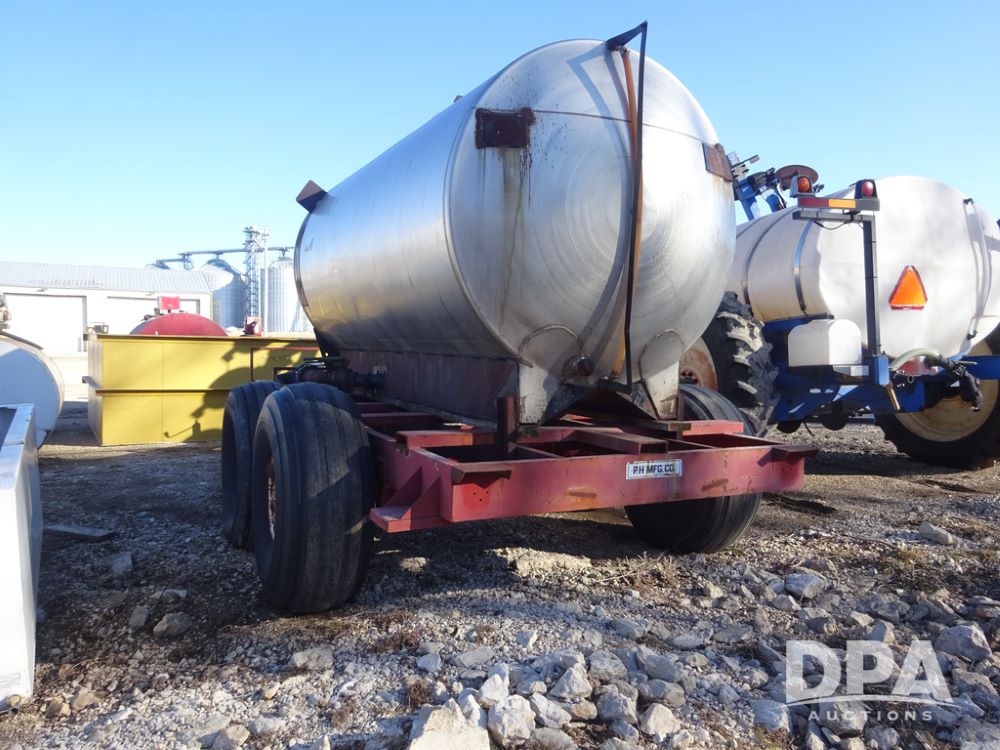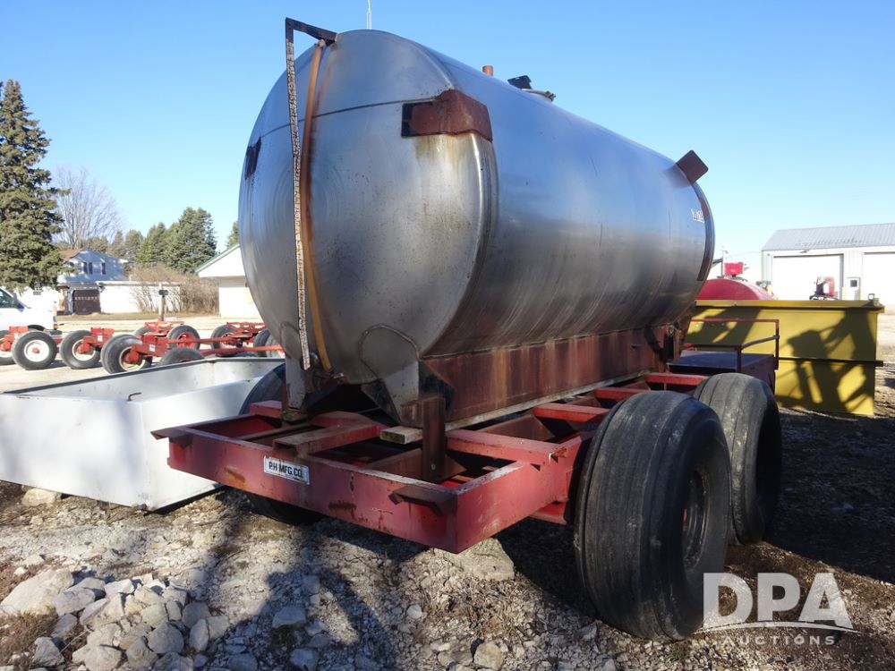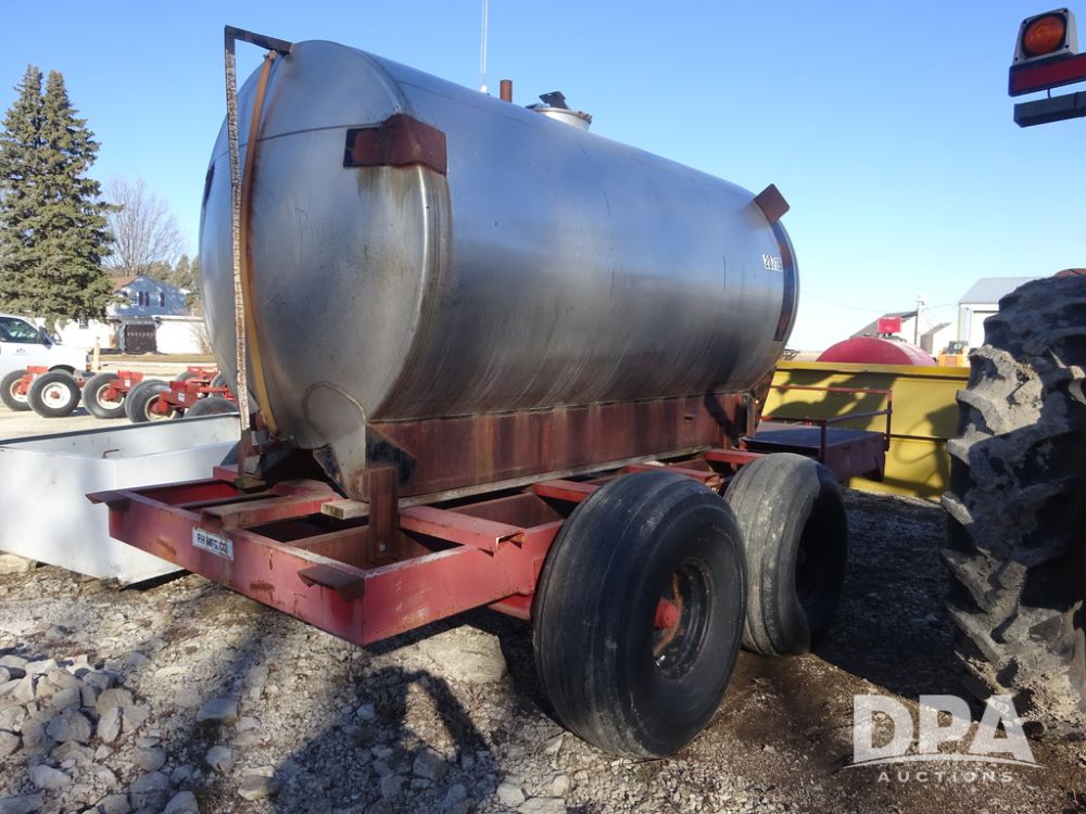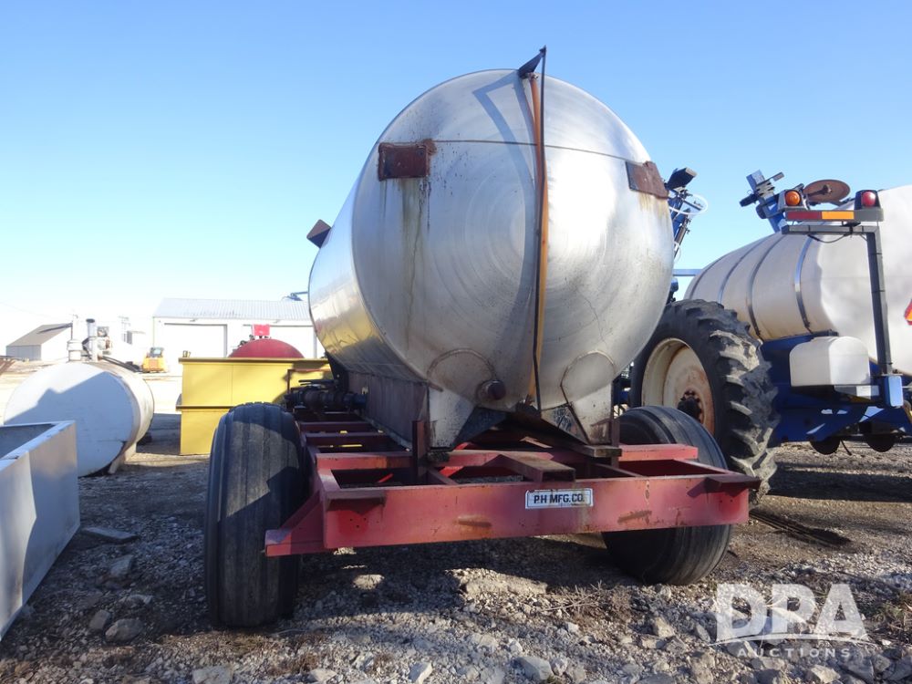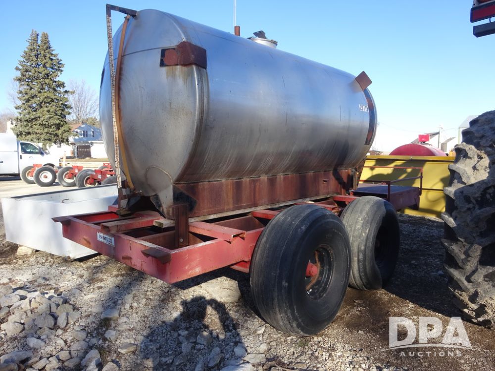 1978 Progress Liquid Nurse Tank (PZ14443, Unit 20719), 1978 Progress 1500 gallon stainless steel liquid nurse tank, P & H tandem axle running gear, 19L-16.1 flotation tires.