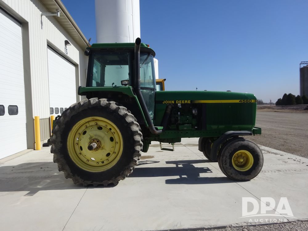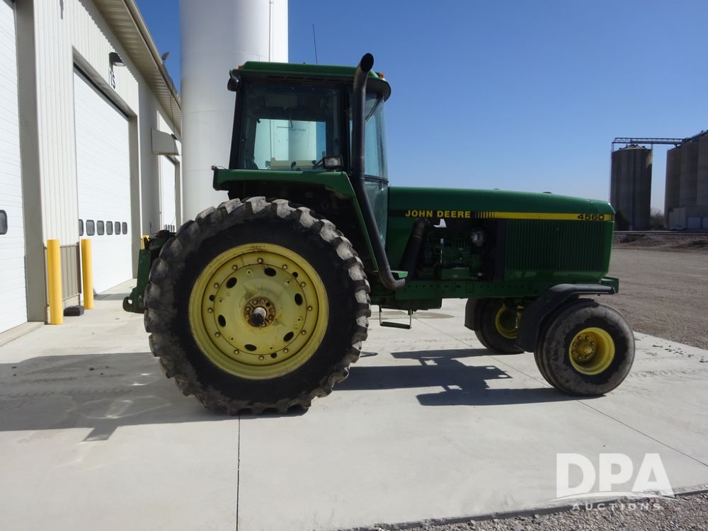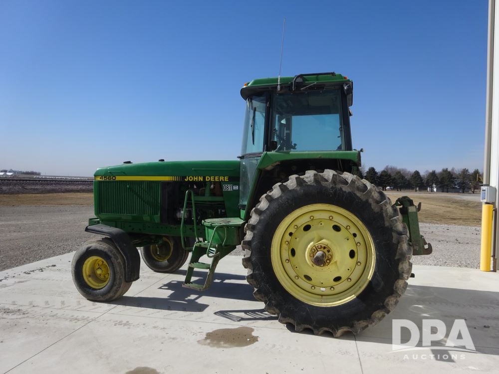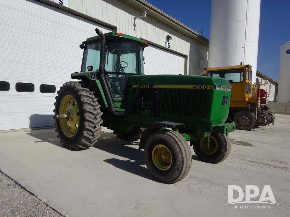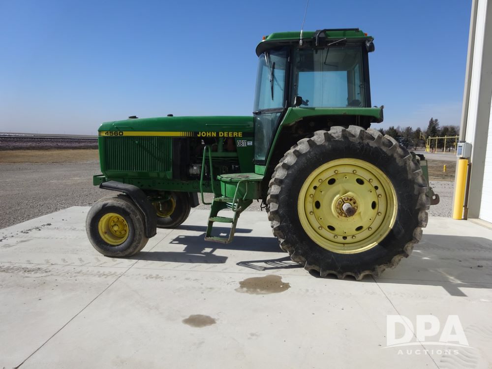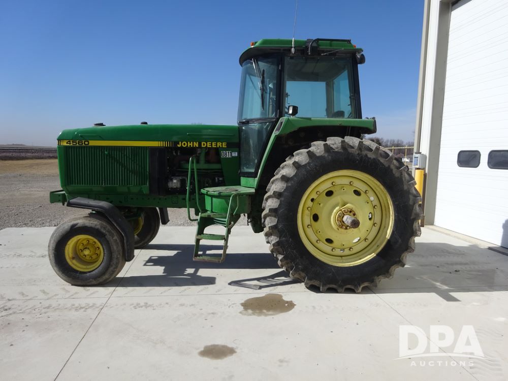 1994 John Deere 4560 Tractor (PZ14455, Unit 811), Wide front, diesel engine, Powershift transmission, cab, lights, heat, Am/Fm radio, quick hitch, PTO, 3 port hydraulics, Firestone 11.00-16 front tires, fenders, Firestone 18.4R42 tires,