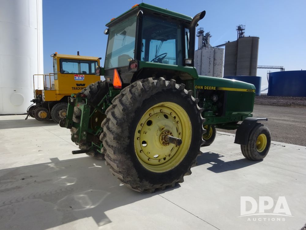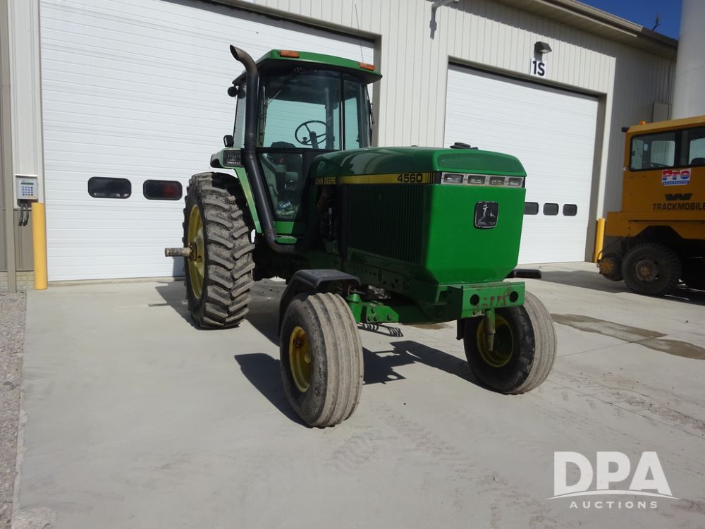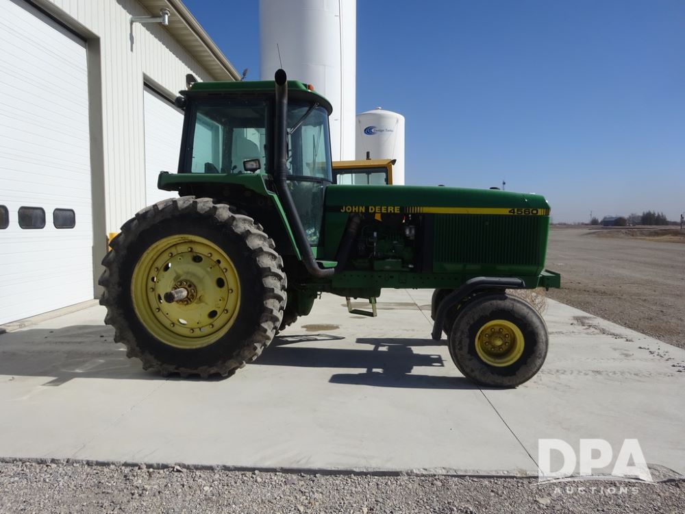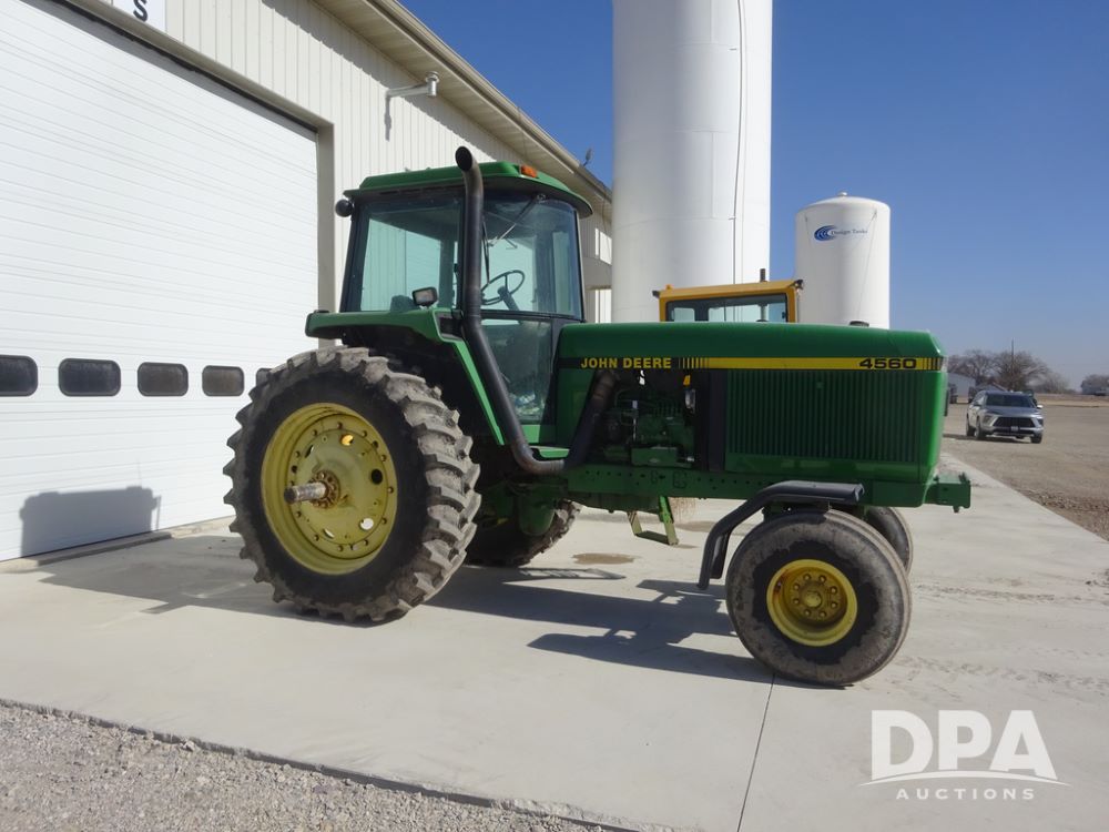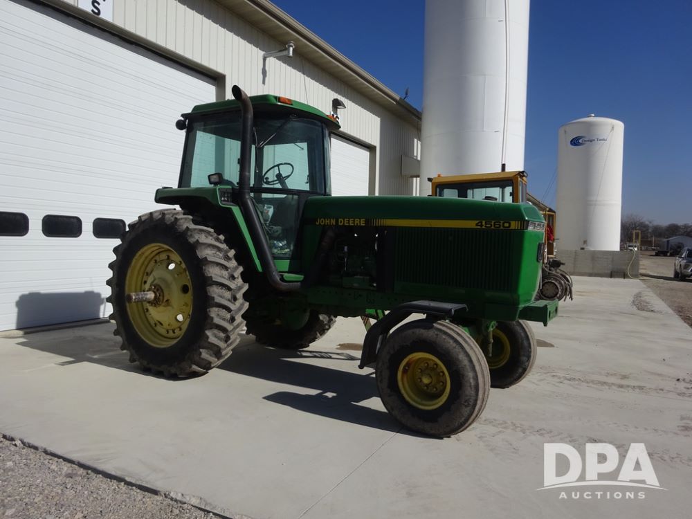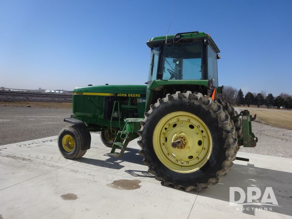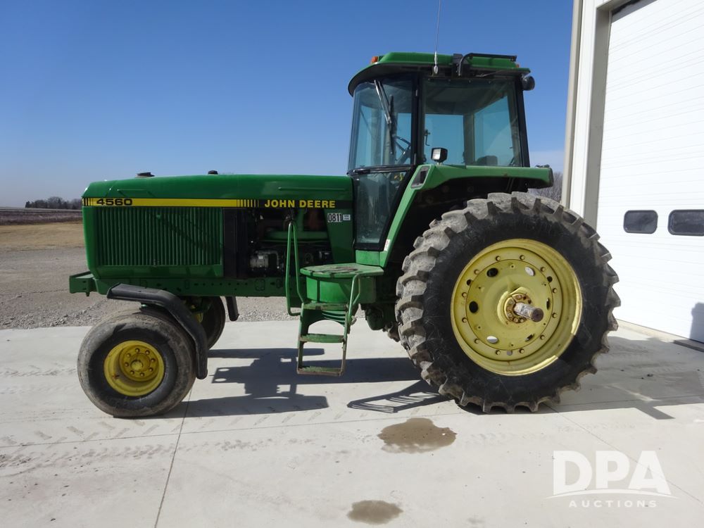 1994 John Deere 4560 Tractor (PZ14455, Unit 811), Wide front, diesel engine, Powershift transmission, cab, lights, heat, Am/Fm radio, quick hitch, PTO, 3 port hydraulics, Firestone 11.00-16 front tires, fenders, Firestone 18.4R42 tires,